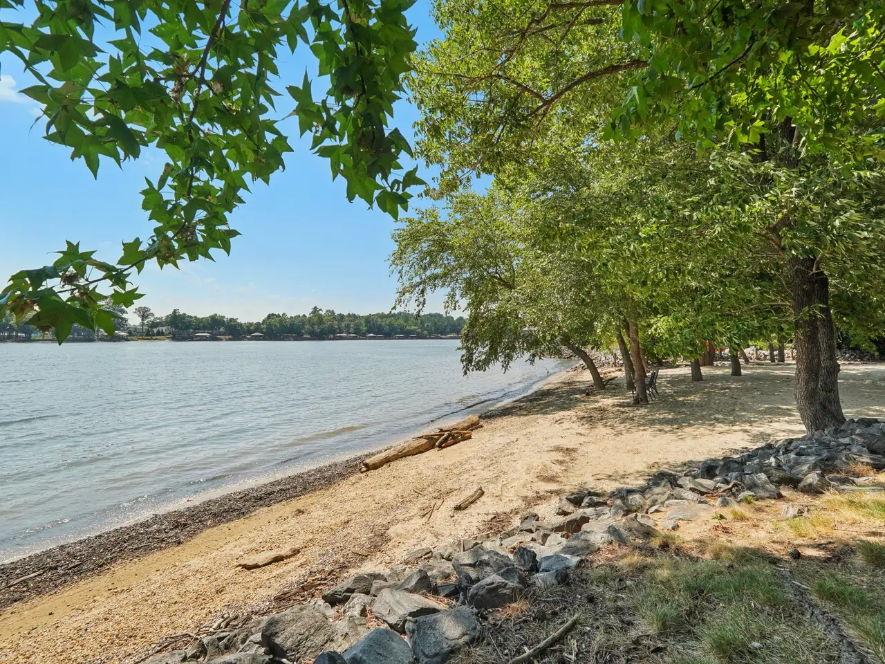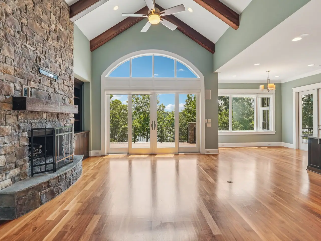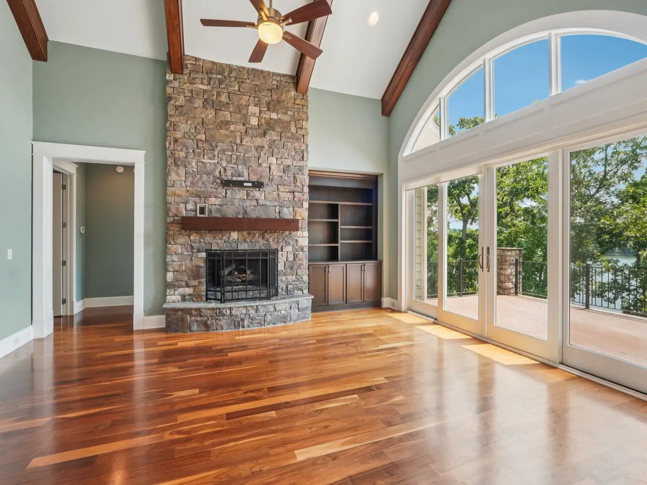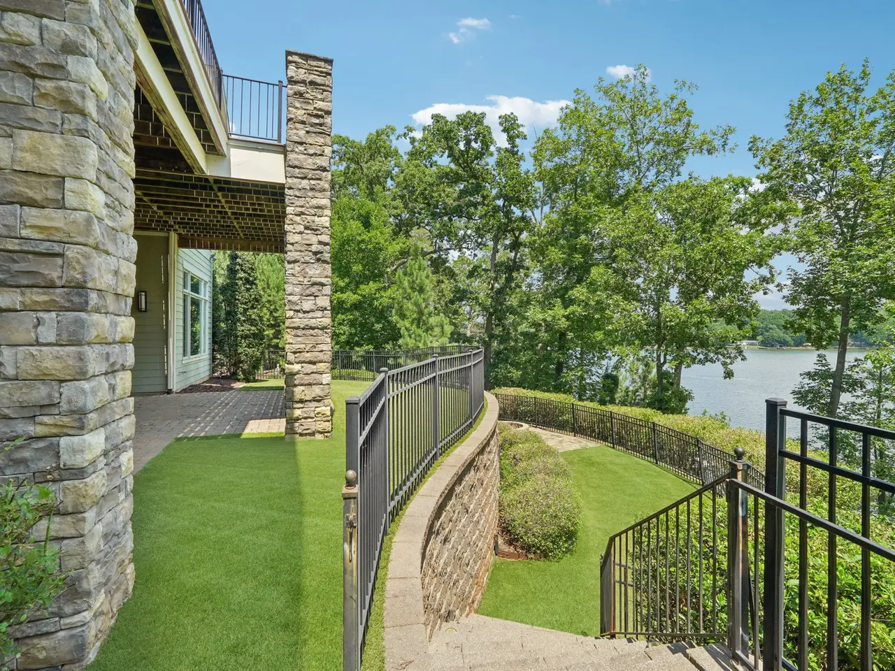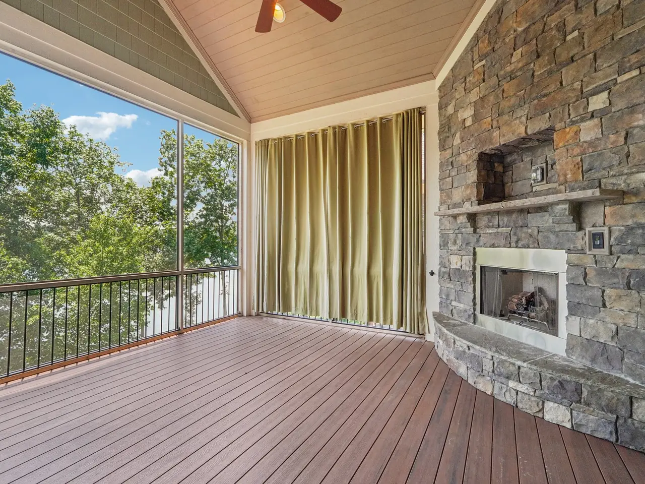 • Stone fireplace with lake views