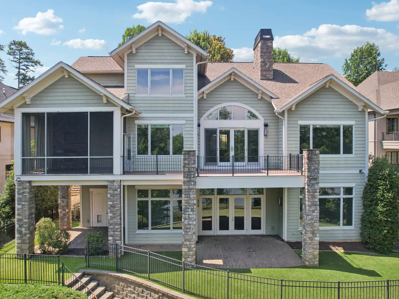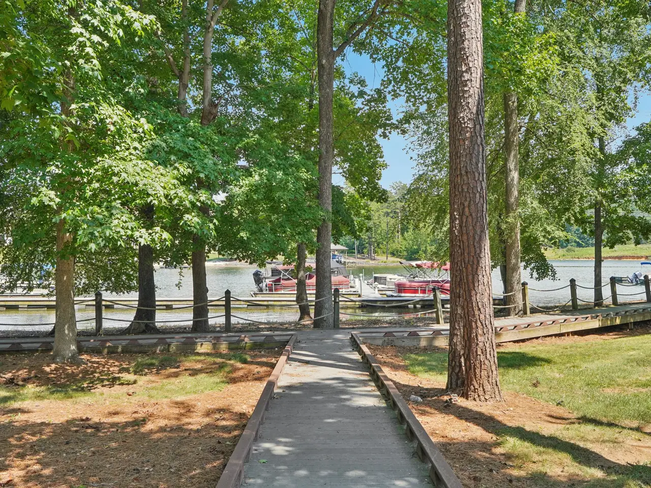 Enjoy year-round sunsets and panoramic views from this stunning main channel waterfront home in gated Reflection Pointe. Thoughtfully designed to take full advantage of its Lake Wylie setting, this custom-built home offers effortless indoor-outdoor living on all three levels. A gently sloping, fenced backyard leads to a deep-water covered dock with boat lift—perfect for morning coffee cruises or sunset paddles. Inside, the main level features an open layout with walnut hardwood floors, a large kitchen with oversized island, walk-in pantry, and stainless appliances. The great room showcases a stone fireplace and expansive windows framing lake views. Enjoy meals in the formal dining room or alfresco on the deck or screened porch—complete with a cozy outdoor fireplace. The main-level primary suite includes a spa-like bath with separate vanities, a soaking tub, zero entry shower, and generous closet space. Upstairs, you’ll find two additional en-suite bedrooms and a loft-style landing. The finished walkout basement impresses with soaring 14’ ceilings, a second kitchen/bar, fireplace, fitness room, two bedrooms, and flex space. Walk right out to the lower patio with turf yard, fire pit, and space to unwind. This home combines luxury, low-maintenance living, and a true lake lifestyle—all within minutes of historic downtown Belmont. Community amenities include pool, clubhouse, marina, walking trails, tennis courts, and boat storage
