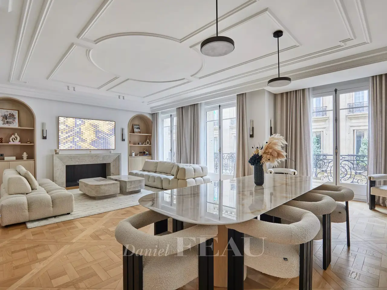 Sole Agent. Place Victor Hugo. This exceptional apartment offering 255.11 sqm of living space as defined by the Carrez Law is on the 2nd floor of a fine late 19th century building. Meticulously renovated throughout and air-conditioned, it includes an entrance hall, a 53 sqm triple living/reception room, a 25 sqm kitchen with dining facilities, a master suite, and three further bedrooms with bathrooms. With a cellar.