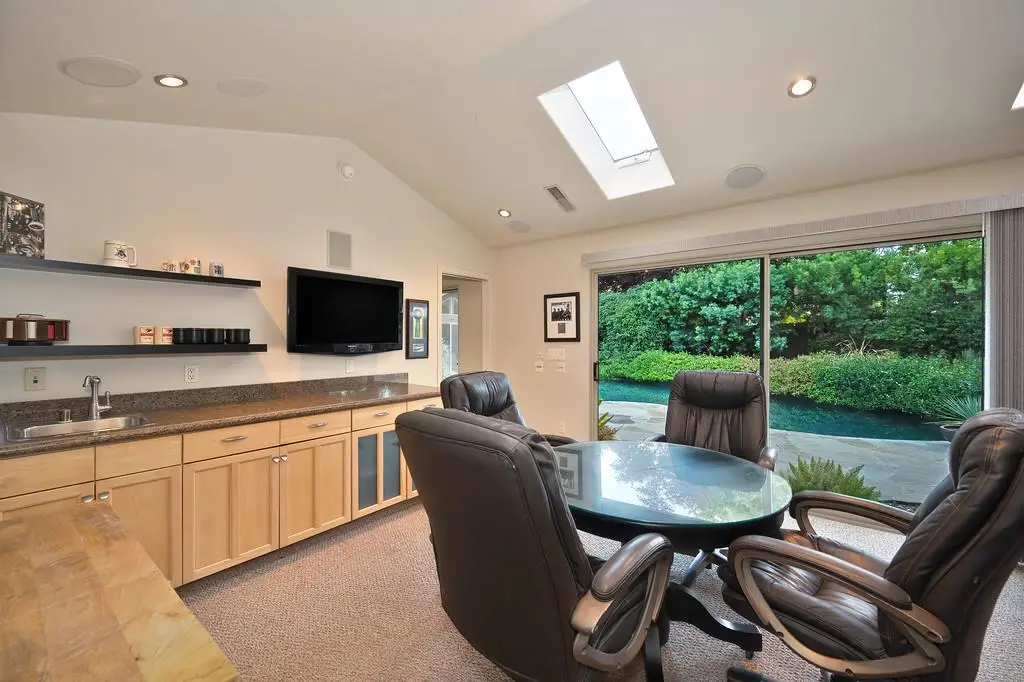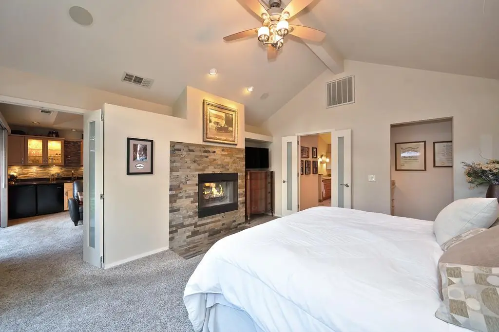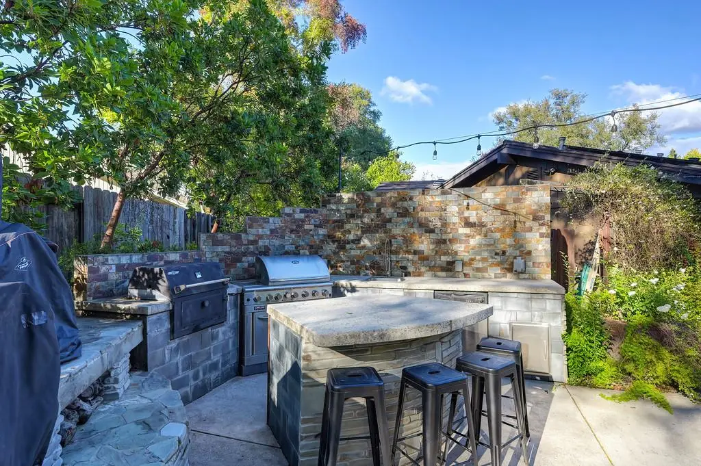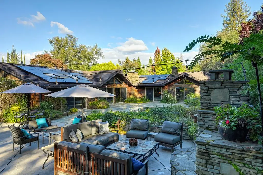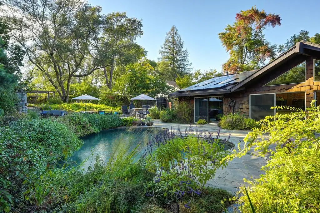 Amazing spacious single story on a large lot in a quiet cul de sac. Located in the highly desirable neighborhood of Hidden Lakes Estates, Granite Bay Mid-Century Modern style with high ceilings, big windows and open floor plan. Gourmet kitchen featuring a commercial grade gas stove, built-in refrigerator/freezer, and prep island with sink. Primary suite includes built-in office, sitting area with fireplace, exercise room & beautiful views. The back yard is truly an oasis! Mature trees providing privacy, full outdoor kitchen, gas fired stone fireplace and several entertaining areas. Owned solar with battery back up, and beautiful salt water pool. The back yard is large enough to add an ADU or pool house and pre stubbed with the utilities. Plans available to review. Family friendly neighborhood just minutes from Folsom Lake. Award winning Eureka School District and Granite Bay High School.