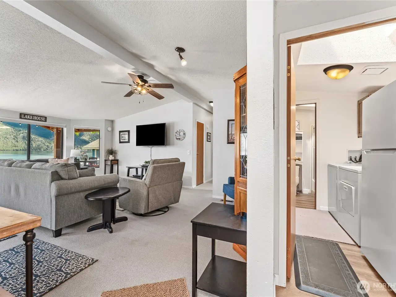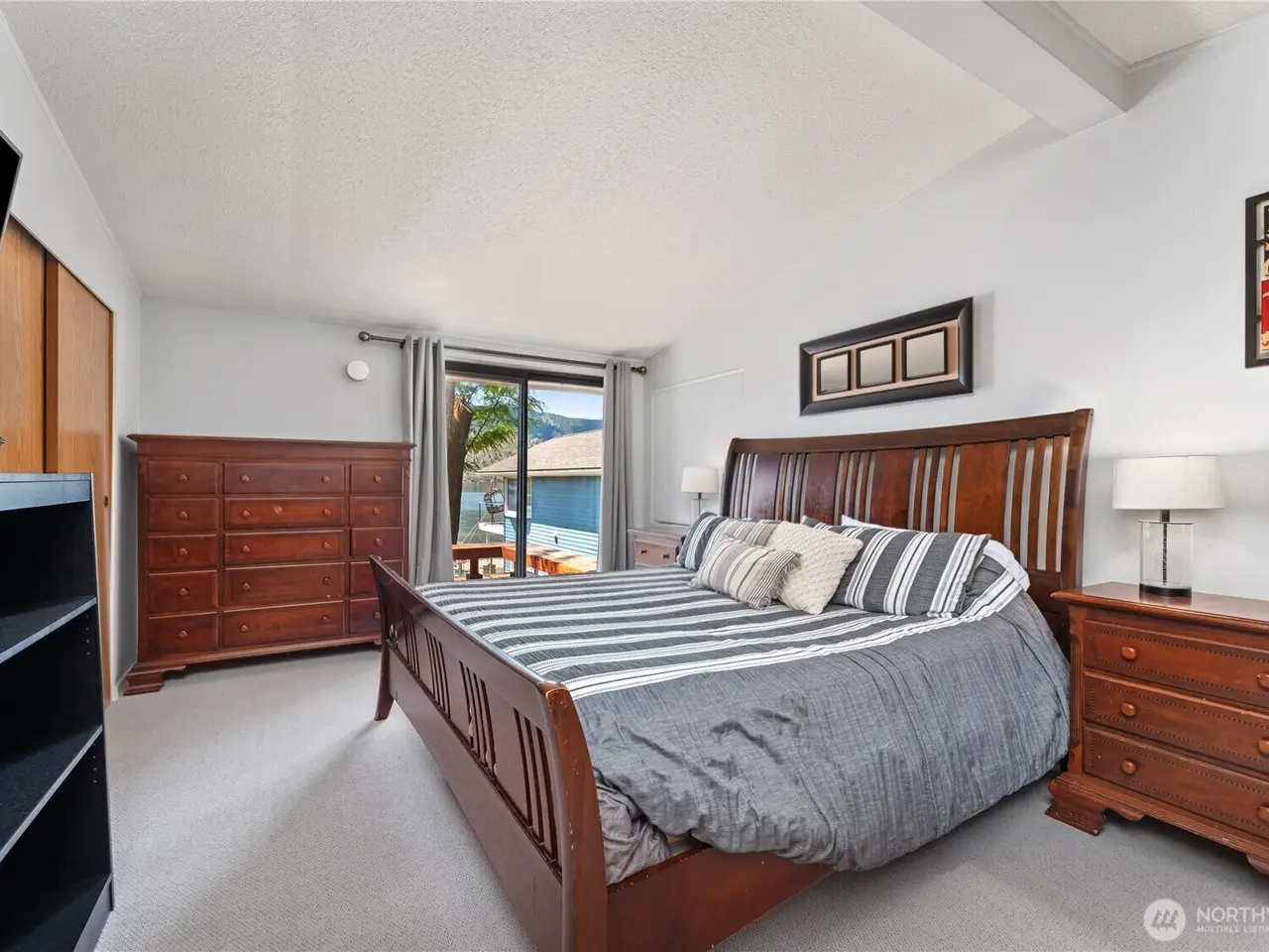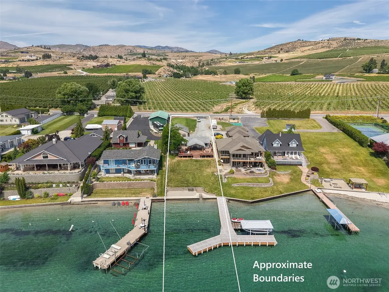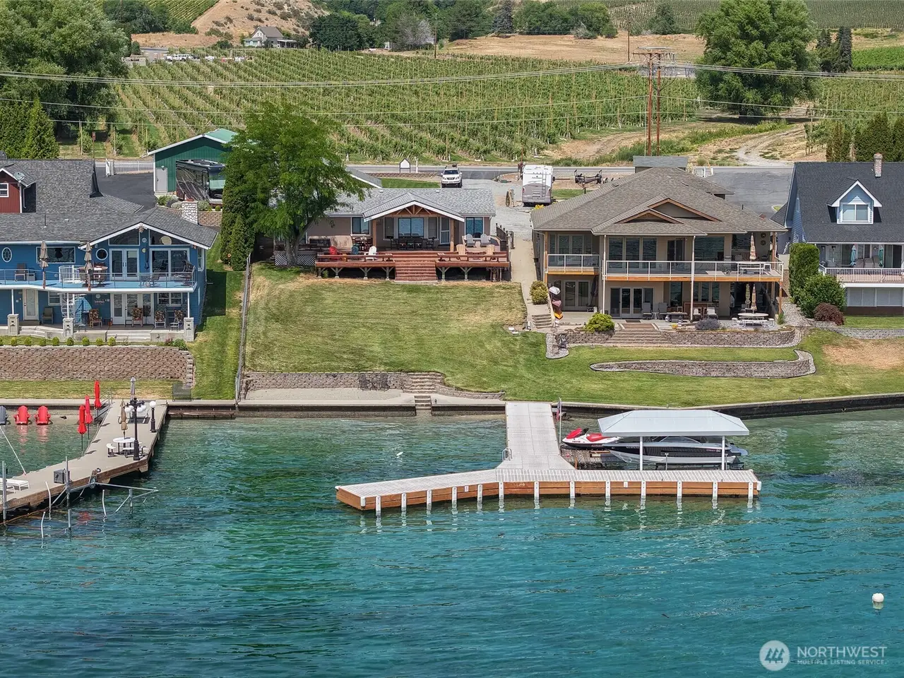 Welcome to 34 Leisure Lane! This rare .9-acre property boasts 56 feet of low bank waterfront with a concrete bulkhead and stairs to a sandy beach. Enjoy a resurfaced shared dock and a stunning, newer lake-facing deck off a charming three bed, two bath, 1,300 square foot home. Two lots (front and back) offer exceptional flexibility and space, including a three-bay shop, four RV hookups, and tons of parking. Mostly flat with a gentle slope - perfect for outdoor living and future development/building. Prime location with easy, level access off a paved road. On sewer, with LCRD domestic water and irrigation. One of the nicest stretches of real estate on Lake Chelan & amongst some incredible new homes and remodels. House plans by Complete Design can be included!