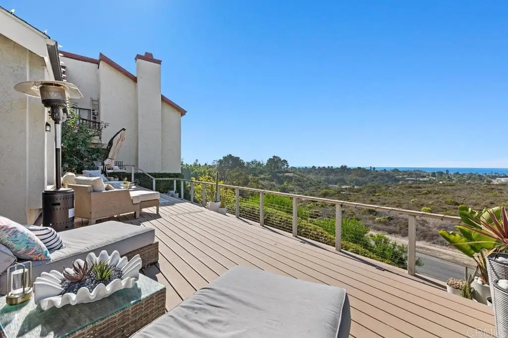 *Tenant Occupied* DO NOT DISTURB TENANT - Agent accompanied showings ONLY. Experience breathtaking coastal living from this rare corner-lot Skyloft home in Coastal Encinitas, offering sweeping 180 views from the Pacific Ocean to the Batiquitos Lagoon Ecological Reserve. This bright 3-bedroom, 2.5-bath residence features vaulted ceilings, engineered hardwood floors, modern bathrooms, and a newly remodeled rear deck designed to capture the panoramic horizon. Enjoy custom closets, a spacious two-car garage, and beautifully updated bathrooms with wood vanities, quartz countertops, and contemporary fixtures. Mid-Century Moderninspired lighting adds timeless coastal elegance, while community amenities include a saltwater pool, spa, tennis and pickleball courts, dog park, playground, and clubhouse. A perfect blend of modern design, coastal beauty, and relaxed beach-town living.