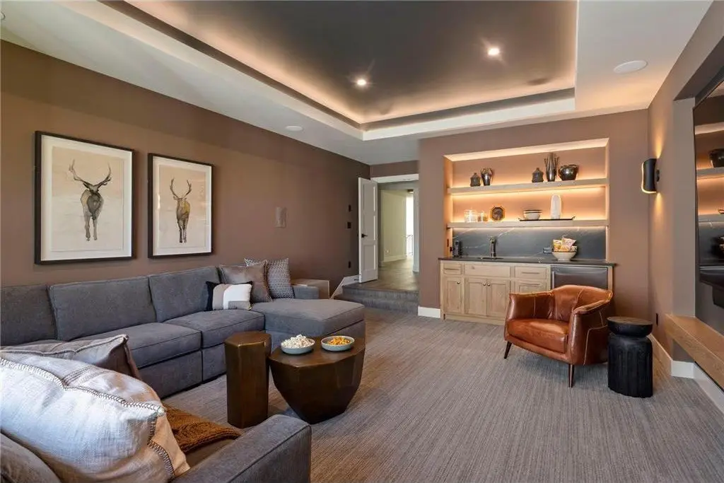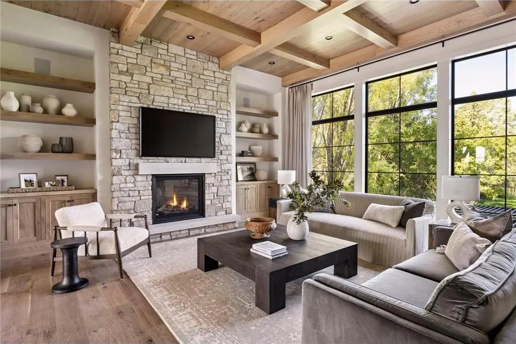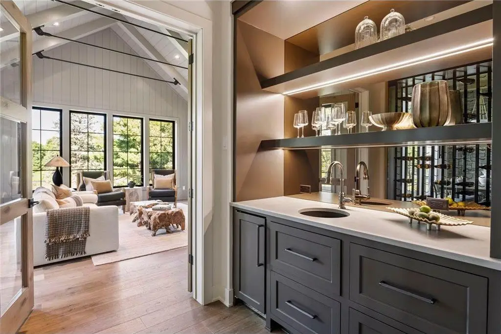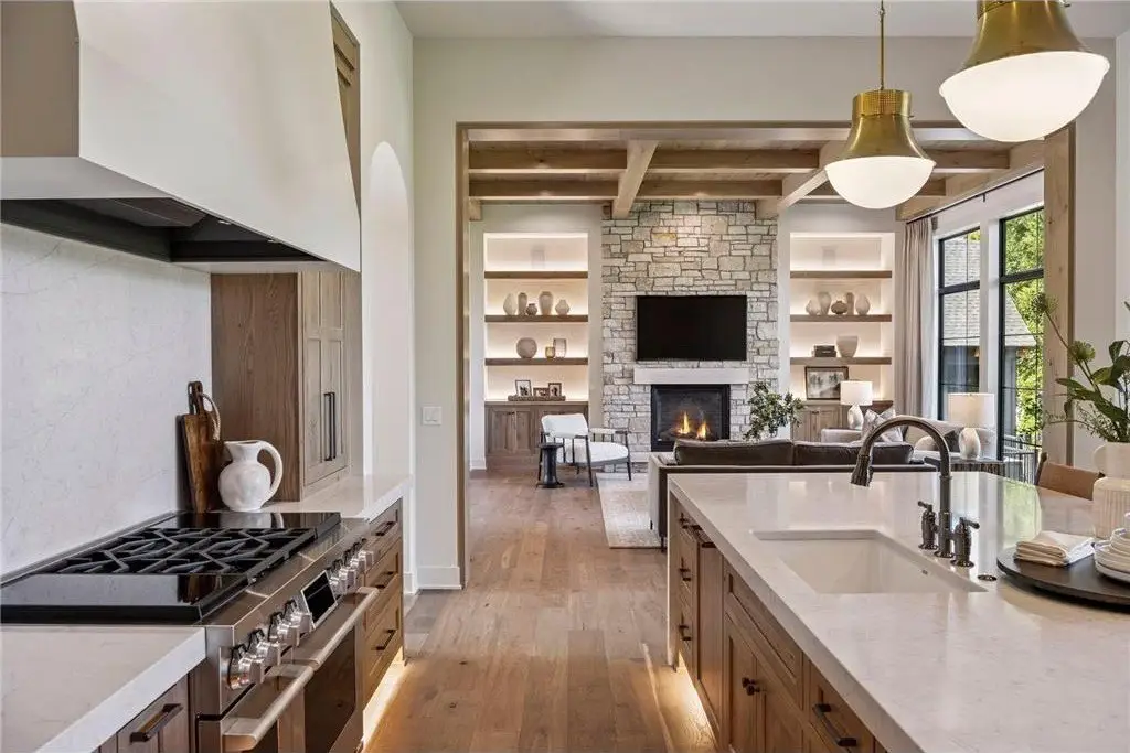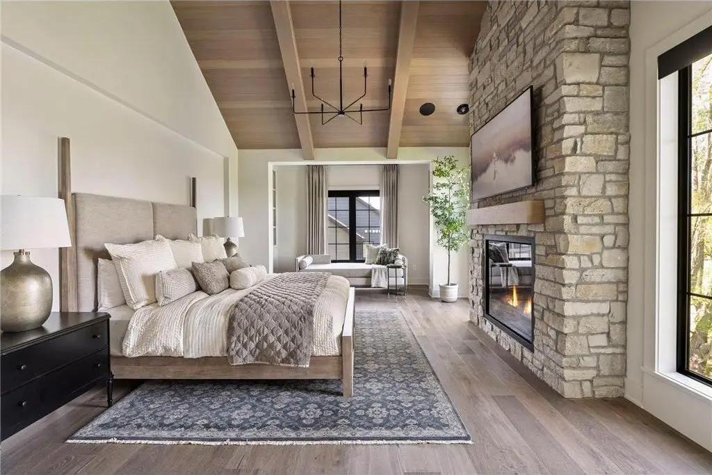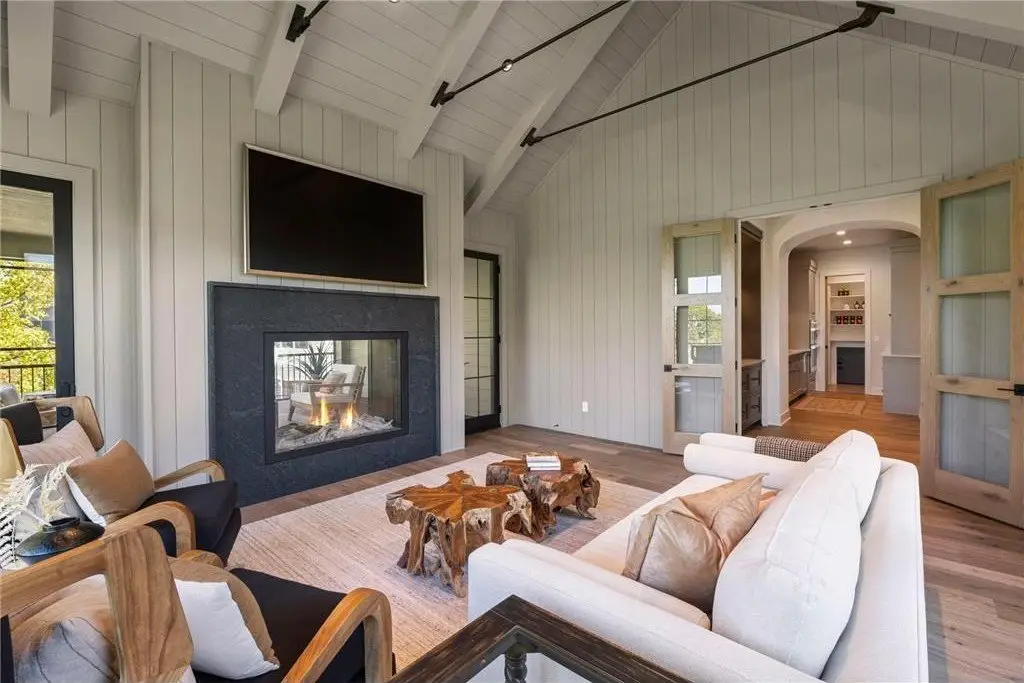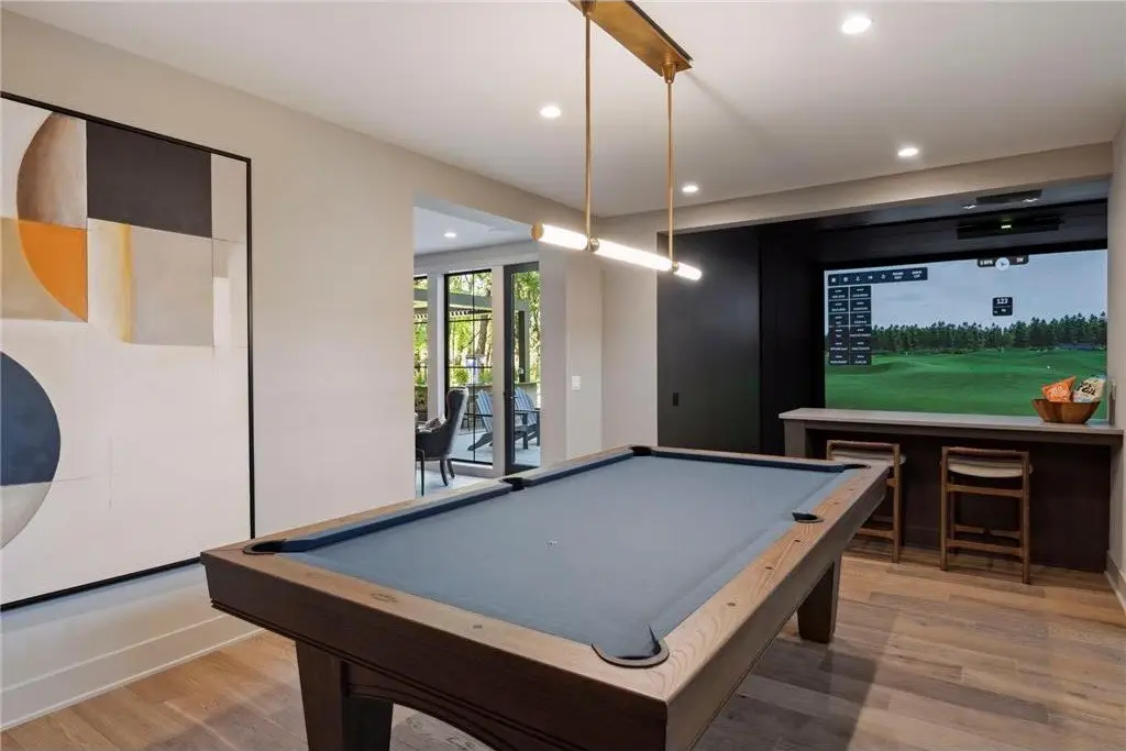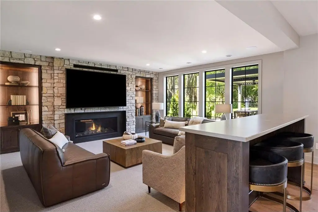 Experience the Woodstone, a Hanson Builders masterpiece, featured in this Fall’s Artisan Home Tour. This newly constructed home merges lavish design with everyday comfort, showcasing impeccable craftsmanship and high-end finishes throughout. The Great Room, Kitchen, and Dining Room boast 12' ceilings and expansive Marvin windows, bathing the space in natural light. Rich wood ceilings with architectural beams infuse warmth and sophistication into the main level. A dramatic two-sided wine display and bar flow into a cozy Sunroom, while a dual-sided stone fireplace connects the Sunroom and Screen Porch. Tucked away for privacy, the main-level Executive Office provides a serene, inspiring workspace. The Owner’s Suite offers a harmonious blend of elegance and relaxation, featuring a vaulted wood ceiling with beams, a private sitting area, and a stone fireplace. Custom vanities and mirrors frame windows overlooking the wooded backyard, creating a spa-like escape. Upstairs, three additional Suite bedrooms each feature unique built-ins—daybeds, desks, or bookshelves—crafted for individuality. The upper level is crowned by a Bonus Room with a 100" TV and a 7.1 full surround sound system, accompanied by a wet bar—perfect for immersive movie nights or casual entertaining. The lower level is an entertainer’s paradise, complete with an Indoor Sport Center, a Golf Simulator with a dedicated viewing area, and a refined Bar and Whiskey Lounge—ideal for hosting memorable gatherings. Car enthusiasts will appreciate the oversized 940 SQFT garage, a perfect complement to this luxurious retreat.