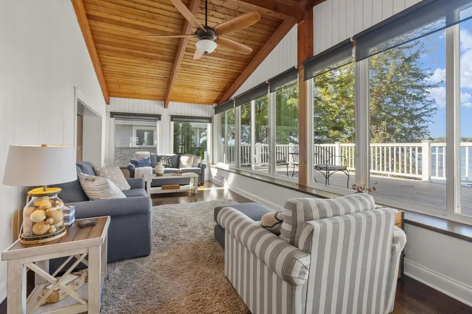 Enjoy lake living at its best with a prof. designed outdoor kitchen, fire pit, deck, and hardscaped patio overlooking the water--perfect for entertaining or quiet evenings by the shore. Updated 4BR, 3BA home with 57' of level, sandy frontage on all sport Lake Mary. Newer hardwood floors, granite countertops, custom wood trim/doors, and renovated baths. A spacious living room with a stone gas fireplace, sunroom with deck access and lake views, and large eat-in kitchen offer inviting spaces for family and guests. The primary suite overlooking the lake provides a private escape. Prime location! Walk to town, and just a short drive to Wilmot Mountain (Vail Resorts) and Lake Geneva. Ideal as a full-time residence or weekend getaway--a rare combination of style, comfort, and level lake frontage.