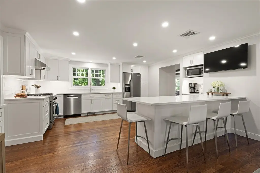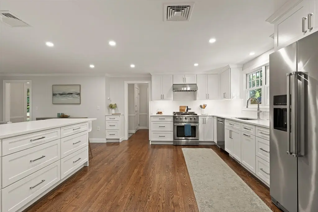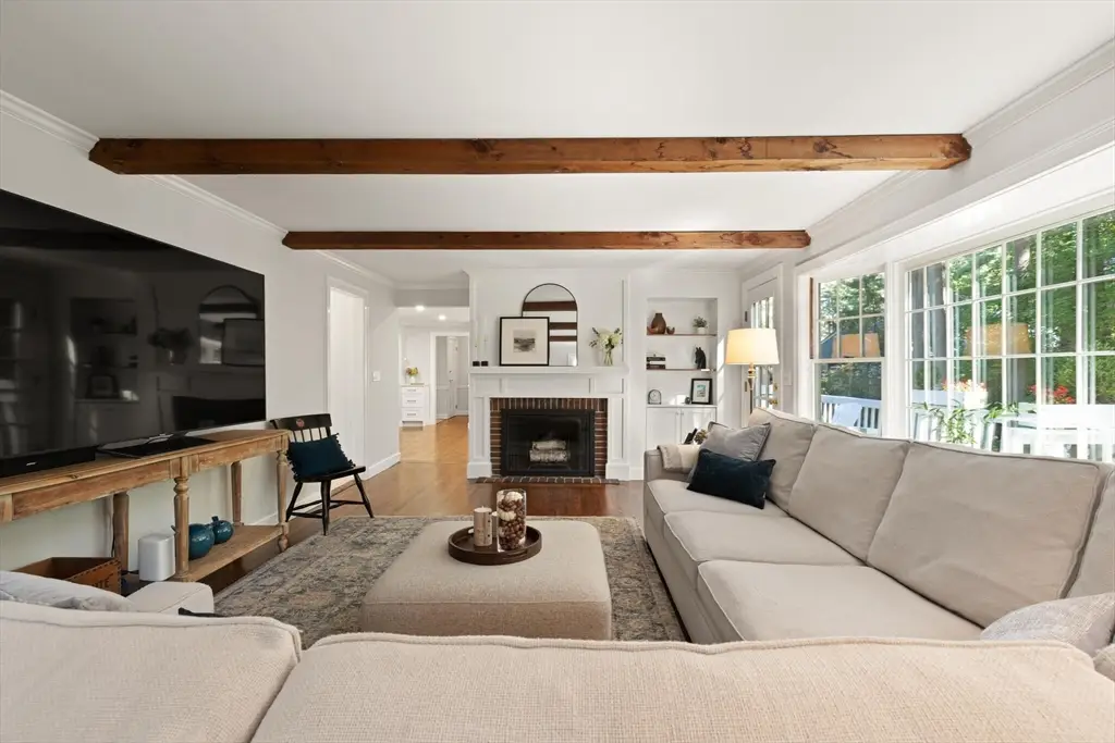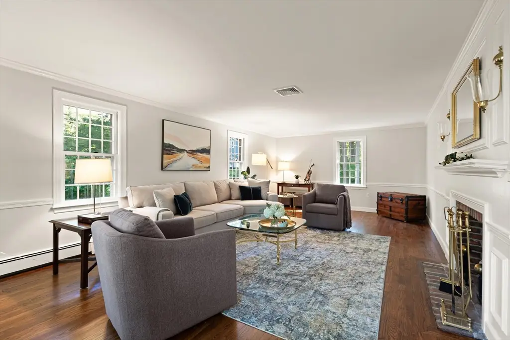 Celebrate the holidays in style in this magnificent colonial residence. Proudly situated on a spacious lot in a convenient south Sudbury neighborhood, this expertly maintained home offers the perfect blend of elegance and comfort. Featuring a spectacular and newly renovated white kitchen equipped with stainless steel appliances and quartz countertops. The cozy family room, complete with wood-beamed ceilings and a wood fireplace, is perfect for gatherings, while the dedicated home office provides ample privacy. The beautiful front-to-back living room features a second fireplace and lovely built-in cabinetry, creating an ideal space for both socializing and quiet relaxation. The upper level boasts five bedrooms, including a primary suite with a full bathroom and three closets! Enjoy the outdoors from the comfort of your own home or take a short stroll to the nearby Mass Central Pedestrian Bike Trail, offering miles of enjoyment and exercise. An incredible home and neighborhood await!
