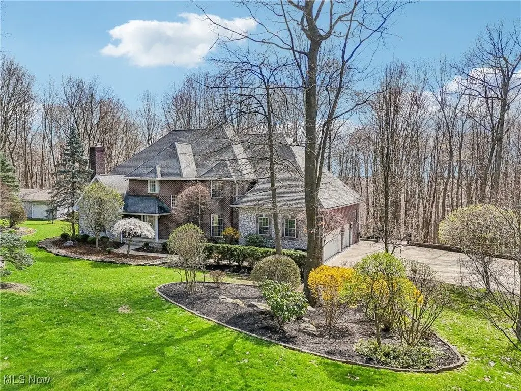 This magnificent brick and stone 2-story home is nestled on over 4 acres of land. The home boasts over 6000 square feet of living space with 5 bedrooms and 5 baths and all levels finished. The welcoming foyer features an open plan with high ceilings and ceramic flooring. The foyer leads to a spacious private office with chair rail and wood flooring. The open and airy great room offers view of the upstairs walkway and features a double-sided gas fireplace with double French doors to the sun room. The sun room features a vaulted ceiling and skylights and access to the deck. The open kitchen plan offers many cherry cabinets, granite countertops, stainless appliances, refrigerator (2024), huge eating area and ceramic flooring. The formal dining room features a tray ceiling and wood flooring. The first floor master suite is a dream with a sauna and spacious bath featuring granite counter tops, double sinks, walk in shower and walk in closet. The half bath and laundry room round out the first floor. The second floor features a second master suite with spacious bedroom and private bath. The remaining two bedrooms share the Jack and Jill bathroom; each has a walk in closet. There is a super large bonus room that offers a staircase to the first level. Staircase features a stair lift. The lower level offers a large rec room with new (2024) carpeting and a woodstove. The game room has a bar and bar stools . There is a large bedroom and a full bath on this level. There is a completely enclosed room with a steel door in the lower level. The mud room (being finished) leads to the back yard. There is an attached three car garage. There is a outbuilding that houses all of the lawn equipment and tons of room for storage. The gazebo is a great place to relax. The yard is completely fenced but extends past the fencing. Close proximity to stores and shopping.