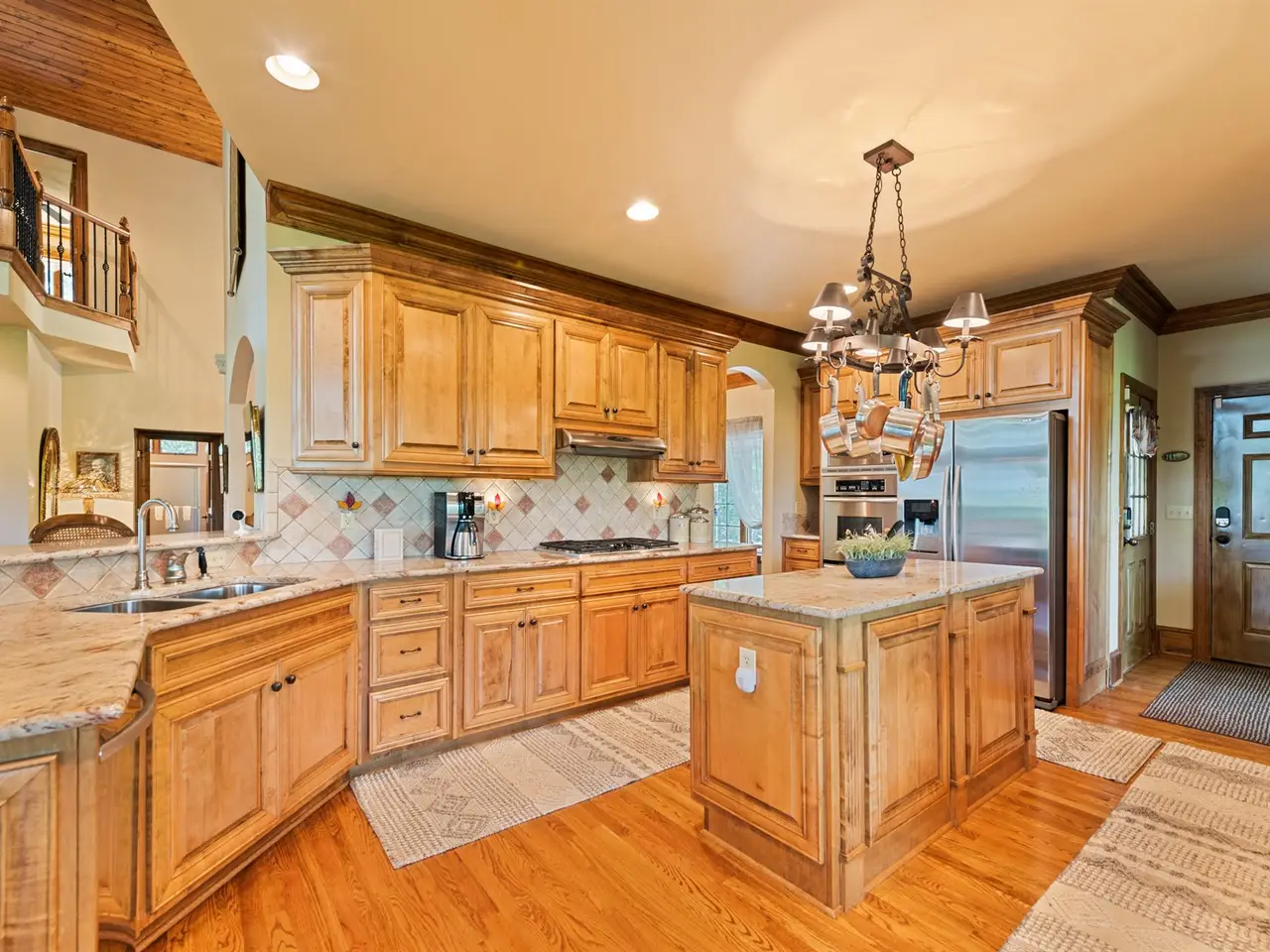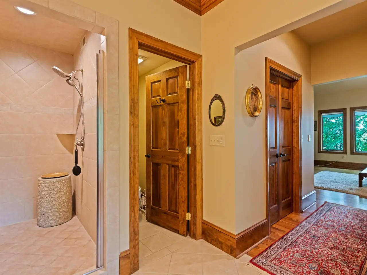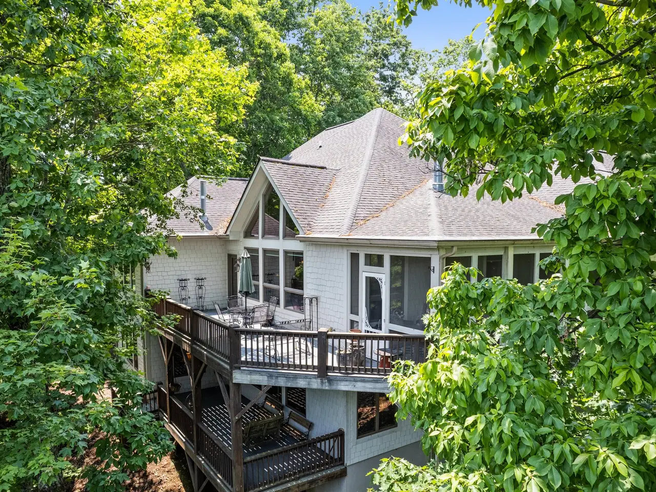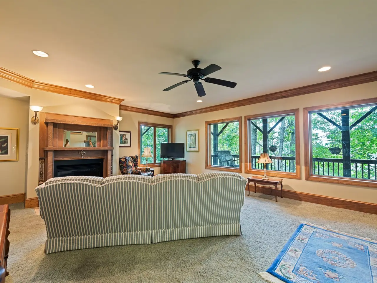 ***UPDATE: THE VIEW HAS BEEN OPENED AND IT IS BREATHTAKING!*** This exquisite luxury residence offers an unparalleled mountain living experience. Step inside a grand entryway with vaulted ceilings. The main level primary ensuite bedroom offers a gas log fireplace and dual closets. A lovely staircase leads to a large en-suite bedroom. The gourmet kitchen is a chef's delight with high-end wood cabinetry, granite countertops, and is open to the great room with an eat-in area. The immaculate 2-car garage features durable outdoor carpet. The finished walkout basement features a second living room with a wet bar and gas log fireplace, another primary ensuite bedroom, and an exquisite, spa-like bathroom. The basement also offers an additional 1,376 square feet of unfinished space for expansion potential. Enjoy the tranquility and natural beauty of Maggie Valley from two covered decks and a screened porch. Modern amenities include a tankless hot water heater, Beam Serenity Plus Water Filtration System, and an ADT Security System.