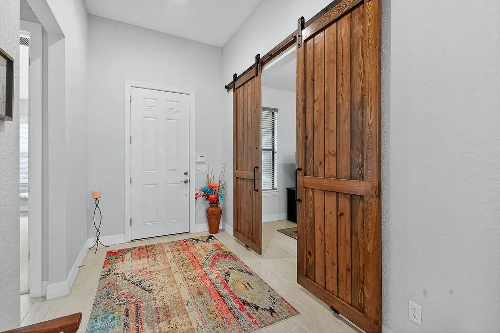 Welcome to Copperleaf - One of Palm Citys Most Sought-After Communities!This beautifully maintained coastal themed Pulte Pinnacle model offers the perfect blend of luxury, comfort, and functionality--all on one spacious level. Nestled on a pie-shaped oversized lot, this 3-bedroom, 3-bath home (including 2 ensuite baths) features a split floorplan with a dedicated home office adorned with custom barn doors, ideal for work or quiet retreat.The heart of the home is the open-concept, upgraded kitchen, boasting taller cabinets, an expanded center island, and ample space for entertaining. Impact windows throughout offer peace of mind, while allowing natural light to pour in.Step outside to your private, screened pool area with crosswind heat pump. The serene