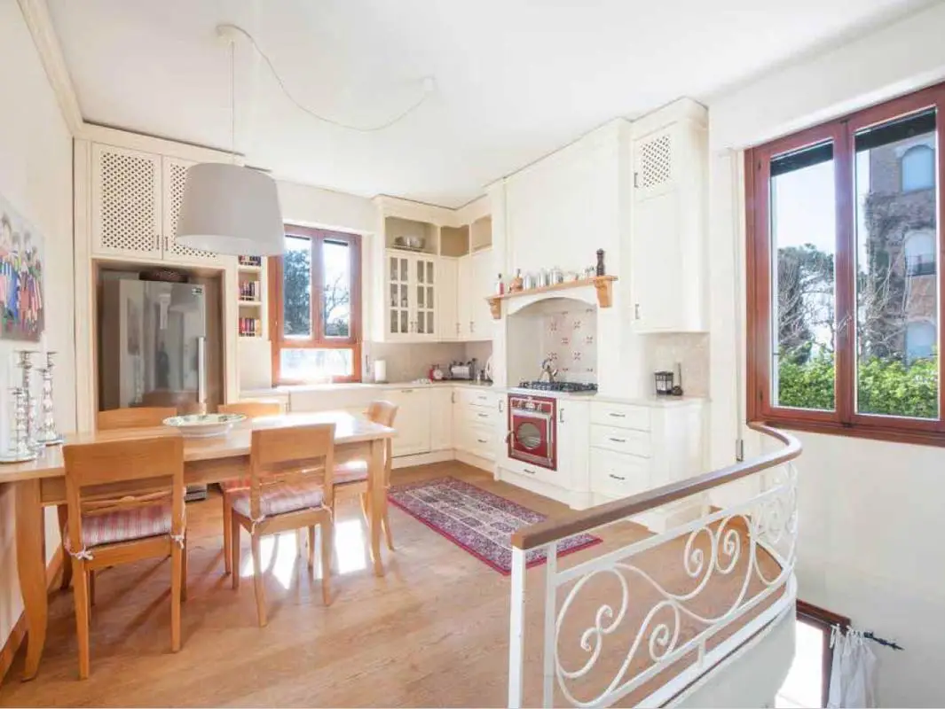 The Lido di Venezia is an island just a few minutes from the heart of one of the most beautiful and fascinating cities in the world, Venice. The enchanting beauty of its beach and the healthiness of its environment have attracted illustrious guests since the 19th century. In the first half of the 20th century it took on the nickname of golden island for the extraordinary concentration of environmental qualities, artistic and architectural riches, cultural, social and sporting events, quality of life that it still offers its visitors today. The villa is located a few meters from the vaporetto and the beaches. It consists of two floors, basement and first level, with a beautiful exclusive garden overlooking the canal and equipped with a private mooring. The apartment has been recently renovated and on the first level there is a large entrance hall, a living room connected to the dining room, a kitchen with access to the garden, three bedrooms, a study and two bathrooms. In the basement, also with access from the garden, there is a living room, a utility room, a bathroom and a laundry area. The garden surrounds the entire apartment and overlooks a canal that ends in the lagoon. The apartment can also be reached by boat as it has a private access.