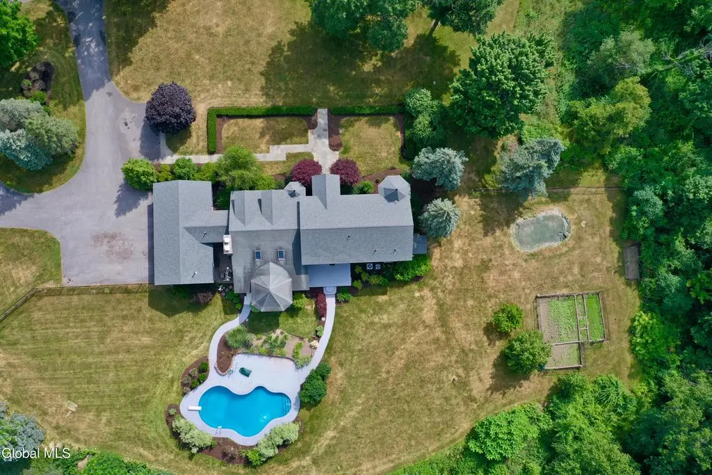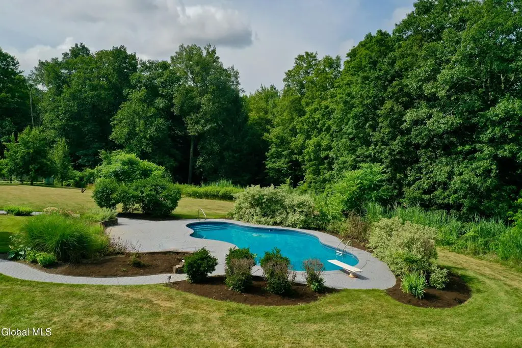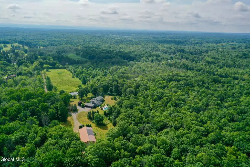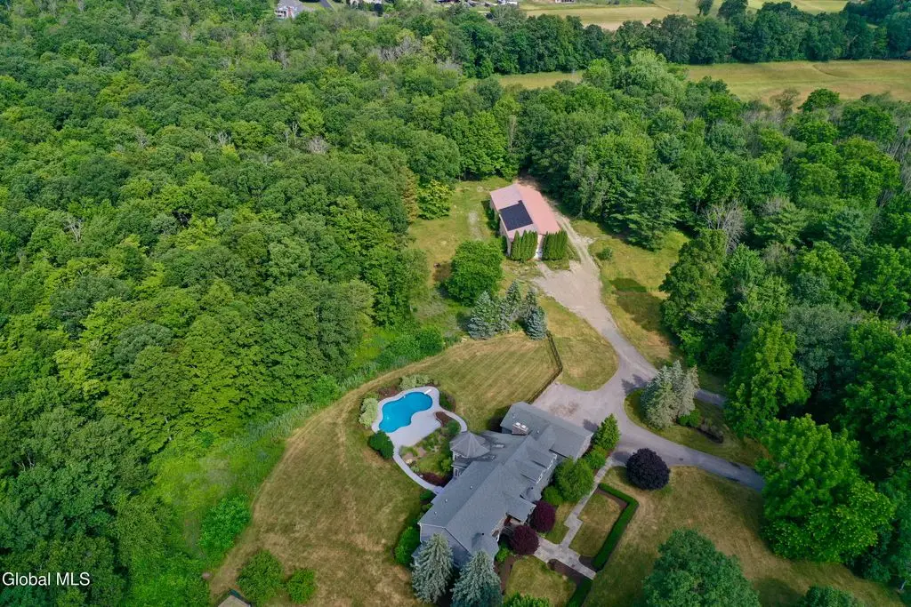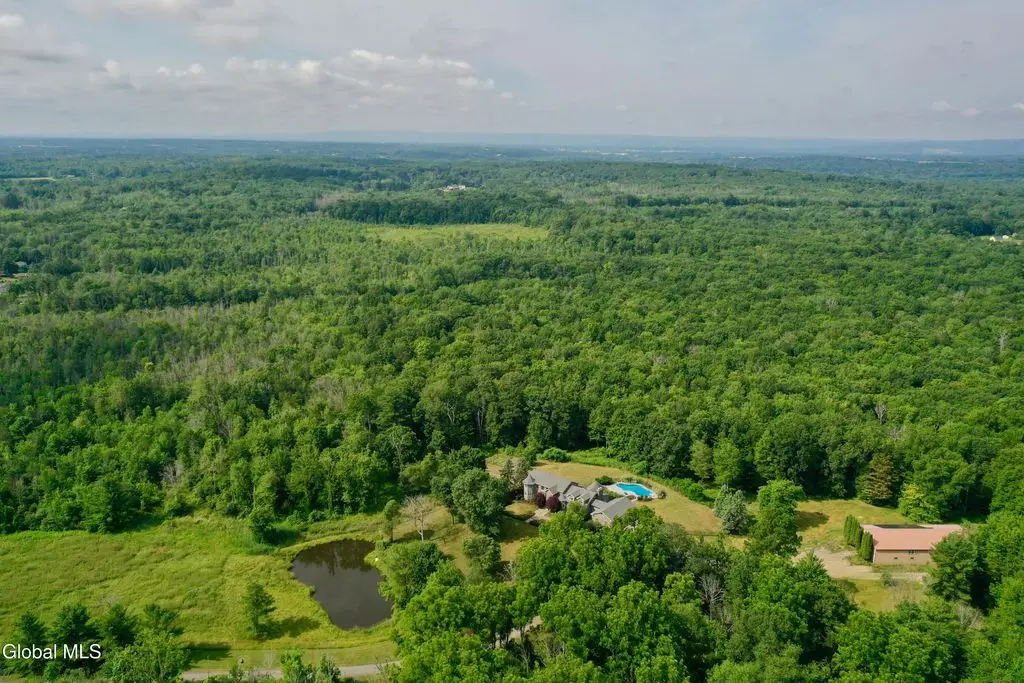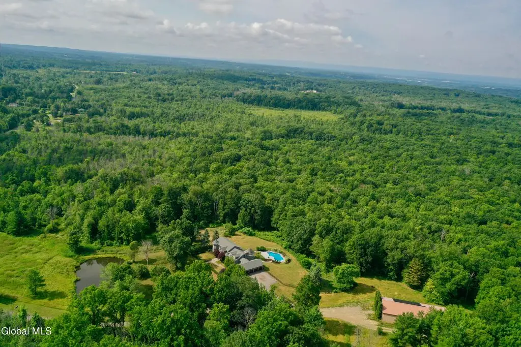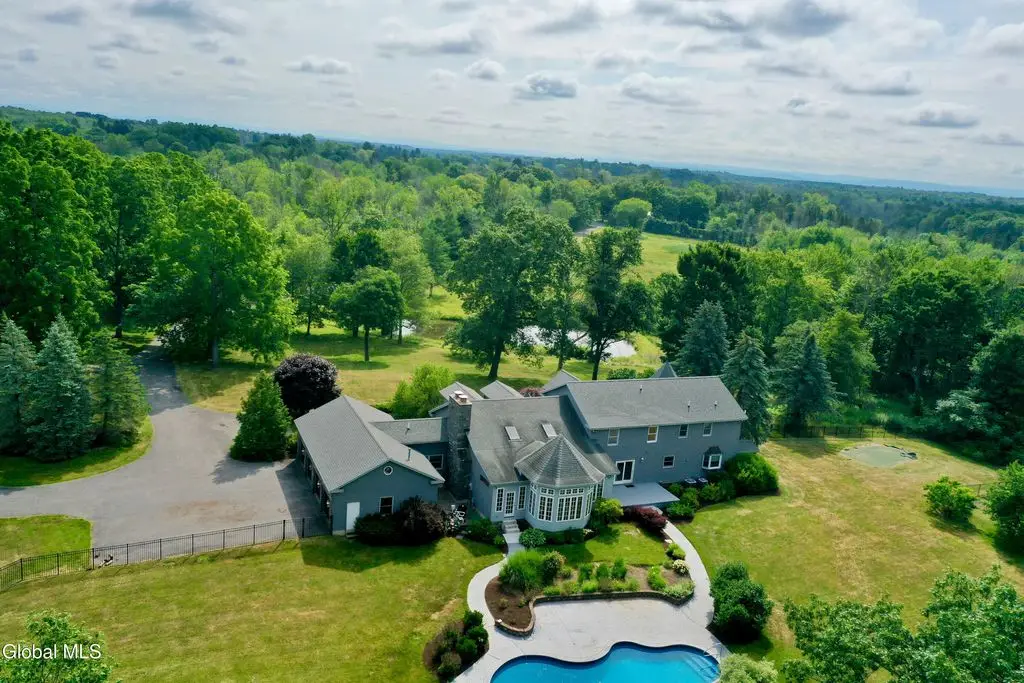 Welcome to this exceptional private estate nestled on 52.36 picturesque acres, offering the perfect blend of luxury and functionality. A serene pond and expansive grounds set the tone for this truly special property. Outdoor features include a large Barn with endless possibilities. An inground pool surrounded by stamped concrete patios and gardens. Inside, the home boasts a spacious family room with a stunning floor to ceiling stone fireplace, a sun-drenched porch with radiant heat, and an elegant combination living and dining area highlighted by rich cherry floors. The gourmet kitchen is a chef's dream, complete with granite counters, a sub-zero refrigerator, double wall ovens, large center island, and a breakfast nook. Close to everyday amenities and a short drive to Saratoga Springs.