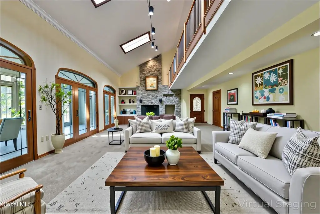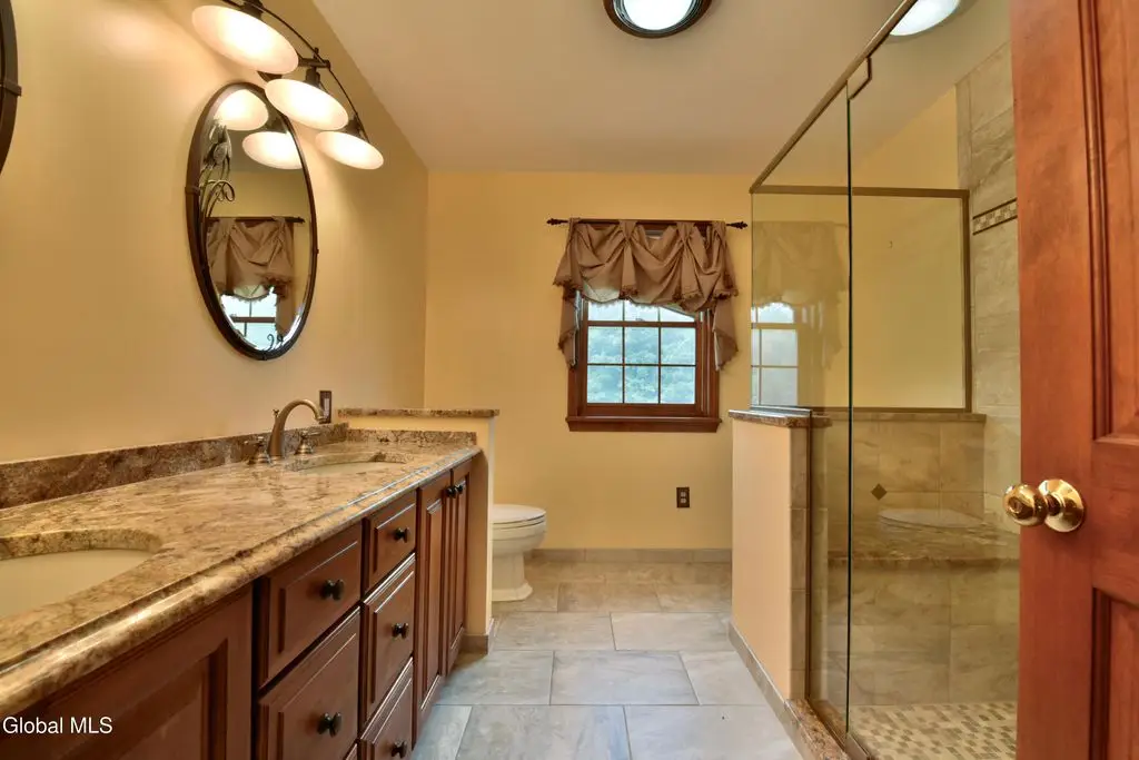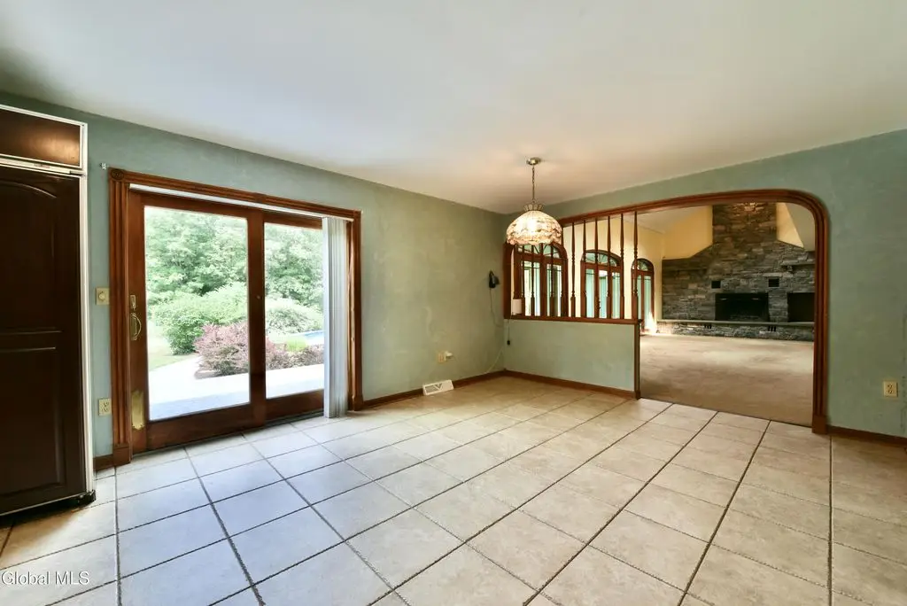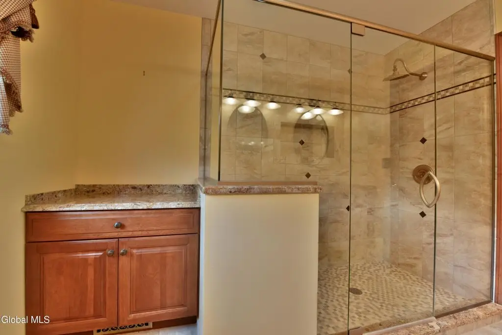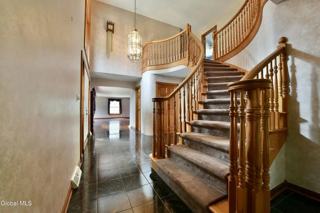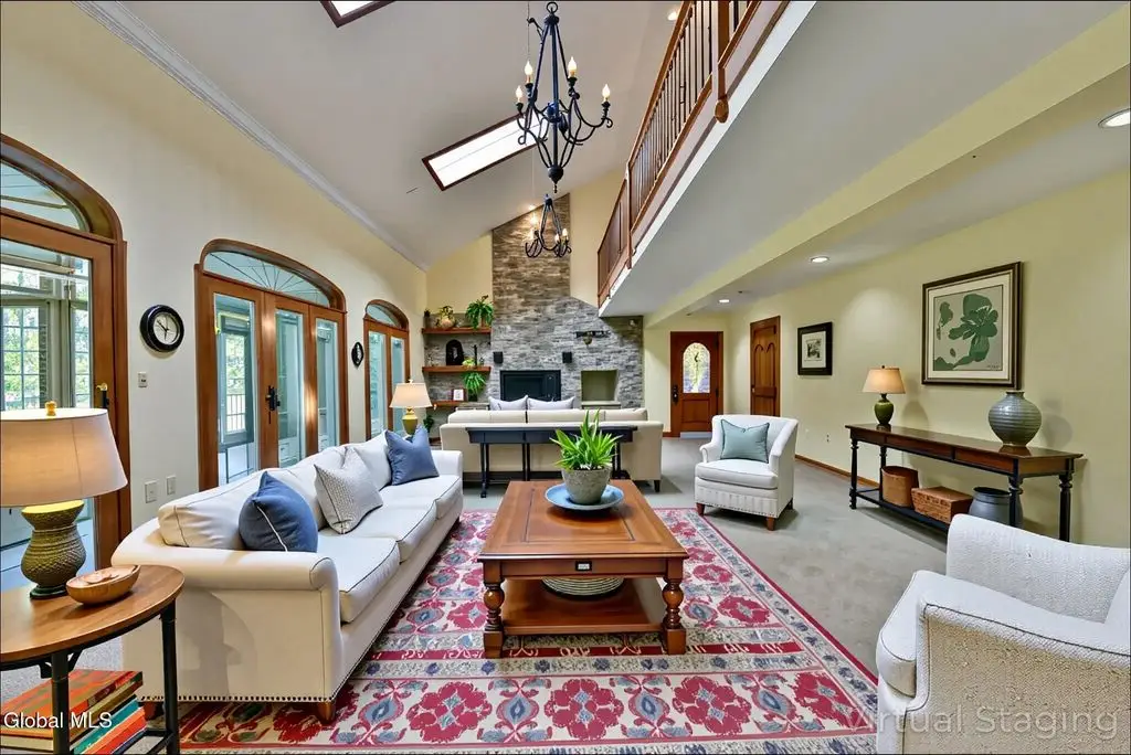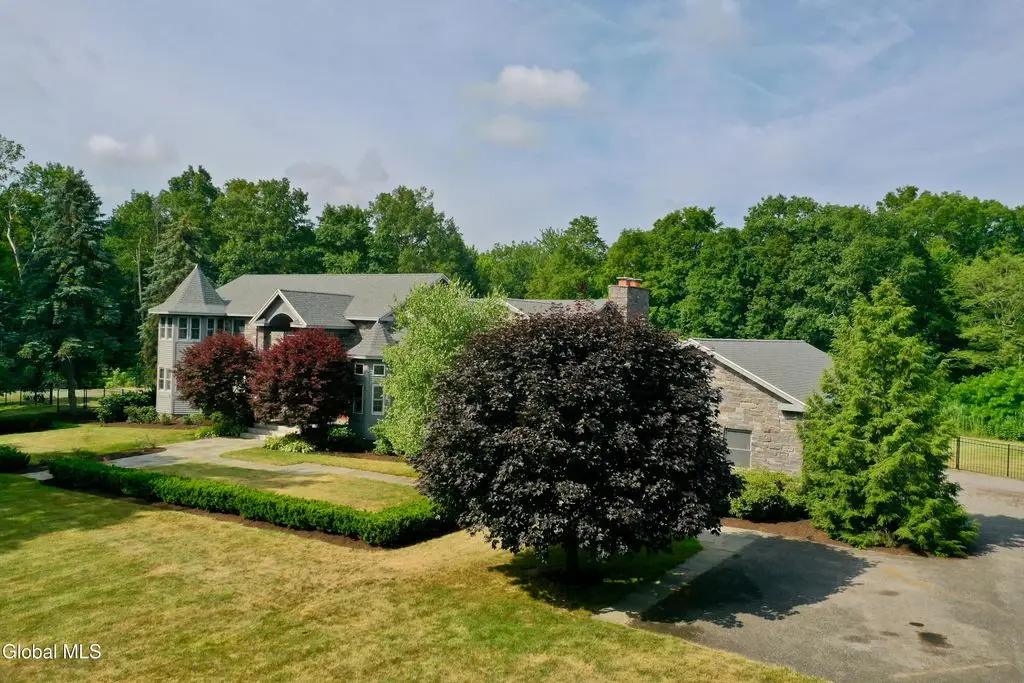 Welcome to this exceptional private estate nestled on 52.36 picturesque acres, offering the perfect blend of luxury and functionality. A serene pond and expansive grounds set the tone for this truly special property. Outdoor features include a large Barn with endless possibilities. An inground pool surrounded by stamped concrete patios and gardens. Inside, the home boasts a spacious family room with a stunning floor to ceiling stone fireplace, a sun-drenched porch with radiant heat, and an elegant combination living and dining area highlighted by rich cherry floors. The gourmet kitchen is a chef's dream, complete with granite counters, a sub-zero refrigerator, double wall ovens, large center island, and a breakfast nook. Close to everyday amenities and a short drive to Saratoga Springs.