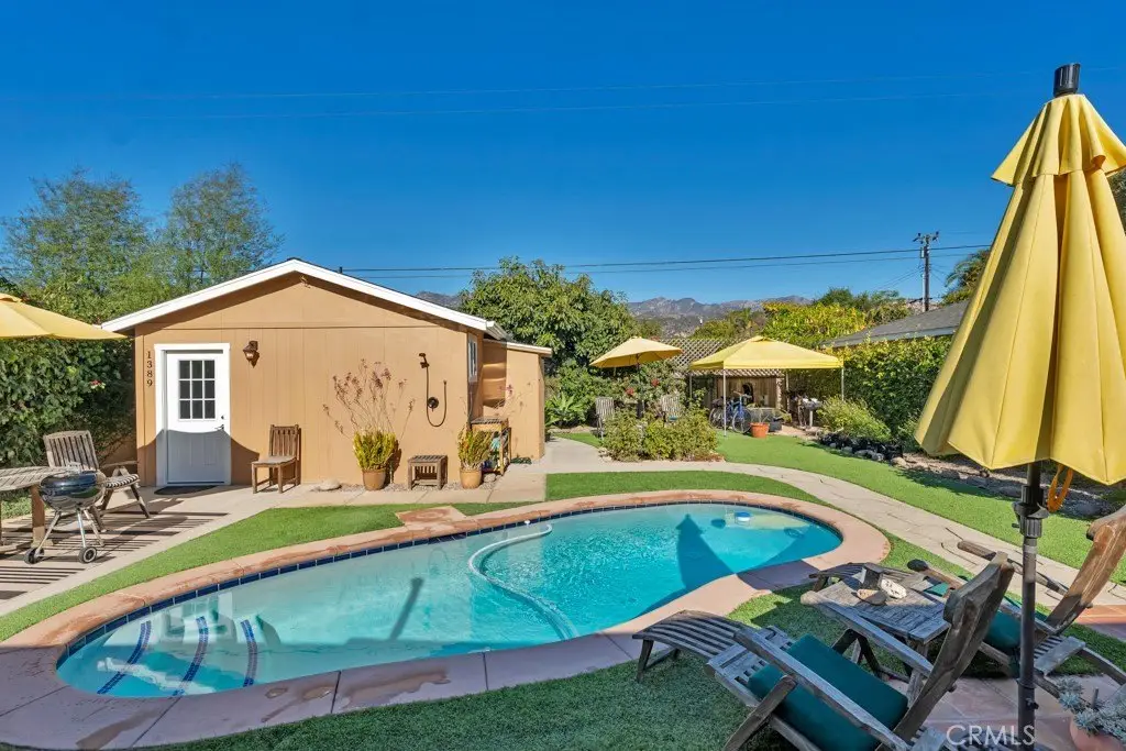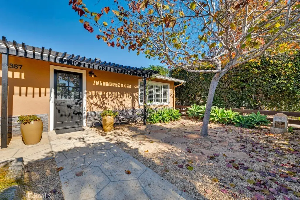 REMODELED TO PERFECTION AND BRAND NEW SECOND COTTAGE (ADU), COMPLETED 2023. TWO COTTAGES ON ONE LOT, 1387 AND 1389 VALLECITO PLACE (two legal addresses) located in the prime historic Vallecito enclave of custom cottages in the scenic Carpinteria by the sea. One mile walk to sandy beach/village, half mile to the many new shops and restaurants. BEACH LIVING with near perfect central coastal climate. Gated and walled mini-compound RARE JEWEL with MOUNTAIN VIEWS and NEW CUSTOM HEATED POOL (COMPLETED 2023) and separate spa. Front house is a custom architectural 2+1 cottage with cathedral beamed ceilings, European black oak hardwood plank floors, recessed lighting, gourmet center island kitchen with honed marble counters, Dutch door, high end designer fixtures/finishes, santori wood working cabinetry with Carrera marble tops, third bedroom and second bath is in the rear BRAND NEW cottage (ADU, completed 2023), also includes a second kitchenette and laundry area for a total of 1, 240 sq ft for front and rear cottages, you could fence off the second house for privacy if so desired. Manicured landscape-architect backyard with the new pool, hot tub, artificial turf, fruit trees, two fountains, TOTAL BEACH SPA-LIKE ambiance to go with the glorious location and climate. Outdoor hot water shower to rinse off sand from the beach, new roof, rent out the back house and live in the front house, QUIET street, great investment opportunity, escape to gorgeous Carpinteria by the sea. All appliances included along with hot tub, fountains and washer/dryer.