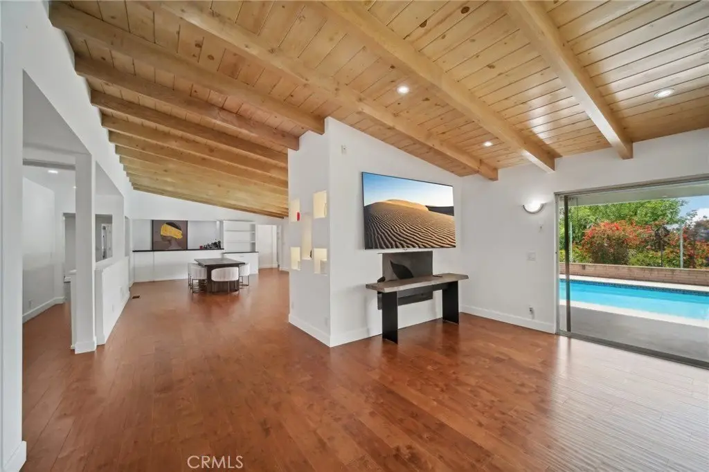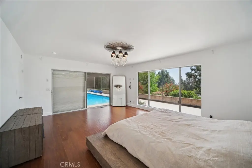 An exquisite, ultra-private entertainers home awaits you in the prestigious community of Knollwood Estates. This stunning immaculate 6 bedroom/7 bath home is full of character and charm. A modern feel with a twist of Mid Century. Super private 17, 358 sq/ft lot, that is set back off the street, allowing for tree top and city views. The moment you walk in you are greeted by the mesmerizing wood beamed vaulted ceilings and the view of the relaxing pool and treetops beyond the oversized glass sliders. Large eat in kitchen with center island, tons of cabinets/storage and stainless steel appliances. Butlers’ kitchen/pantry area is strategically situated with commercial-style fridge, sink, double oven and more storage. 2 primary suites one at each wing of the home. 1st Primary suite is located upstairs with skylights, oversized seating area, wrap-around walk-in closet , heated bathroom floors and balcony with amazing city & pool views. 2nd primary suite located on the main level also has relaxing views of the pool & tree tops, ample windows/glass sliders, oversized walk-in closet, his and hers bathrooms and even a relaxing/meditation outdoor area created off master bath. Enhance your health with your very own private infrared sauna! All bedrooms are good sized with plenty of storage space. Entertainers yard with heated pool, covered patio area, outdoor bathroom w/shower and several different areas to entertain throughout the large lot. NO detail has been spared. Some other features include oversized double fireplace, 3 HVAC zones, paid off/owned solar, exterior roll down blinds and so much more.