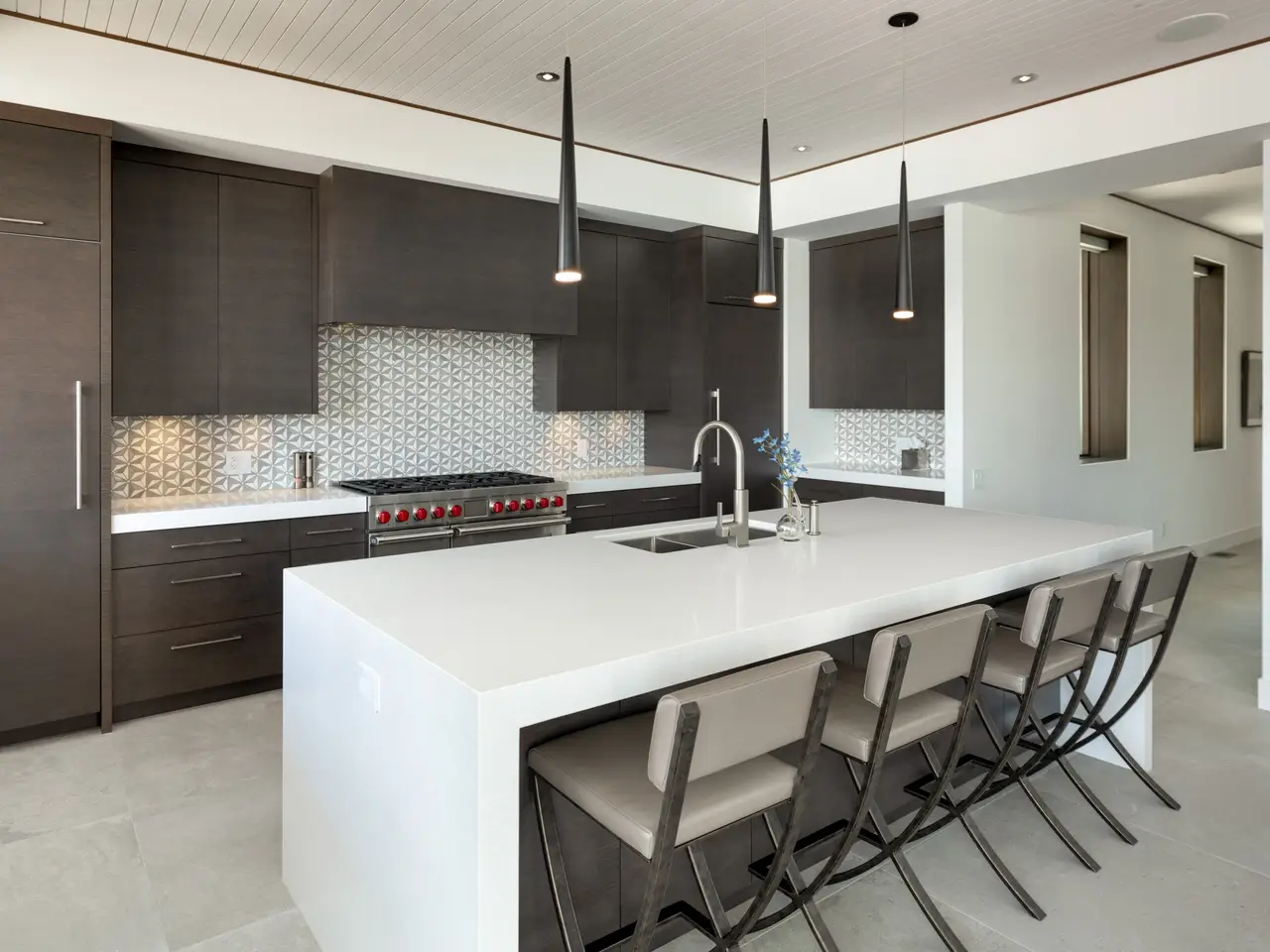 • 23-foot ceilings & linear gas fireplace