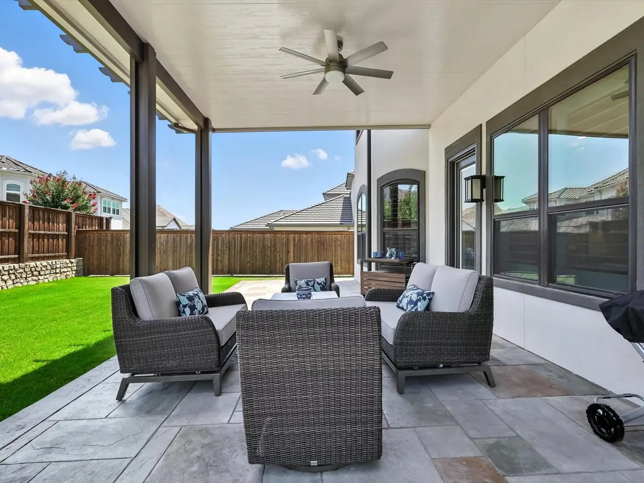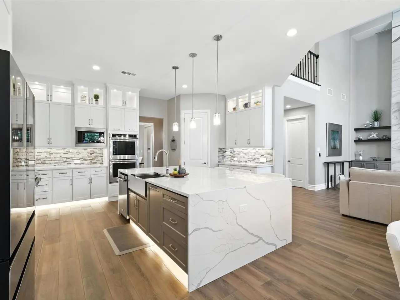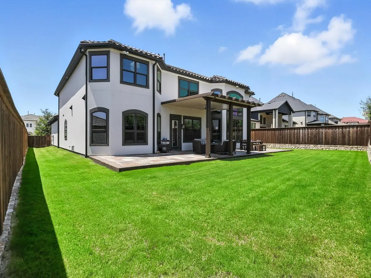 Welcome to this stunning Toll Brothers home located in one of Friscos most sought-after neighborhoods. With over 4200 sq. ft. of living space this home features an open-concept floor plan with soaring ceilings, walls of windows, and abundant natural light, creating a bright and inviting atmosphere. With massive upgrades throughout this home, it is designed to impress. Step inside to a grand curved staircase and wall to wall porcelain wood look tile. The heart of the home is the gourmet kitchen with an oversized Quartz waterfall island, built in farmers sink, double ovens and custom-built cabinets throughout. The kitchen seamlessly flows into a spacious living room with a gorgeous floor-to-ceiling tile fireplace and custom-built shelves making it a striking focal point. The large primary suite is a private retreat with a luxurious bath including soaker tub, porcelain tile shower with frameless glass enclosure and custom-built dual vanities. Lets not forget the large primary walk-in closet that connects directly to the laundry room that features a built-in dog wash tub and custom-built cabinets. Upstairs you will find 3 spacious bedrooms with 2 full baths and a large media room. The loft area overlooks the downstairs and serves as a game room, playroom, or extra living space. The exterior of the home greets you with a custom cut Gem-Scape concrete coated driveway, new large backyard patio with new patio cover. 3 car garage with epoxy coating and mounted overhead storage shelves. So many upgrades-- this home is a must see!