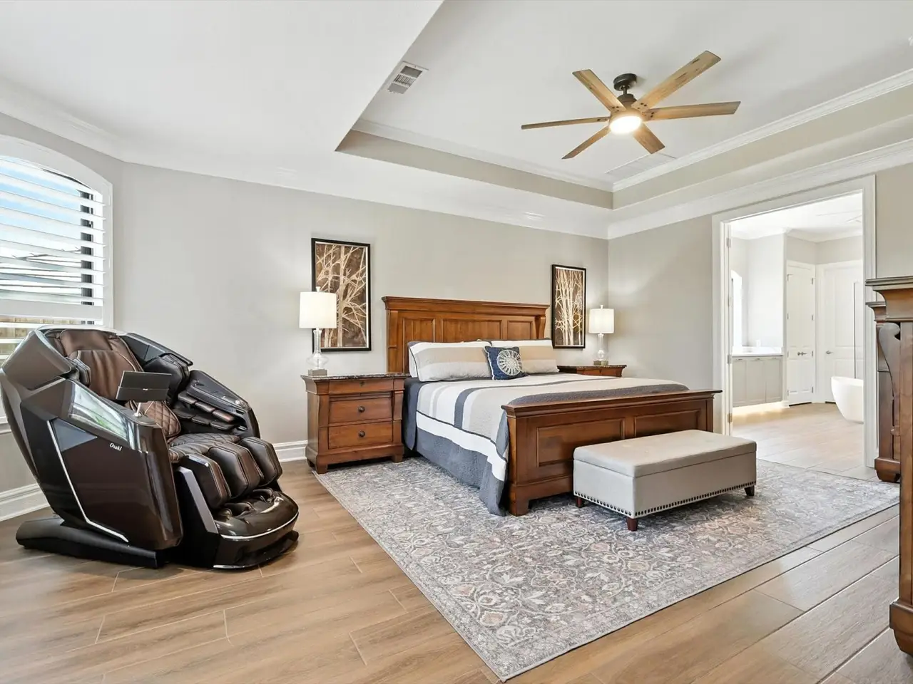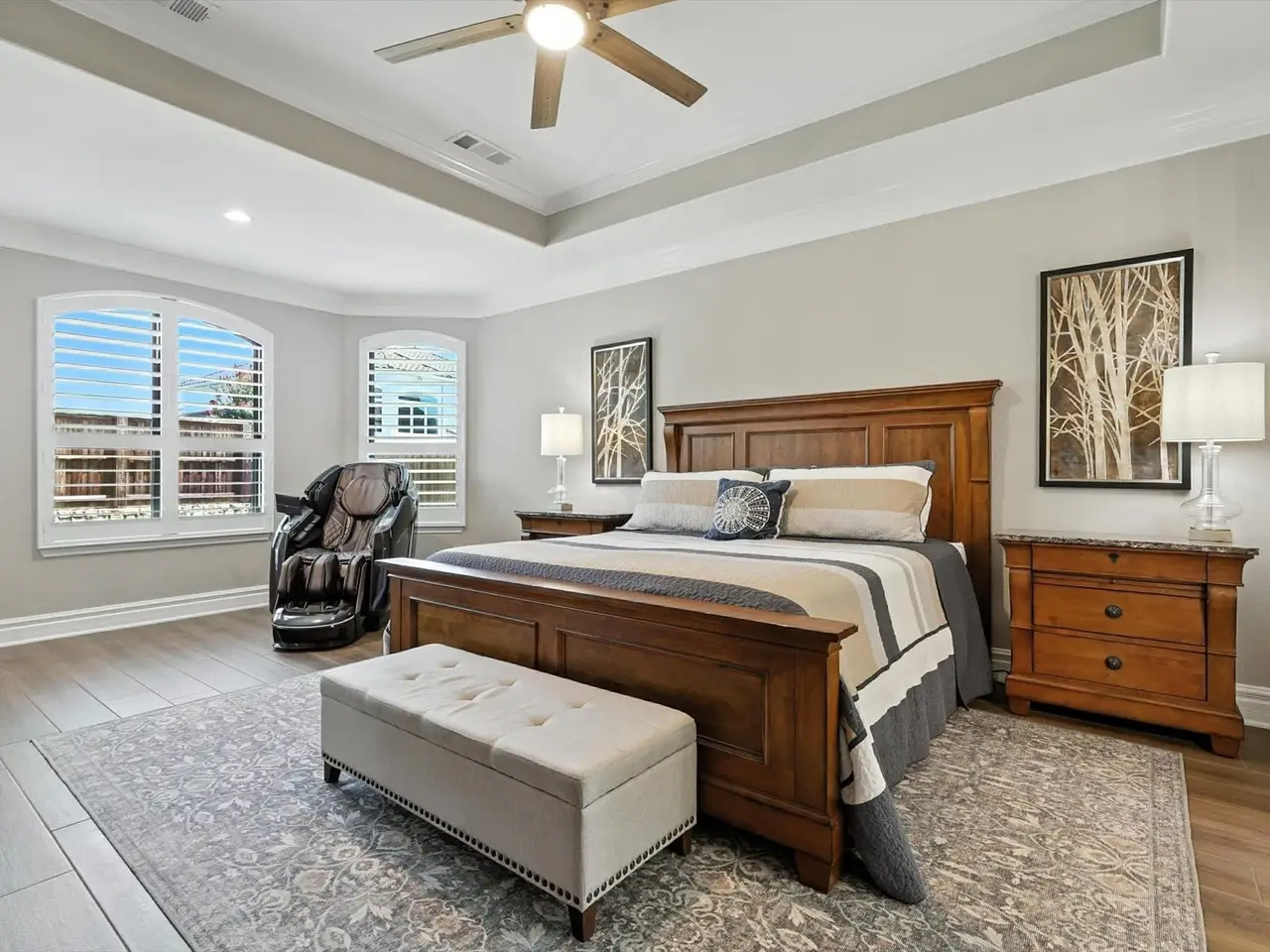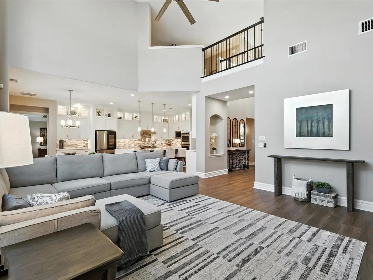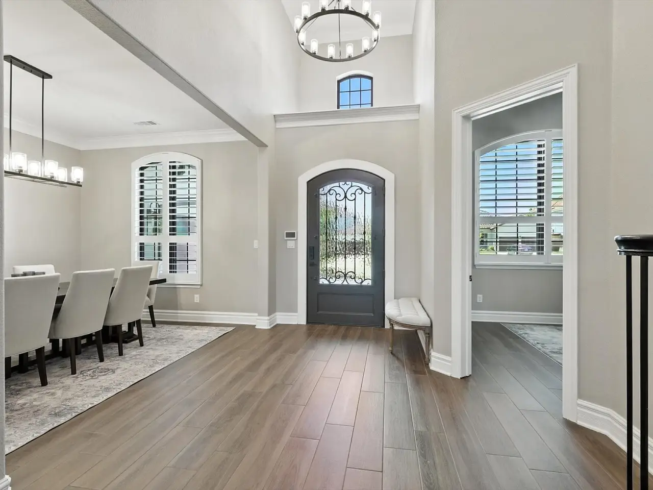 Welcome to this stunning Toll Brothers home located in one of Friscos most sought-after neighborhoods. With over 4200 sq. ft. of living space this home features an open-concept floor plan with soaring ceilings, walls of windows, and abundant natural light, creating a bright and inviting atmosphere. With massive upgrades throughout this home, it is designed to impress. Step inside to a grand curved staircase and wall to wall porcelain wood look tile. The heart of the home is the gourmet kitchen with an oversized Quartz waterfall island, built in farmers sink, double ovens and custom-built cabinets throughout. The kitchen seamlessly flows into a spacious living room with a gorgeous floor-to-ceiling tile fireplace and custom-built shelves making it a striking focal point. The large primary suite is a private retreat with a luxurious bath including soaker tub, porcelain tile shower with frameless glass enclosure and custom-built dual vanities. Lets not forget the large primary walk-in closet that connects directly to the laundry room that features a built-in dog wash tub and custom-built cabinets. Upstairs you will find 3 spacious bedrooms with 2 full baths and a large media room. The loft area overlooks the downstairs and serves as a game room, playroom, or extra living space. The exterior of the home greets you with a custom cut Gem-Scape concrete coated driveway, new large backyard patio with new patio cover. 3 car garage with epoxy coating and mounted overhead storage shelves. So many upgrades-- this home is a must see!