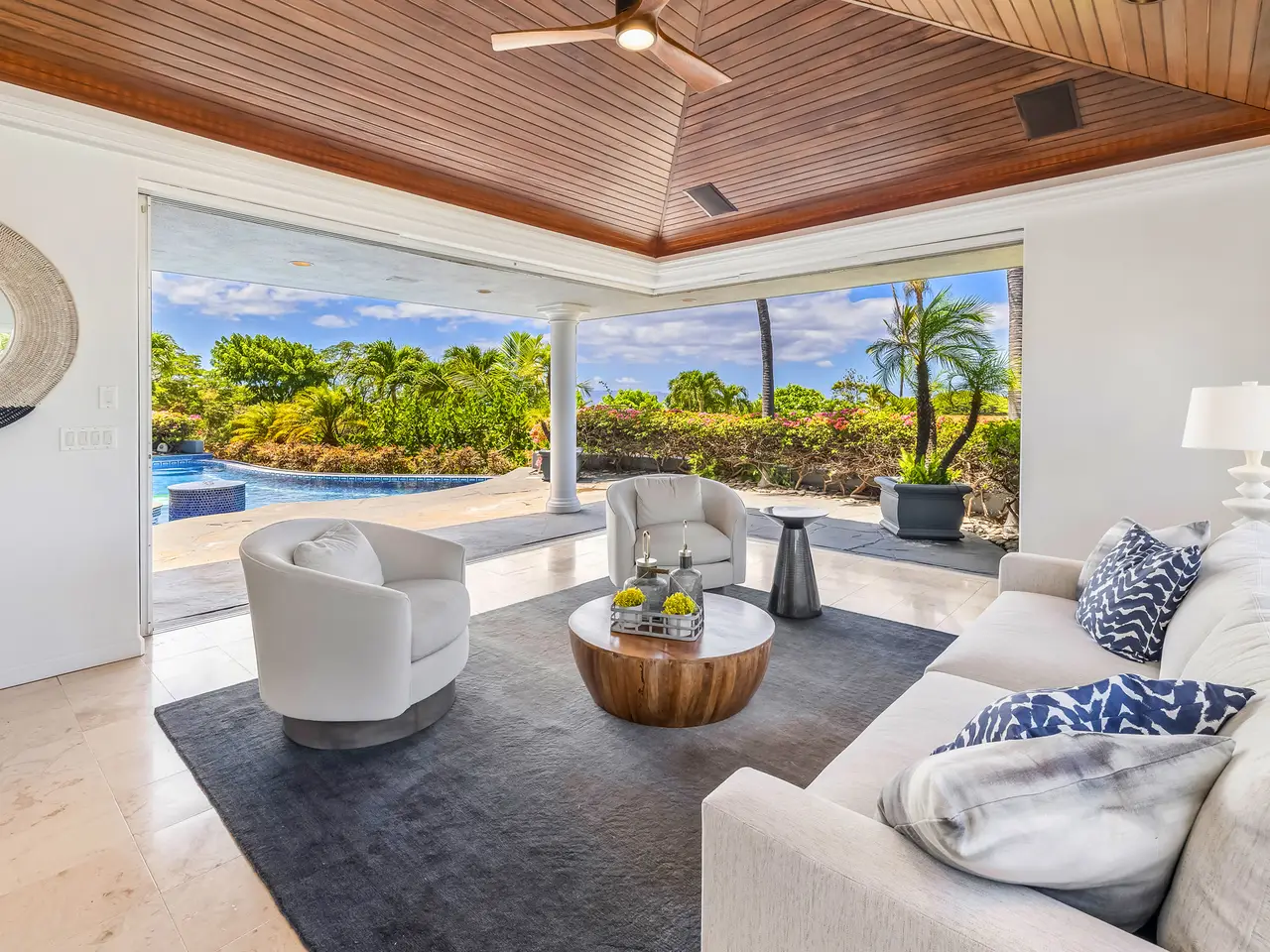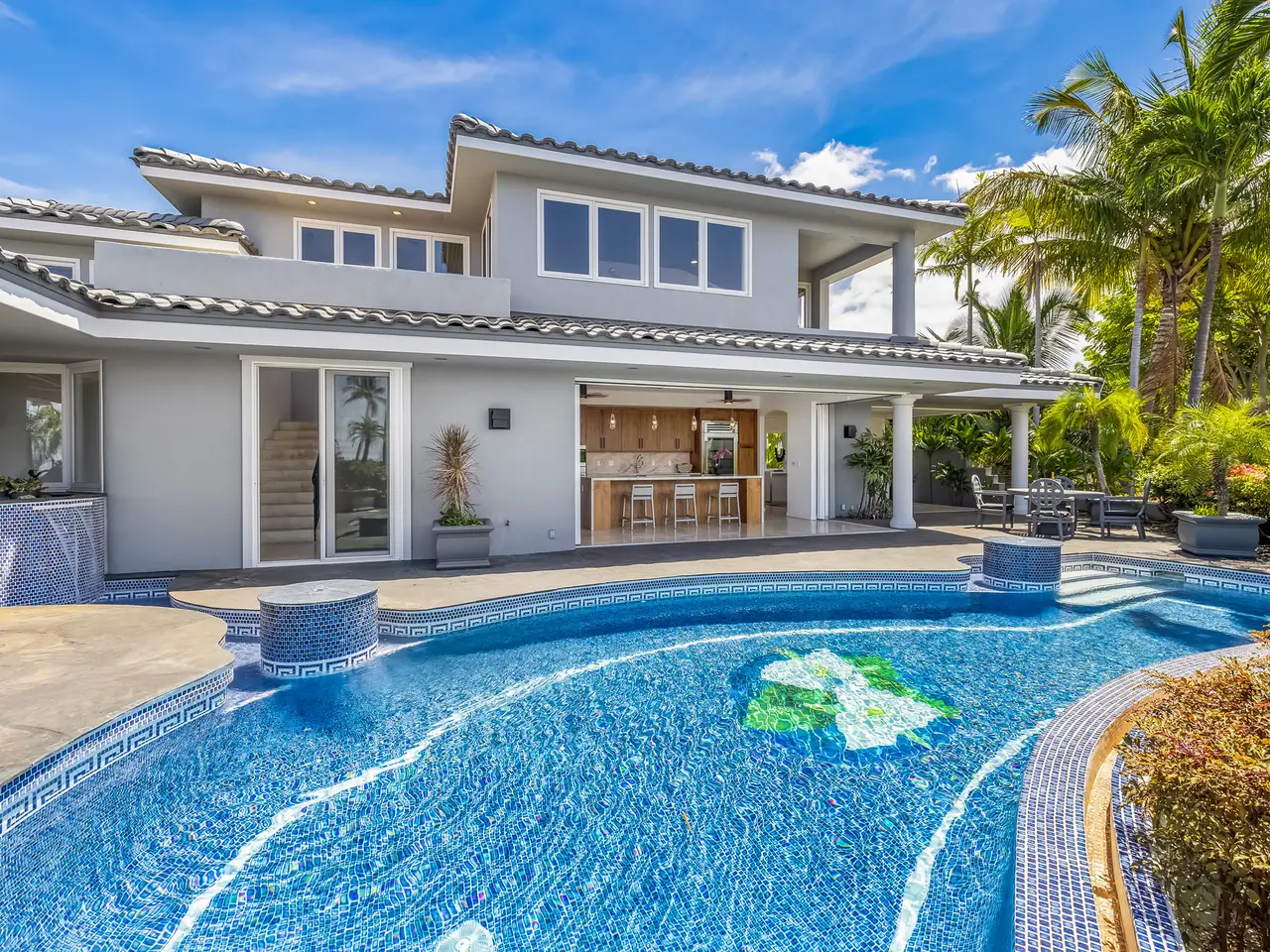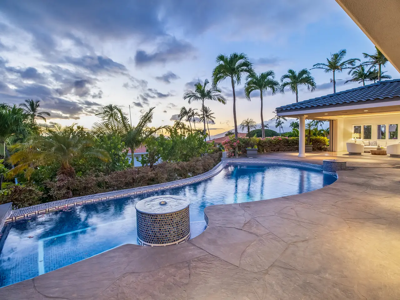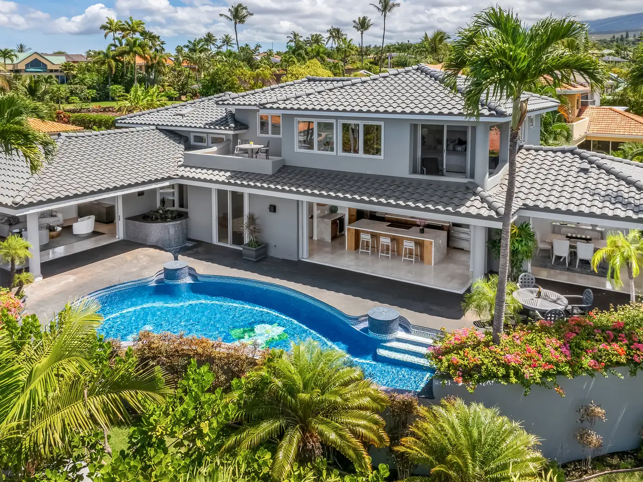AUCTION BIDDING OPEN: Bidding ends November 13th. Previously Listed $3.75M. Current High Bid $2.1M. Showings By Appt. An extraordinary modern sanctuary awaits within Wailea Kialoa's exclusive gated enclave, where elevated corner positioning captures panoramic Pacific vistas and endless island sunsets. This sophisticated residence showcases the pinnacle of contemporary Hawaii luxury through seamless indoor-outdoor living enhanced by retractable Fleetwood pocket doors connecting expansive social spaces with a resort-style pool and entertaining areas. Thoughtful architectural elements, including vaulted ceilings with stained cedar beams, skylights flooding interiors with natural radiance, and premium finishes from SubZero appliances to Taj Mahal stone countertops, create an atmosphere of refined elegance. The primary suite commands breathtaking ocean panoramas from dual lanais while two additional bedrooms offer versatile configurations for guests or executive use. Co-listing agent is a licensed Realtor in Hawaii and a manager of the LLC that owns this property.