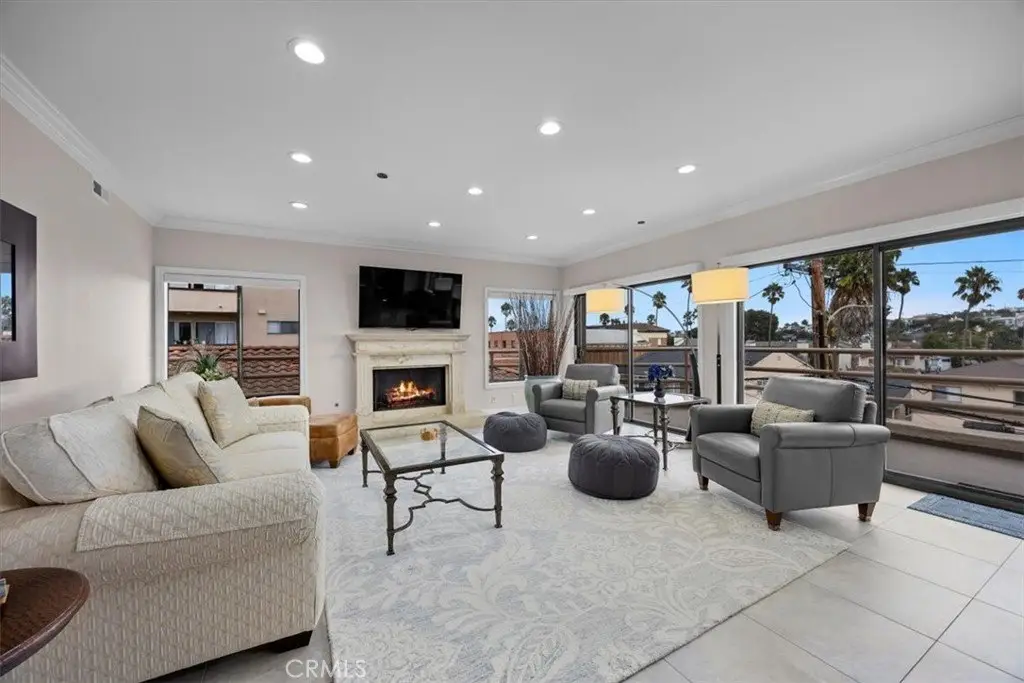 Prestigious Penthouse complex on the Esplanade! Rare end-unit in a secure 13-residence building offering privacy, luxury, and unbeatable beachside living. This spacious condo lives like a home with 2 large bedrooms, including a primary suite featuring a remodeled spa-inspired bath. Wraparound patio showcases breathtaking city-light views at night and stunning sunrises in the morning. Upgraded with custom tile floors, chef’s kitchen with dark wood cabinets, light stone island, and top-of-the-line appliances. Walls of windows flood the unit with natural light. This condo is STUNNING! Resort-style amenities include pool, spa, sauna, gym, and billiards room—all just steps to the sand. Truly a rare opportunity to own one of the most desirable residences on the Esplanade!