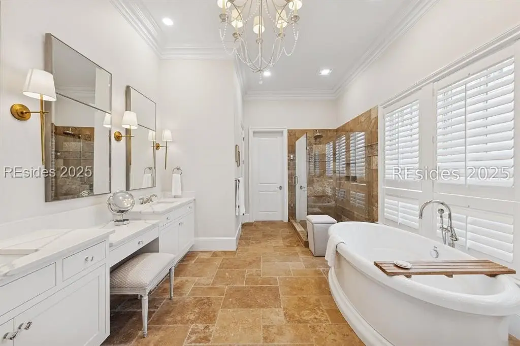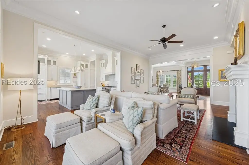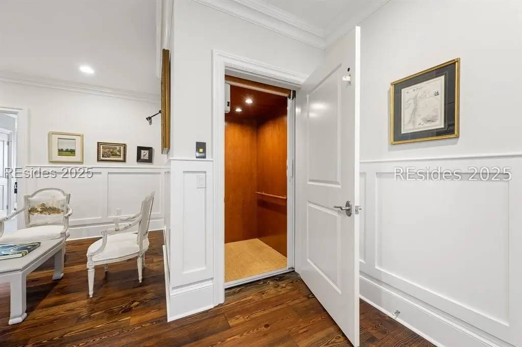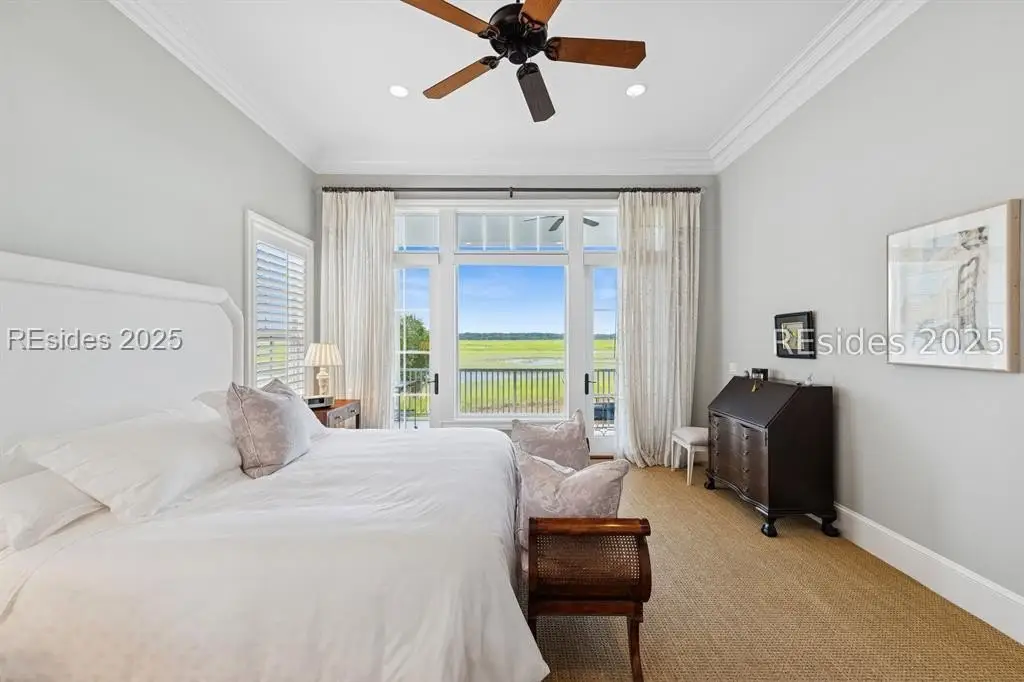 Experience the pinnacle of Lowcountry living with panoramic waterfront marsh and Colleton River views from this stunning 4BR/4.5BA luxury Belfair home. Perfectly elevated to maximize its incredible vistas, this residence has been thoughtfully updated with a state-of-the-art gourmet kitchen, spacious back kitchen/pantry with an additional refrigerator, spa-inspired baths, and gleaming heart pine floors. The first-floor primary suite includes a private laundry, while the second-floor junior suite and two additional ensuite bedrooms offer comfort for family and guests. An elevator provides easy access to all levels. Enjoy a library, screened porch, workshop, and oversized 2-car garage with golf cart storage all moments from Belfair's clubhouse, fitness center, pool, and world-class Tom Fazio golf.