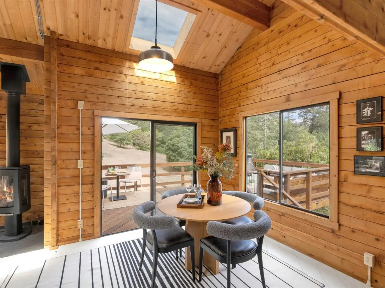 Featured in The NY Times, this one-of-a-kind off-grid property combines modern character and rustic charm on approx. 6 acres in the hills of Sebastopol; just 15 min to town, 25 min to the coast and 90 min to SF. The cedar cabin offers 2 bds, 1 ba, & a spacious loft, with light-filled interiors that flow onto an expansive deck designed for outdoor living and entertaining. Surrounded by mature trees, a creek and lush landscaping, the cabin feels like an ultra-private sanctuary. A separate office structure offers a quiet space for working remotely while raised garden beds and a large yard - both surrounded by deer-proof fencing - add color and utility. Perched at the top of the site is a 50-foot lap pool with sweeping views of the surrounding forest and rolling hills. A detached 450 sqft 2-level studio provides endless possibilities: a creative space, fitness room, workshop, or additional retreat. This is a rare opportunity to enjoy off-grid living with modern upgrades that make you feel as connected as you want to be. The land itself is a sight to be seen: a private meadow, open skies and total seclusion at the end of a paved private lane. Welcome to a distinctive and tranquil West County retreat that balances modern comforts with feeling worlds away.