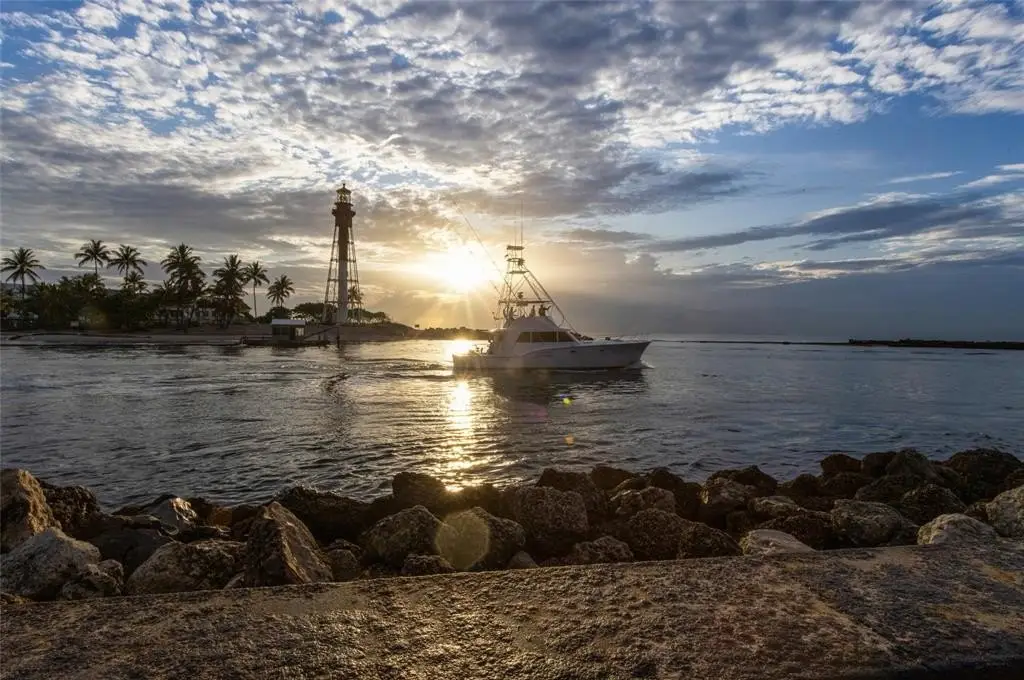 Rare Oceanfront Estate On Hillsboro Point! Located in the sought-after enclave of Hillsboro Shores, this exquisite estate is a masterwork of design, where nearly every principal room opens to a terrace or balcony framing sweeping sunrise views of the Atlantic Ocean, the Hillsboro Inlet and the iconic Hillsboro Lighthouse. Sited on over half an acre, enjoy three levels of luxury living including oversized primary suite, custom chef’s kitchen, & decorative detailing throughout. Features include elevator, 4-bay garage, theatre, custom wood paneled office, gym, impact windows/doors, Lutron lighting, putting green, observation deck and more. Outdoor entertainment is enjoyed at the verdant lawn and the resort-style pool with swim-up bar, tree house slide and spill-over spa. Private Beach Access.