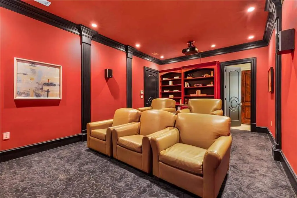 Refined luxury meets resort-style living in this extraordinary 6-bedroom, 5.5-bath European style estate, set on nearly five private acres in the heart of Smyrna. Offering close to 7,000 square feet of beautifully designed living space, this home is the perfect blend of elegance, comfort, and functionality. With a newer roof and a spacious four car garage, the property has been meticulously maintained and thoughtfully upgraded throughout. From the moment you step inside, you're welcomed by a grand chisel stone arch hallway and a dramatic spiral staircase that immediately sets the tone for the craftsmanship and detail that define the home. Imported Italian tile flows underfoot, leading you into the heart of the home a custom-designed chef's kitchen featuring a large island with counter seating, prep sink, custom cabinetry, and stainless steel appliances. The kitchen opens into an inviting informal dining space with a built-in bar, creating an ideal layout for entertaining and everyday living. The main level also features a bright and airy living room filled with natural light, a formal dining room, a cozy great room, a laundry closet, a versatile multi-use room, and a private bedroom with ensuite bath perfectly suited for a nanny suite, in-law suite, or guest accommodations. Movie nights are elevated in the private, theater-style media room, complete with surround sound, a projector, and tiered seating for the ultimate in-home cinema experience. Just beyond the living spaces, step out into your own personal backyard resort. Lush, manicured landscaping surrounds the saltwater pool, jacuzzi, covered outdoor fireplace, firepit, and basketball court offering endless opportunities for relaxation, entertaining, and recreation. Upstairs, the expansive owner's suite is a true sanctuary. Vaulted ceilings and large windows create an open and serene environment, while the luxurious en-suite bath features a soaker tub, walk-in shower, and an oversized custom closet. The suite al