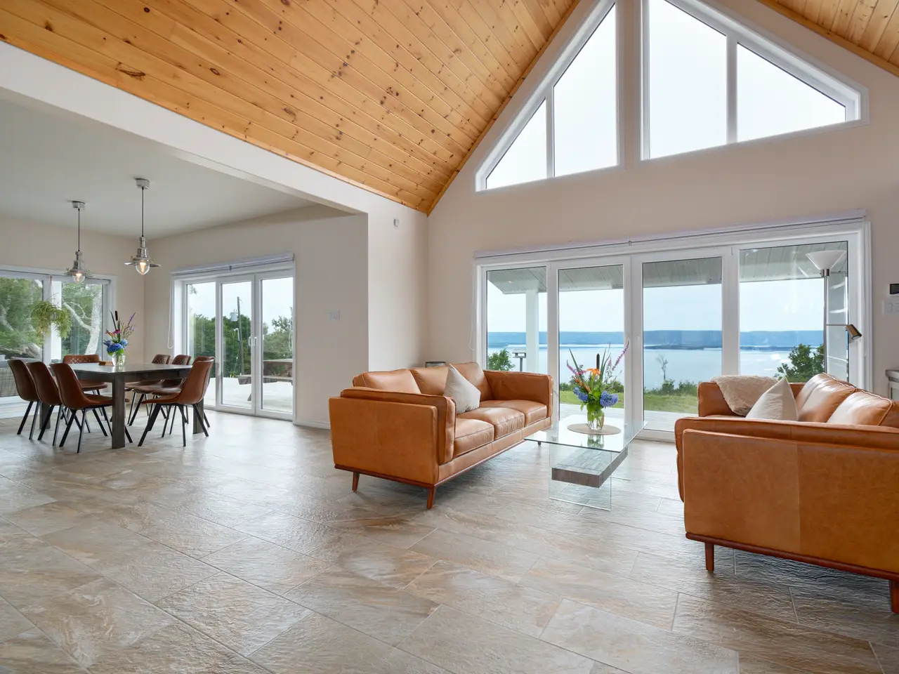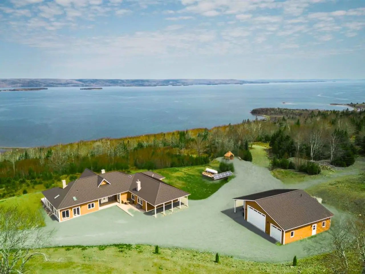Welcome to Golden View Dr. in Cape Breton, where you will find a large, secluded family estate spanning over 337 acres or 137 hectares. This property offers endless opportunities for development or simply enjoying your own privacy. Unique property with breathtaking views of the UNESCO-designated Bras dOr Lake. The main attraction is a newly constructed, high quality, single story modern home with a fully self sufficient guest wing. Entering the main house, you are greeted with unobstructed lake views through floor to ceiling windows in the living room with an open cathedral ceiling, which has the dining room and kitchen attached to one side. Huge sunroom. The main section of the house comprises a master bedroom with a luxurious spa like bathroom, two additional large rooms, a guest bathroom, a spacious pantry, and a laundry room. The guest wing offers an open concept kitchen living area, two bedrooms, and a full bathroom. Next to the main house is an oversized, insulated five car garage with a toilet and workspace designed to complement the aesthetics of the property. The guest house 1152 sq.feet just a two minute walk away. Outdoor amenities include a barbecue gazebo with stunning views, animal dog houses with fenced areas, a wooden chicken coop, a cleared plateau, and numerous hiking trails. Additional to the main 337 acres (three parcels), a 6-acre waterfront with one of the best Bras d’Or Lake beachlines is available for purchase. This property is a blank canvas, offering limitless possibilities limited only by your imagination and creativity. Such unique properties are rarely found! Do not just dream, live your dream!