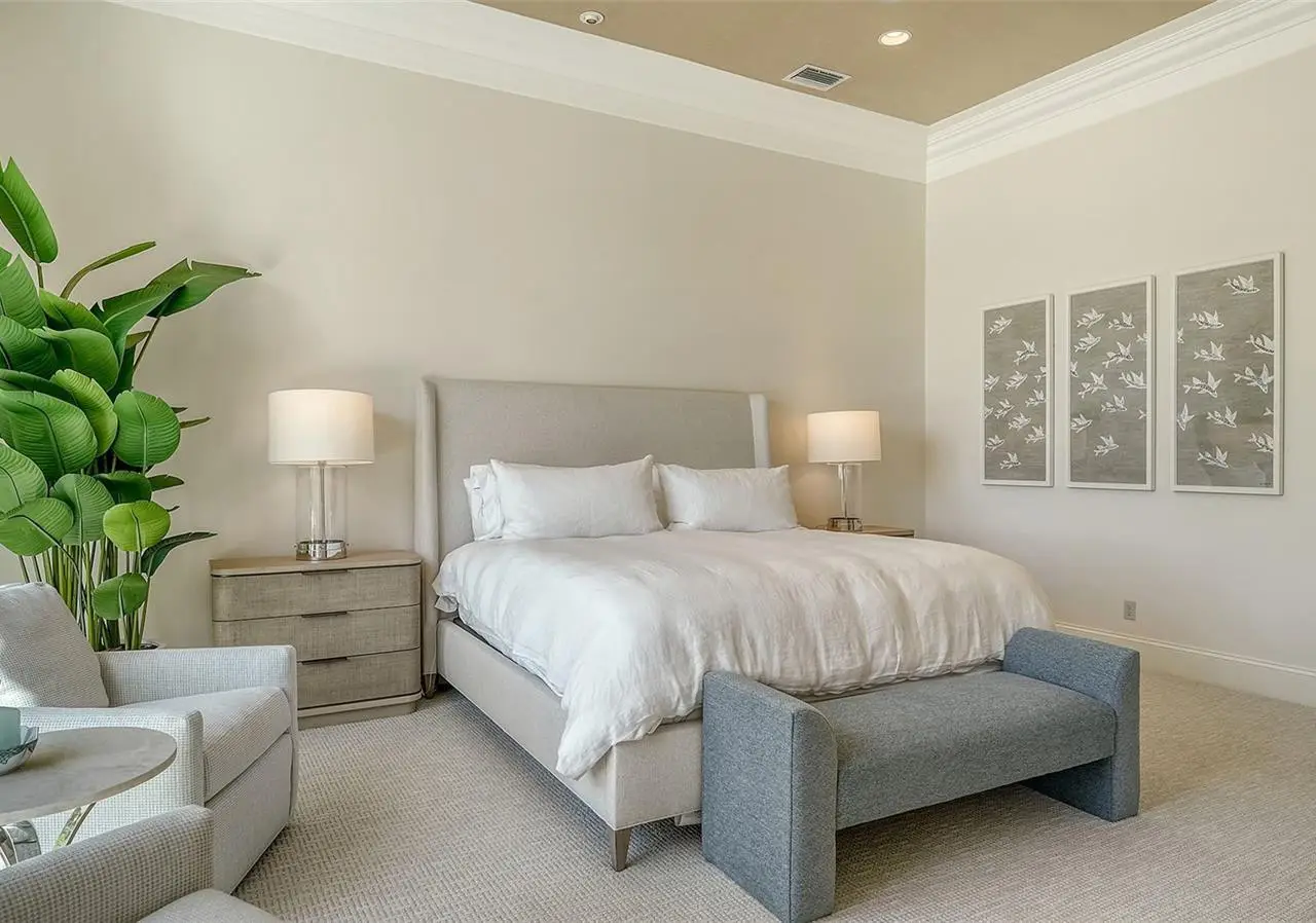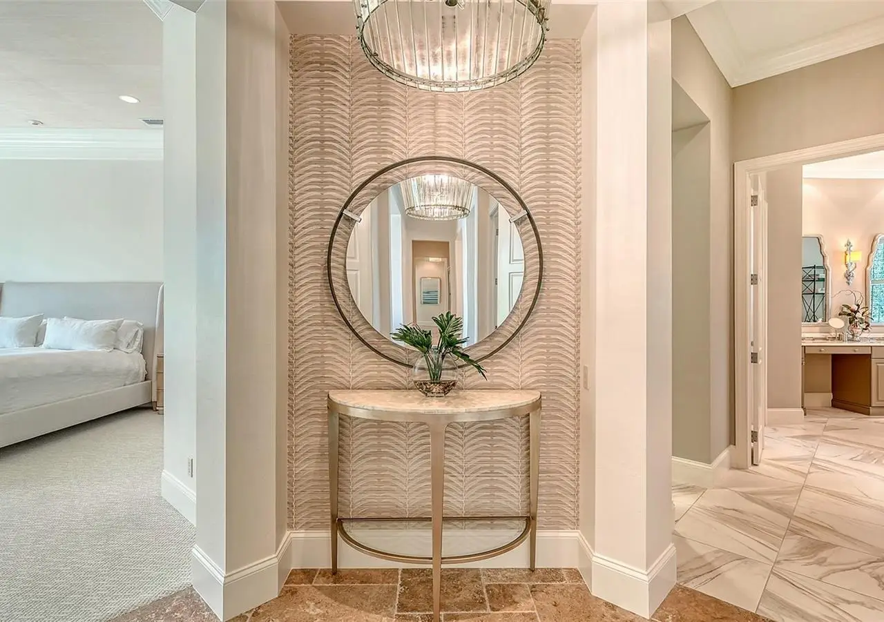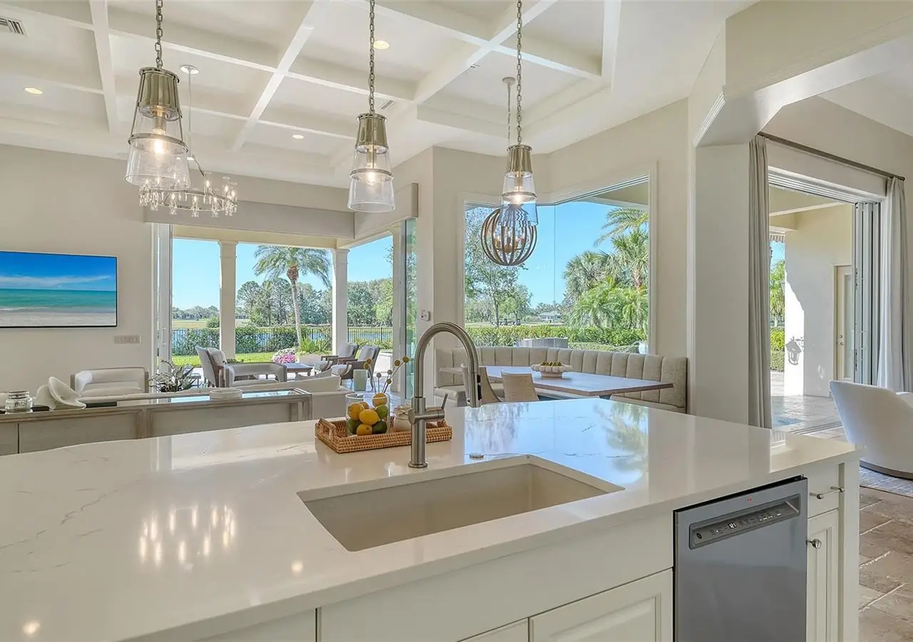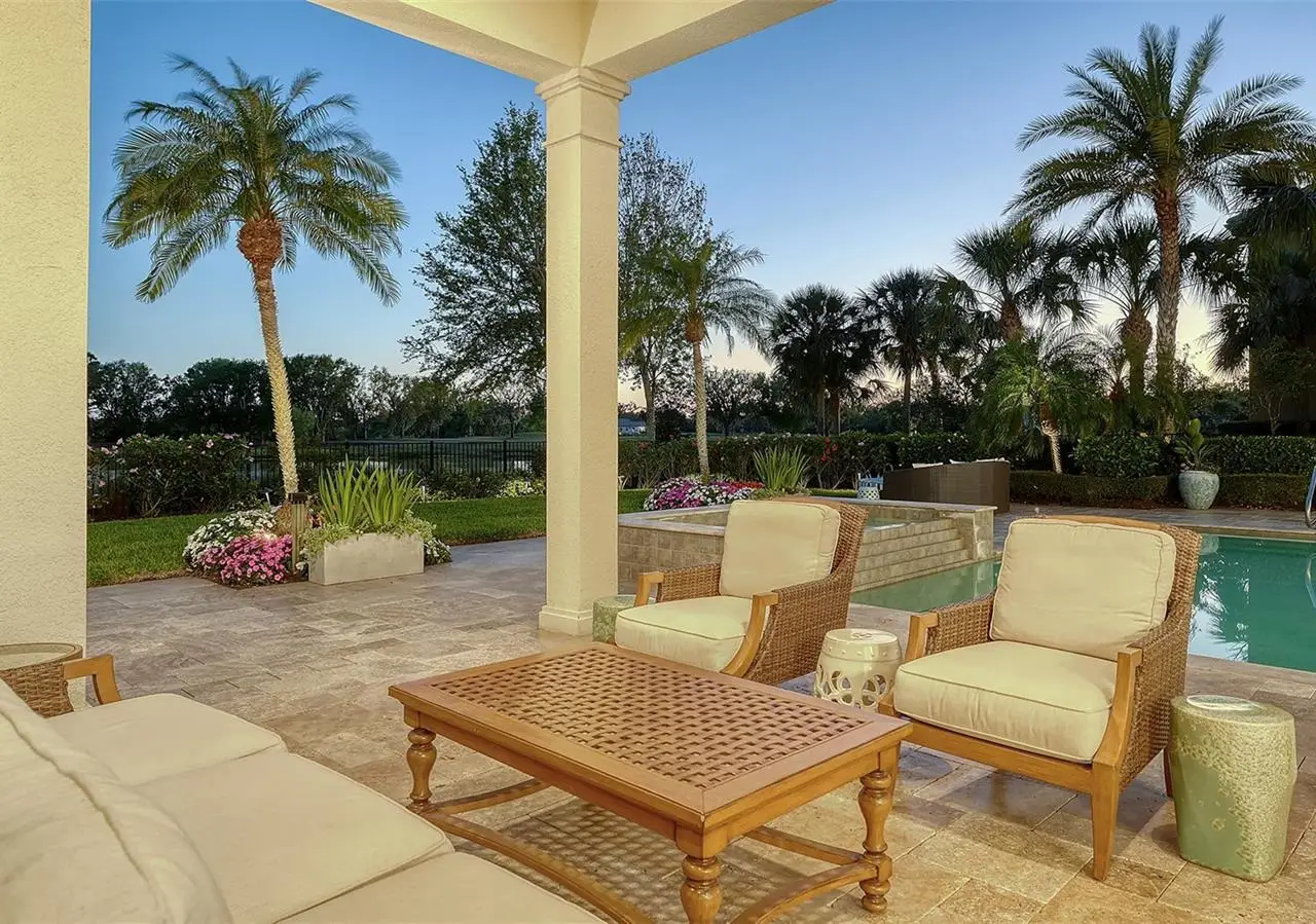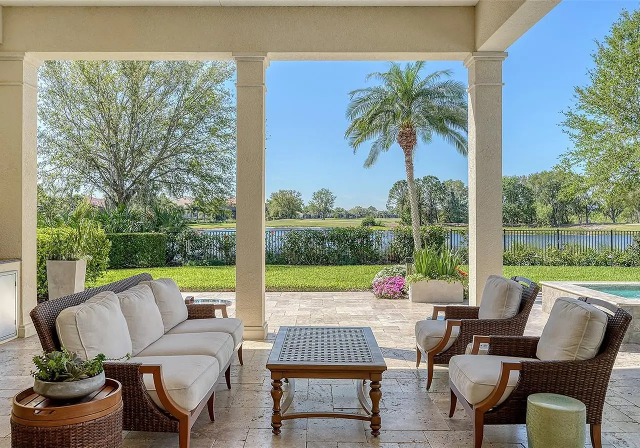 Welcome to 3153 Founders Club Drive, a sophisticated home located in the Estate section of The Founders Club. Expertly updated and refreshed from top to bottom, this former London Bay model home has been stunningly transformed into a spa-like retreat. With southern exposure overlooking a pristine lake and meticulously maintained golf course, this residence blends timeless elegance with luxurious finishes not often found in today's new homes. A generous single-story home with 4,364 square feet of air-conditioned space offering 4 bedrooms, 4 full baths, one half-bath, an office, a dedicated dining room, bonus room and 3 car motor court garage. Peace of Mind & Smart Living are top of mind with modern convenience and security features: A new Control4 lighting and sound system, whole-house generator and a new Halo whole-house water purification system let you focus on your luxury lifestyle. The grand courtyard entry with refreshed landscaping and inviting lighting set the stage as you pass through massive iron and glass double doors, revealing a home rich in intricate details. Crown moldings, cased doorways, cased windowsills, and 8-inch baseboards meet chiseled travertine flooring, blending classic aesthetics with contemporary refinement. Every wall and piece of trim has been freshly painted, while statement walls and ceilings have been added with stunning wallpaper, tongue-and-groove wood, and mercury glass accents. The modern chef’s kitchen is a true masterpiece, featuring: Cambria quartz countertops, Calcutta gold backsplash, Cabinet-finished Monogram appliances and a spacious walk-in pantry. Custom touches continue with remote-controlled shades and a designer-inspired built-in banquette with a custom-crafted wood table in the breakfast area. The family room is a showcase of expert craftsmanship, with its coffered ceiling and a 10-foot disappearing corner slider, seamlessly blending indoor and outdoor living. In the bonus room/billiard room, a custom bench and shiplap feature walls add warmth and character, making it the perfect space for relaxation and entertainment. A lavish primary suite spans an entire wing creating a private retreat featuring: a large walk-in closet, freestanding soaking tub, huge walk-in shower with a rain head, double vanities with a makeup area and quartz countertops, a private water closet and quiet sitting area overlook the lush garden and pool area. The perfect space to unwind after a great day of golf. Looking for your place in the sun? Step outside to your stunning outdoor sanctuary, where two covered lanais overlook an open-air resort-style pool with a raised spa with multiple fountains. The spacious main lanai (38 x 16 feet) features an outdoor kitchen with a grill hood, sink, and beverage cooler, remote retractable awnings provide shade when needed at the veranda and newly refreshed landscape showers the backyard with florals enhancing the beauty of this ½-acre lakefront lot. The Founders Club residents enjoy tennis courts, a sport court, recreation center and playground at the front of the property. Membership in the Club is optional but inviting with an abundance of social activities. An unparalleled location, the prestigious Founders Club, is situated minutes from Waterside At Lakewood Ranch, a few miles from University Town Center, a short drive to downtown and our award-winning beaches. This exceptional home perfectly balances luxury, comfort, and modern sophistication.