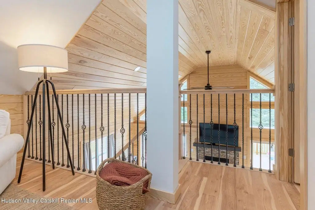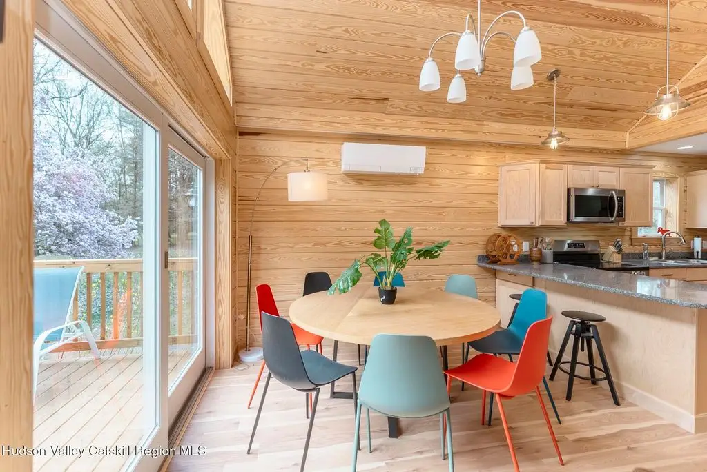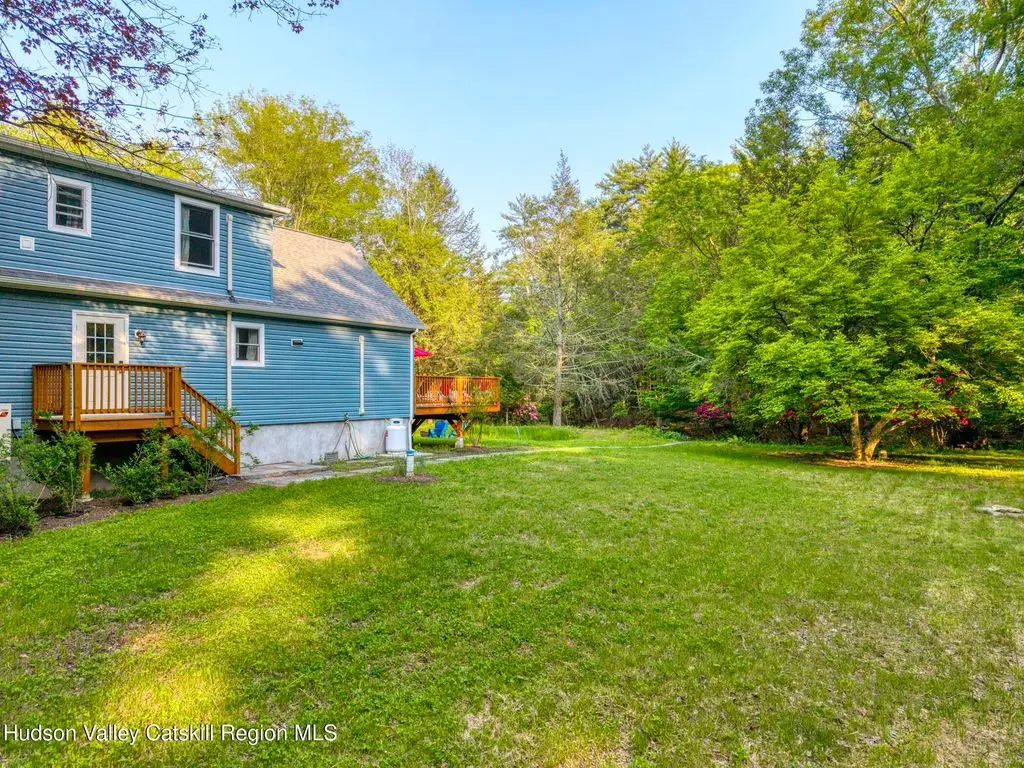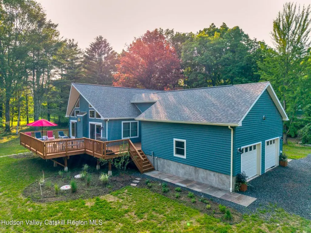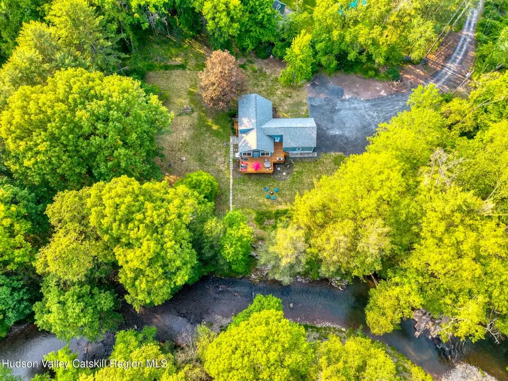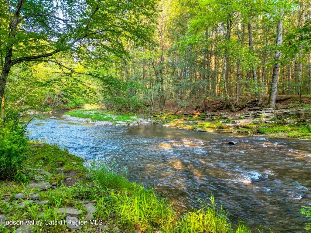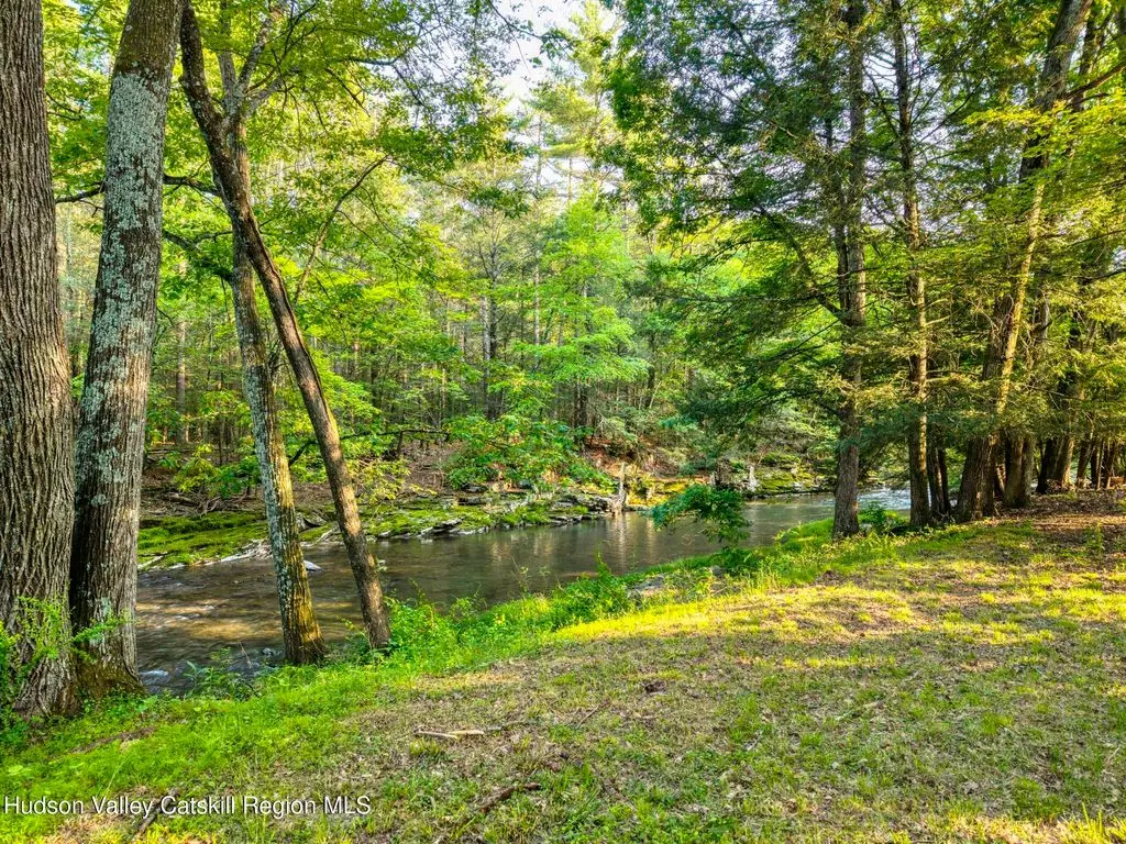 Discover modern living at its finest with this newly built contemporary home, perfectly nestled on 2 private acres along the enchanting Sawkill Creek in Woodstock. Designed with both style and practicality in mind, this property seamlessly blends sleek modern amenities with the natural beauty of its surroundings. Built above the floodplain in accordance with FEMA standards, the home offers peace of mind alongside its luxurious features. Inside, the open-concept design is bathed in natural light, with a gas fireplace anchoring the main living area. The gourmet kitchen, perfect for entertaining, flows effortlessly into the dining and living spaces, with access to a spacious back deck overlooking the serene landscape. The home boasts not one, but two primary suites, each offering spa-like bathrooms and providing comfort and privacy for owners and guests alike. Bluestone walkways and the oversized garage add to the home's thoughtful design and functionality, while town sewer connections ensure modern convenience. Step outside to your own private paradise, where the majestic Sawkill Creek offers not one, but two exceptional swimming holes, including the renowned ''BIG DEEP'' swimming hole just a minutes walk away. Whether you're hoping in for a refreshing swim or relaxing by the water's edge, this property offers an unparalleled connection to nature. A rare gem in the heart of Woodstock, this property is a perfect retreat for those seeking contemporary luxury with the charm of the Hudson Valley. Schedule your private showing today and experience this exceptional home firsthand! House was built per FEMA above flood plain.