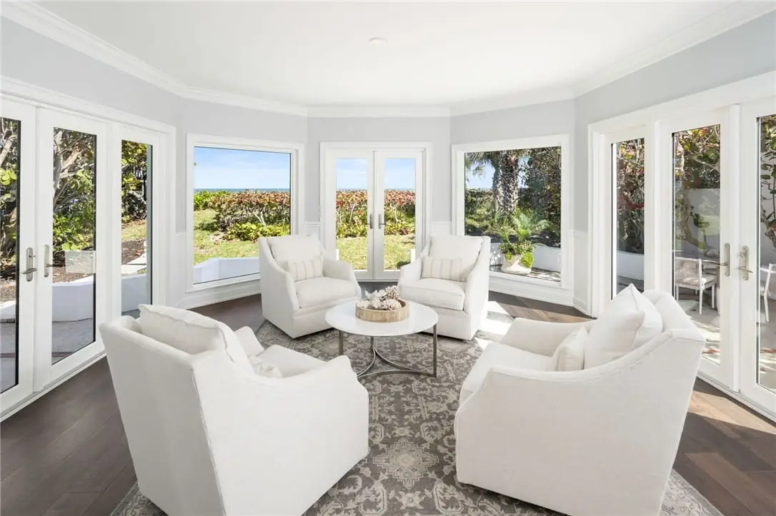 Experience direct oceanfront living at its best. Effective year built 1999. Completely remodeled home combines custom finishes with effortless comfort. The expansive primary suite offers panoramic ocean views, a private balcony, sitting area and walk-in closet. The gourmet kitchen features Thermador appliances, induction cooktop and a spacious island for cooking and entertaining. A fireplace adorned living room and light-filled sunroom flow to the oceanside patio just steps from the sand. Additional highlights include impact glass, 2-2023 air conditioners, water filtration system. Sizes approximate/subject to error.