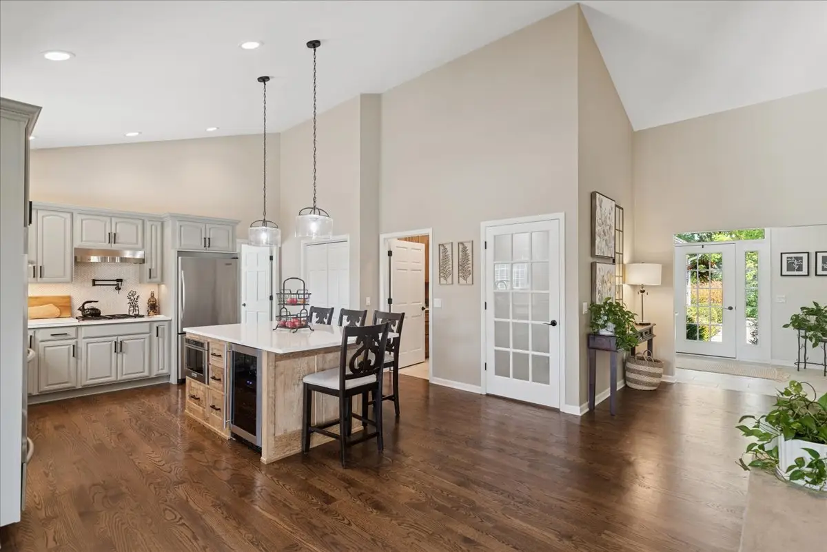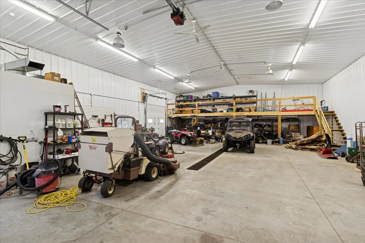 Absolutely stunning custom all brick ranch home with finished walk-out basement on 3.06 lush professionally landscaped grounds with native plantings. Home was completely remodeled in 2021 and initially inhabited 12/2021. An amazing 42x60 heated pole barn with concrete floor, 14' overhead door, mezzanine, and bath. 10 zone irrigation system, new composite deck 2022, new roof 2022, 4 season room, and stamped concrete screened in patio. Enter into the spacious foyer with custom cabinetry and porcelain flooring, professionally refinished chefs kitchen cabinets with custom maple island w/seating and quartz countertops. Shared floor 2 ceiling stone 2 sided gas fireplace between living room and kitchen. Vaulted or 9' ceilings thru out, custom mill work in family room, office, and primary bedroom, all new refinished or new hardwood flooring thru out. Open concept living with an abundance of natural light. Finished walkout basement offers a gaming area with wet bar, family room, exercise area, full bath and 3-4 person sauna, along with 2 additional bedrooms and 4 season sunroom with access to the screen patio. in 2022 a whole house back-up generator was added. A total of 5 bedrooms, 3 1/2 baths and 5744 finished sq ft of living space. 4 brick solar lighted pillars guide you through the 2 entrances and circular driveway. A truly amazing, move in ready home.