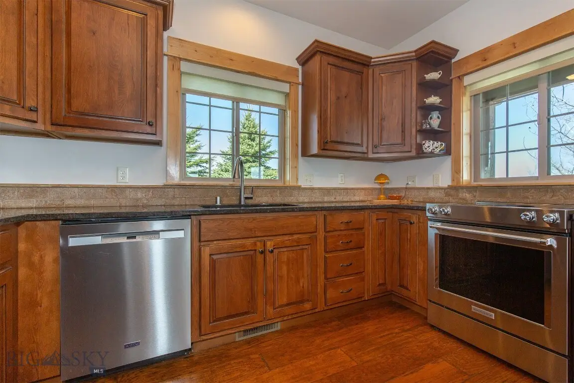 Welcome to 423 Parklands, a Middle Creek stunner: Step onto the welcoming wrap-around porch and imagine your mornings here, taking in breathtaking views. This masterfully designed 4-bedroom sanctuary seamlessly blends indoor comfort with outdoor living, capturing the essence of Montana living. The heart of this home showcases soaring vaulted ceilings that create an airy, expansive atmosphere, while rich Hickory hardwood floors flow throughout, adding warmth and character. The main-level master suite offers a private retreat, complete with an ensuite bathroom, providing the perfect balance of accessibility and seclusion. The kitchen features gleaming granite countertops and premium appliances, making entertaining a joy. A cozy gas fireplace serves as the perfect gathering spot during Montana's cooler months, while motorized blinds offer effortless light control throughout the day and the Central Air keeps those summer days nice and cool. Additional highlights include: 2 full and 2 half baths for ultimate convenience Generous bonus room for flexible living space Fresh, modern exterior with brand-new siding Strategic placement in Middle Creek Subdivision close to trails Easy access to the excellent Monforton School Hot and cold water spigot in the garage This thoughtfully designed home offers the perfect blend of functionality and elegance, ideal for both daily living and entertaining. The wrap-around porch serves as an extension of your living space, perfect for soaking in Montana's stunning seasonal changes. Make this slice of paradise yours in Middle Creek an oasis of tranquility within the booming Bozeman community.