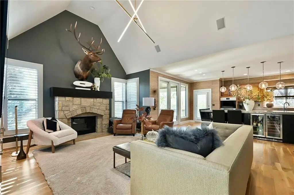 PHENOMENAL RESORT STYLE POOL and a BEAUTIFULLY UPDATED HOME together make this an incredible and rare find! This home has designer updates and lighting, newer main level wide plank wood flooring, updated kitchen with an oversized island, double ovens and updated paint and carpeting! The living spaces are bright and cozy, with main level office, entertaining space in the basement, basement bar and 5th non-conforming bedroom or flex room with full bath and steam shower. Lounge outdoors on the covered porch, and best of all...fall in LOVE with the absolutely STUNNING gunite saltwater pool and outdoor entertaining area! The cost to reproduce this backyard retreat is massive!. There is an amazing cabana with kitchenette, bathroom, and bar seating. The heated saltwater pool is surrounded by privacy trees with a hot tub. Gather around the built-in fire pit, or fire up the gas grill, this outdoor area is expansive and gorgeous! The pool was recently inspected and has been meticulously maintained. The expanded depth garage has epoxy floor, functional built-in cabinetry and work bench. The covered suspended porch offers additional storage underneath. All residing on a fantastic cul-de-sac lot in south Leawood's Hills of Iron Horse, adjoining to a golf course, just minutes from restaurants, coffee shops, Blu Hawk and Prairie Fire shopping, and in a nationally ranked school district! Up to $10,000 buyer closing credit offered by preferred lender!