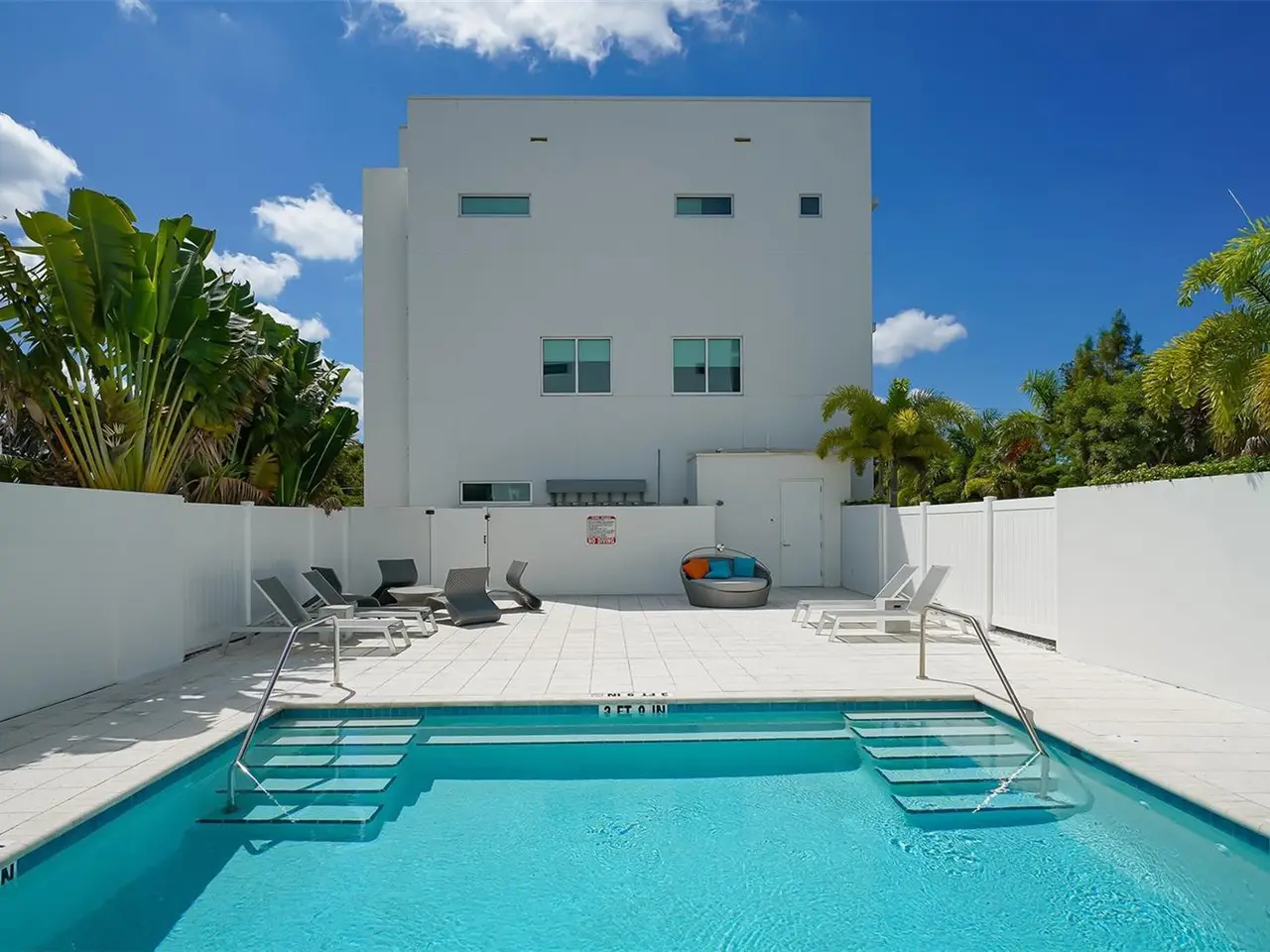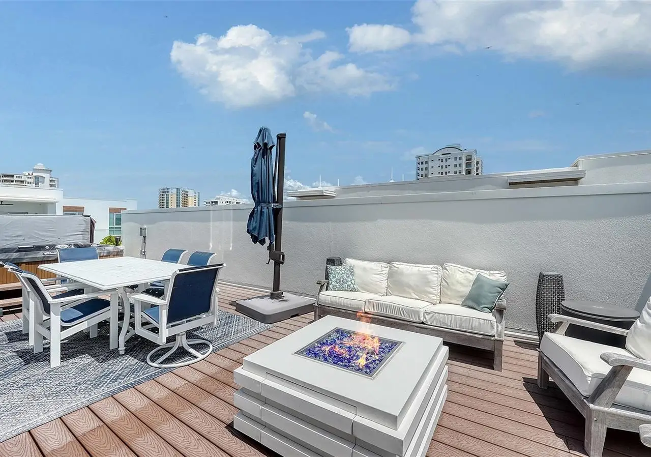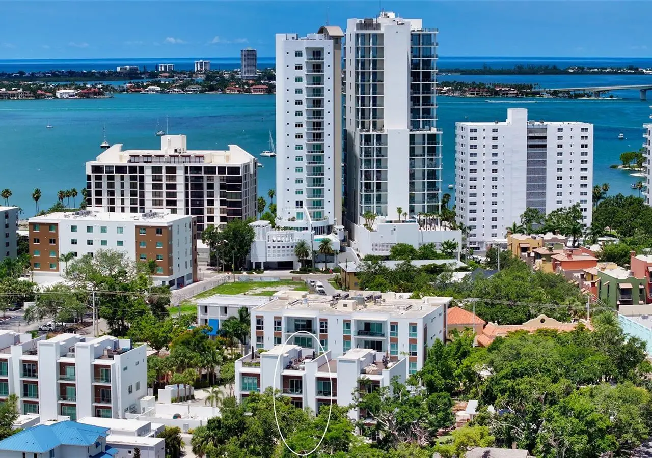 Sophisticated urban living awaits in this refined three-story townhouse with a PRIVATE ELEVATOR and expansive ROOFTOP DECK, located in the exclusive Townhomes of Orange Club in downtown Sarasota. Just steps from the historic Burns Court district and the city's vibrant Bayfront, this stylish residence offers 2,300 SF of thoughtfully designed living space, including 3 bedrooms each with their own ensuite bathroom. The private rooftop deck is a true sanctuary featuring a jacuzzi hot tub, outdoor kitchen, privacy wall, and 608 SF of additional outdoor living space - perfect for relaxing or entertaining under the stars, all with captivating city views. Designer finishes throughout, soaring 10-ft smooth-finish ceilings, Low-E impact windows and doors, contemporary baseboards and casings all enhance the home's clean aesthetic. A private two-car garage opens to a welcoming foyer and a guest bedroom with ensuite bath on the first level. The second floor is designed for effortless entertaining, with an open-concept great room, east- and west-facing balconies with frameless glass railings for unobstructed views, powder room, and a gourmet kitchen featuring imported Italian cabinetry, quartz countertops, and Jenn-Air stainless steel appliances, including a six-burner gas range. Upstairs, the third floor hosts a serene primary suite and a spacious second bedroom, both with ensuite baths and private balconies. A laundry closet with full-size washer and dryer adds convenience. Residents of Orange Club enjoy a secure, upscale community with surveillance cameras, a heated pool, and a sun lounge area. Located in the heart of Sarasota, you're just moments from the city's best, including a thriving arts and culture scene, award-winning dining, boutiques, nightlife, farmers market, and year-round festivals. This is downtown Sarasota living at its finest.