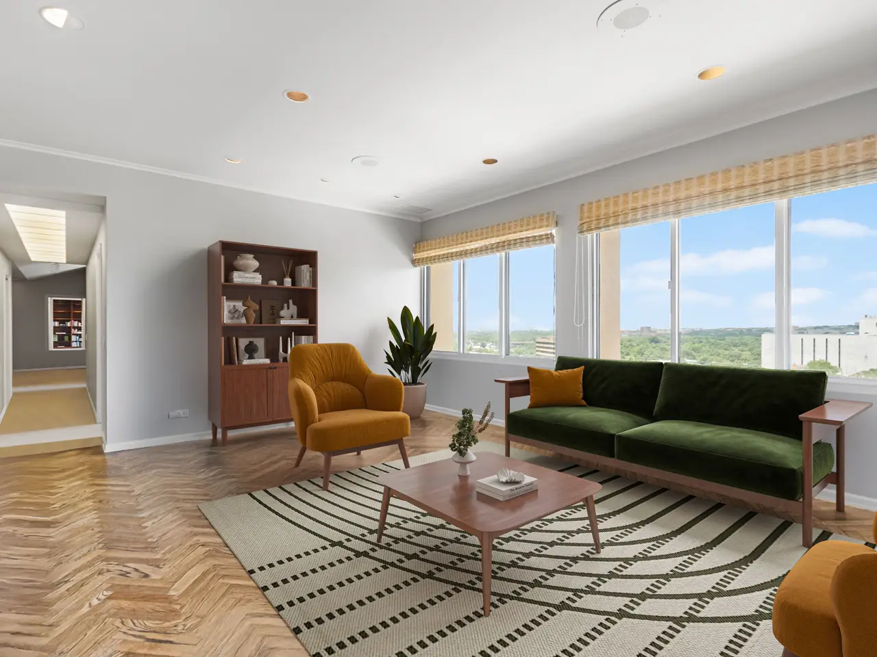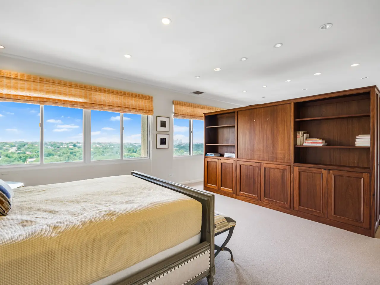 Perched high above the vibrant heart of Alamo Heights in San Antonio, this luxury high-rise condo offers a blend of modern sophistication, breathtaking views, and unmatched convenience. Step inside and you're greeted with floor-to-ceiling windows that flood the space with natural light and great views of the San Antonio Country Club golf course. The living space features sleek hardwood floors, cozy spaces, and incredible floor plan to take in the views from every room. The kitchen has a functional layout right off the main living room to make it easy for entertaining. The master suite is a tranquil retreat with a large walk-in closet, and a spa-inspired bathroom and a spacious sitting room. 3 generous size bedrooms with built-in cabinets, custom closets, bookcases and storage. This condo is just a walk across the street to the San Antonio Country Club and quick access to city life.