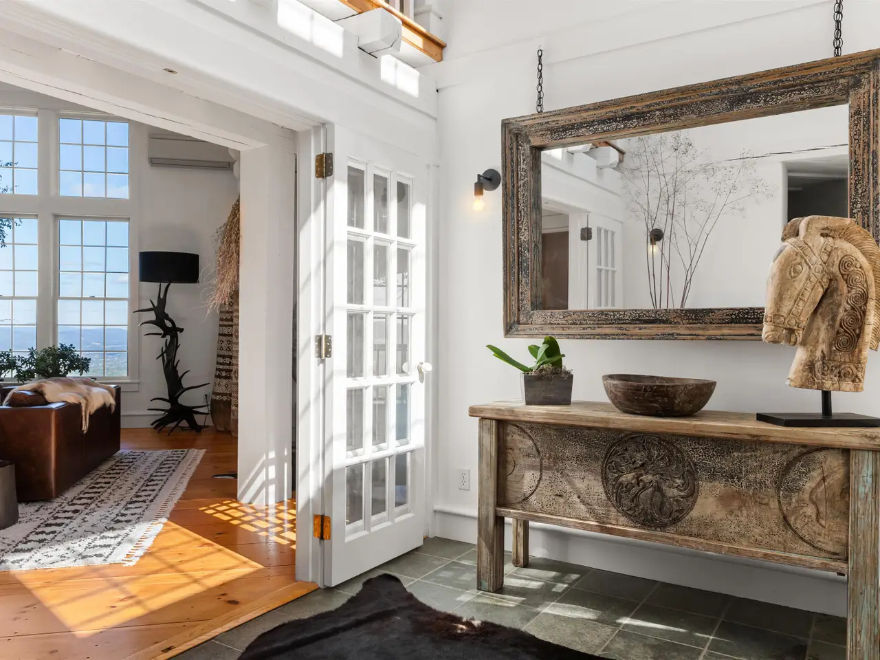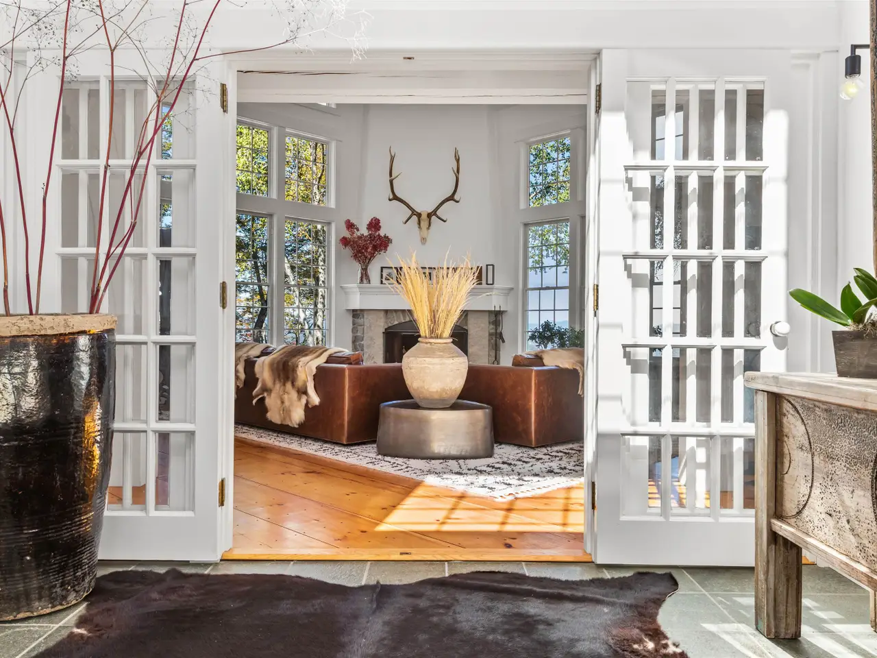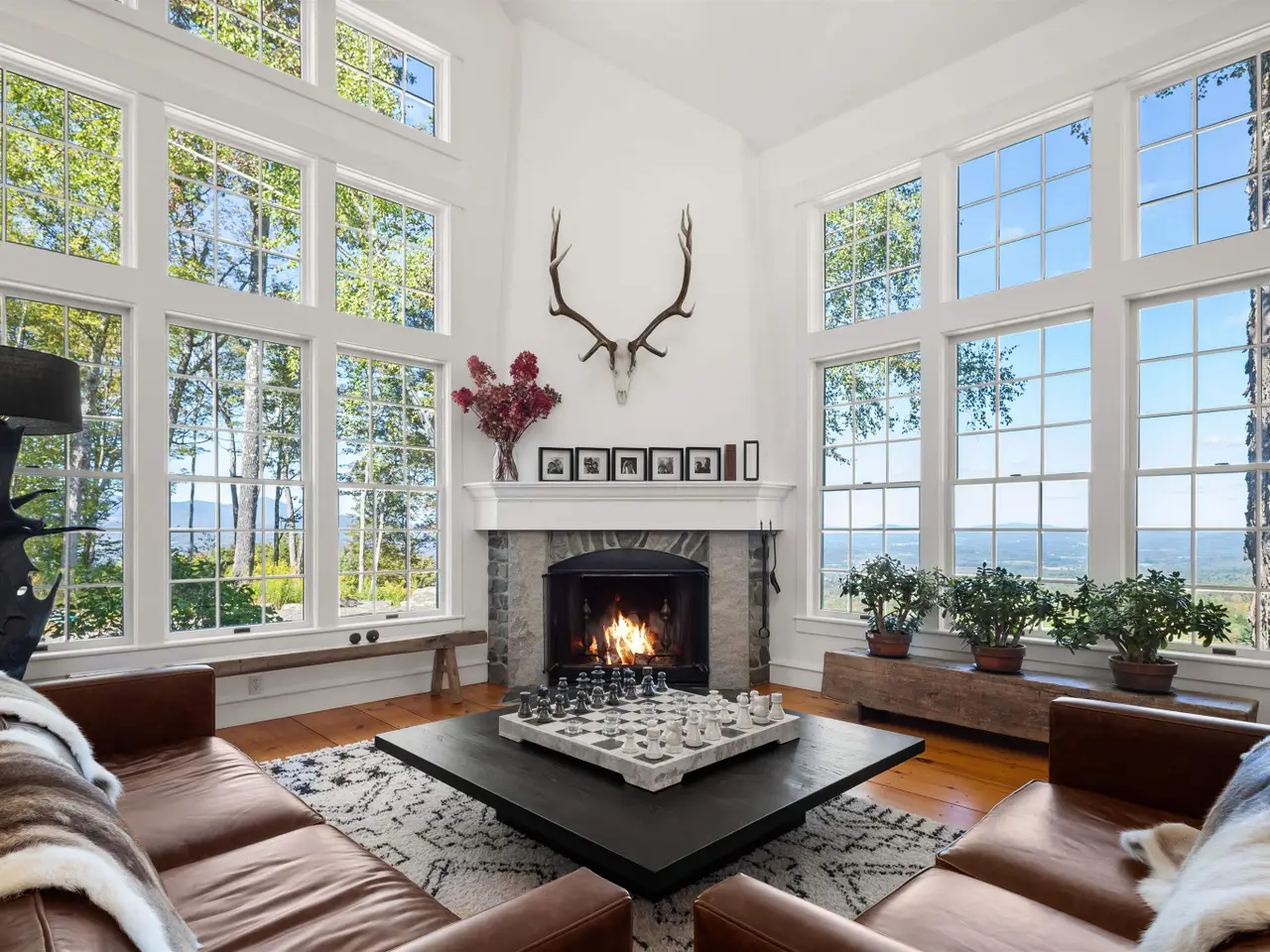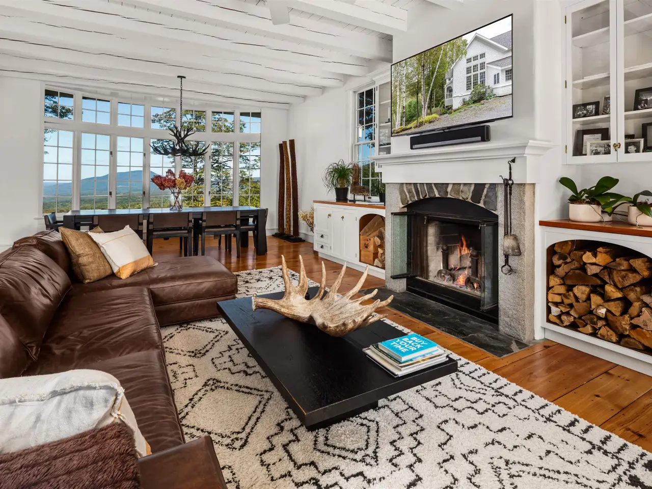 Perched at the very crest of one of Stowe’s most prestigious private roads, this classic New England retreat claims the last word in privacy and panoramic majesty. From its elevated vantage, the home gazes across sweeping views of Vermont’s Green Mountains—where mornings often unfold above the clouds, valleys draped in rising mist, and evenings dissolve into sunsets that paint the ridgelines in gold. Wrapped in timeless white cedar shingles with wide verandas that invite one to live slowly, the residence is as much a lifestyle as it is a home. Inside, wide-plank pine floors anchor airy rooms dressed in alpine-chic décor, a blend of warmth and refinement. Every season is a spectacle here: gardens lush and abundant in spring and summer, a symphony of crimson and gold in autumn, and a dreamscape of glittering snow come winter. Life at the summit feels like a private world of its own, yet the vibrant village of Stowe—celebrated as one of the best places on earth to live—is just minutes away. Whether envisioned as an extraordinary weekend escape or a full-time family haven, this property offers a front-row seat to the slow poetry of the seasons and the enduring charm of New England’s mountain life.