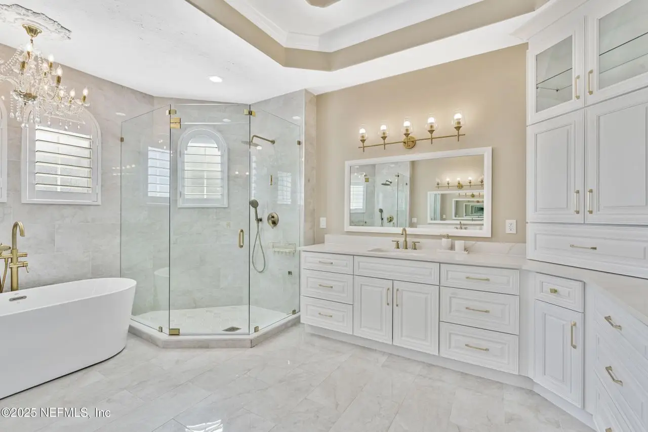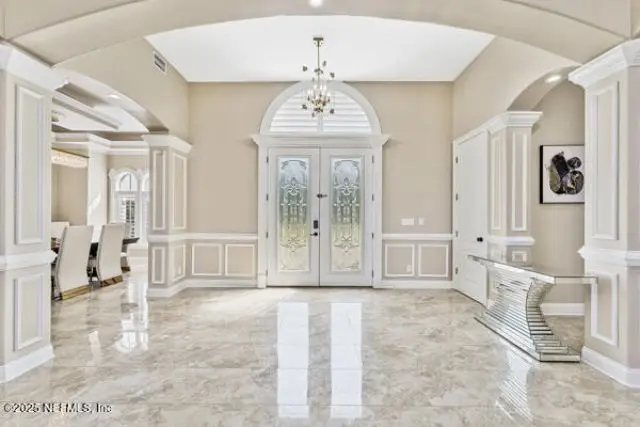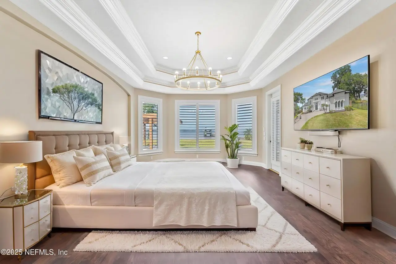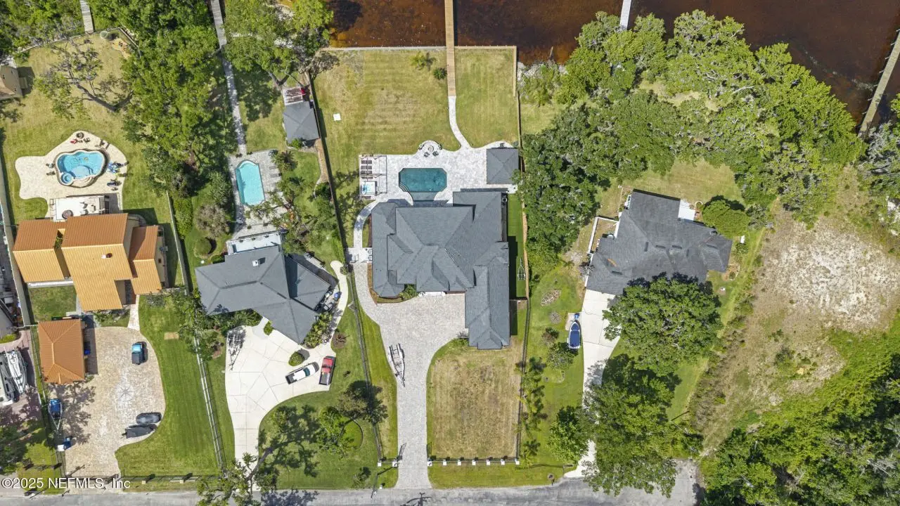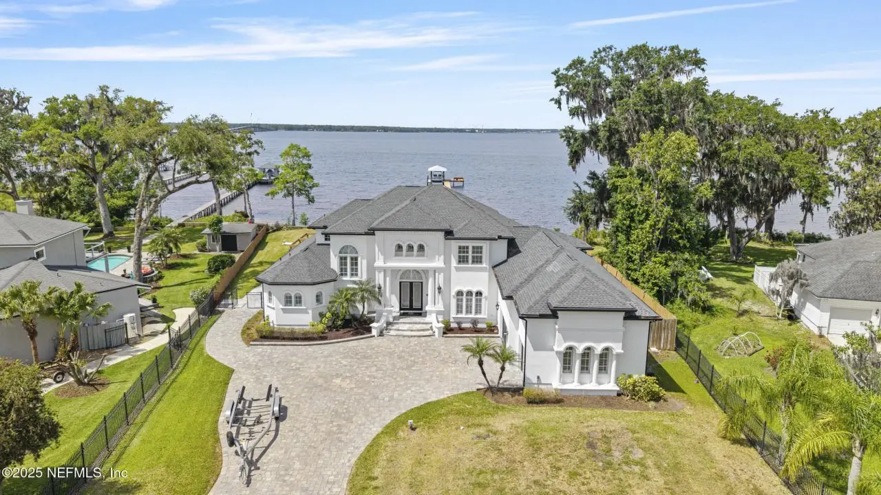 Welcome to an extraordinary riverfront sanctuary, where modern sophistication meets serene elegance. This exquisite residence is a masterpiece of contemporary design, offering panoramic vistas of the river from every angle. The meticulously landscaped grounds are complemented by a stunning array of outdoor amenities, including a sparkling pool, a rejuvenating hot tub, a fully equipped outdoor kitchen, screened patios, a cozy firepit, an outdoor shower, and a private boat dock-perfectly tailored for the ultimate in waterfront entertainment and relaxation. Step inside to experience a refined, sleek interior that exemplifies the pinnacle of luxury living.