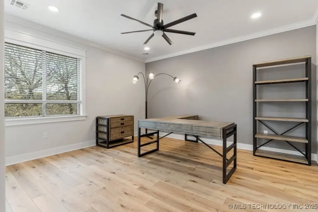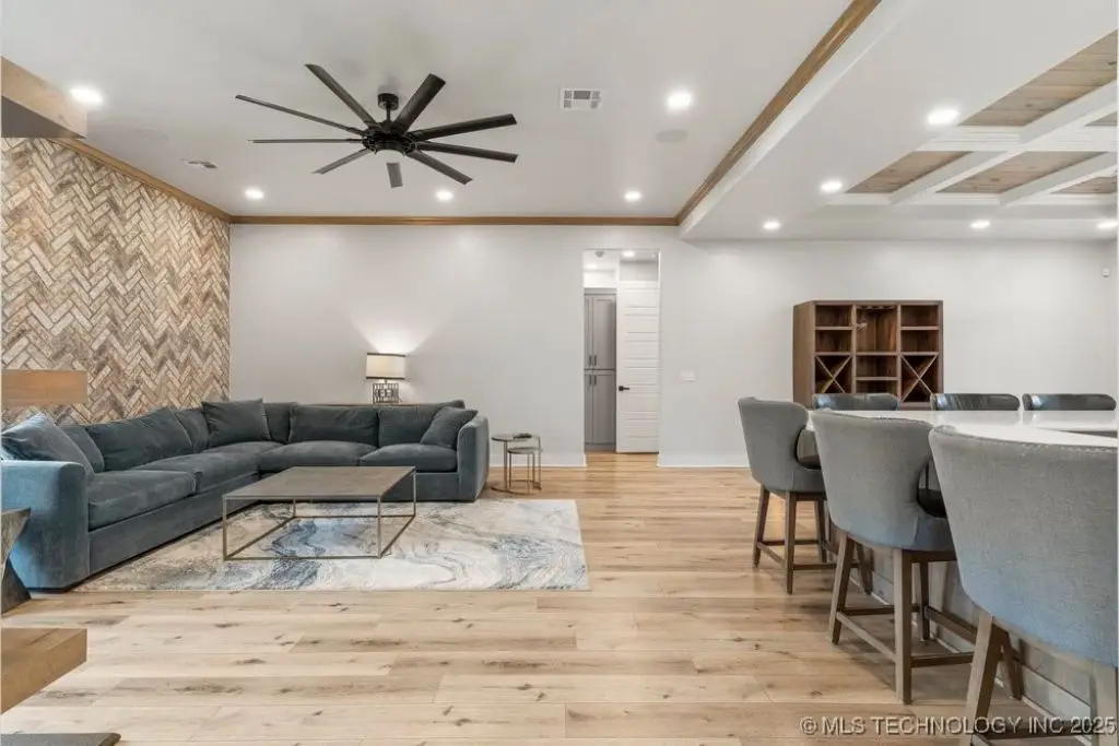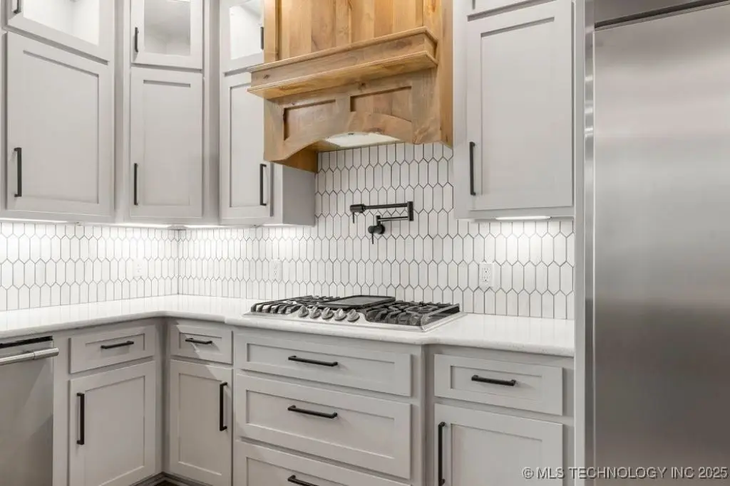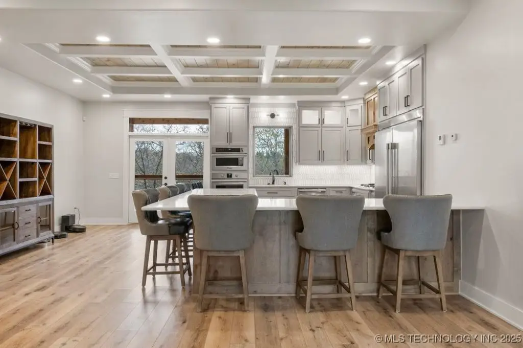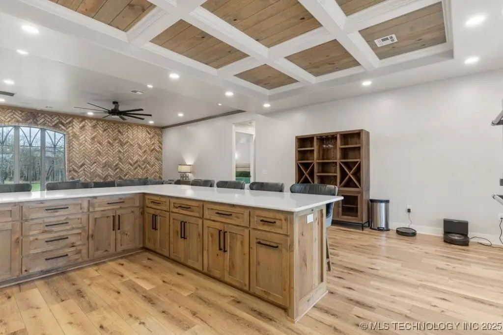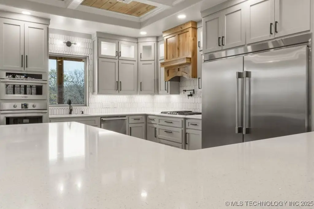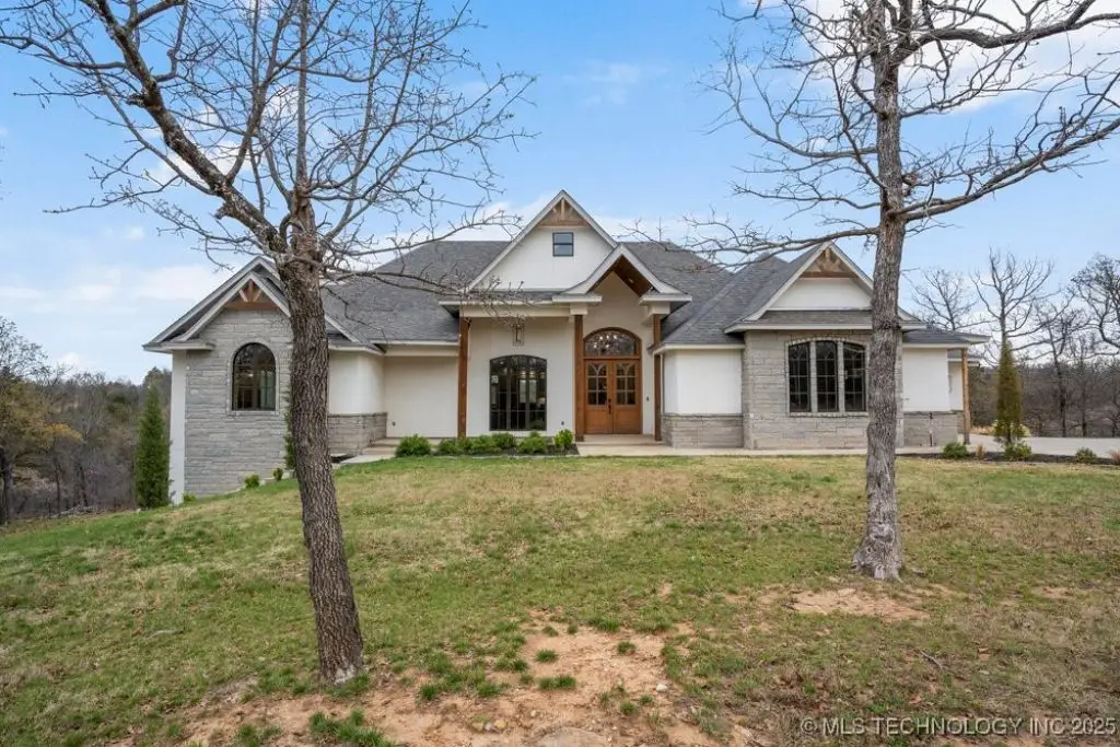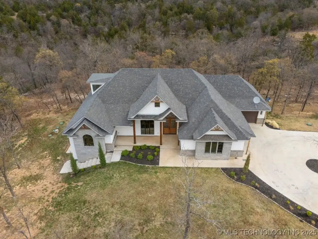 Envision a luxurious home that seamlessly integrates comfort and elegance, with cathedral ceilings and beautiful windows that create a bright and airy atmosphere. The home features gorgeous wood floors throughout. A striking brick wall in the living area, entryway and master bedroom creates a lasting impression. The kitchen is appointed with custom built-in cabinets, soft-close drawers and professional-grade appliances. A spacious quartz island provides the perfect setting for food preparation while socializing with guests. An adjacent outside bar area offers additional opportunities for entertainment. The expansive master bedroom boasts a cozy fireplace. The master bathroom is a serene retreat, complete with a large walk-in closet and a built in safe. It isn't until you walk downstairs that you see all the square feet this home truly has. Downstairs features additional living space, four bedrooms and two bathrooms. A kitchenette, safe room, and utility room with a dog wash/grooming station are also included. There are two laundry rooms, one upstairs and one downstairs with plenty of storage and space. The residence features instant hot water system, built in de-humidifier, electronic air filters, surround sound and security cameras. The three-vehicle garage is insulated, as is the attic. Upon stepping outside, you can take pleasure in the 7.1 m/l acres and the fenced, raised garden beds ideal for gardening. This property is conveniently situated between Tulsa and Stillwater. This exceptional residence offers numerous details that warrant a personal viewing.