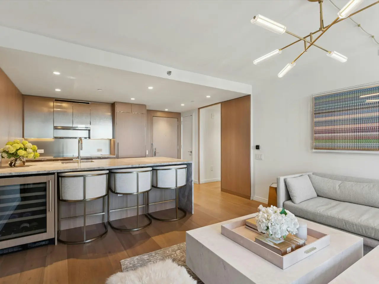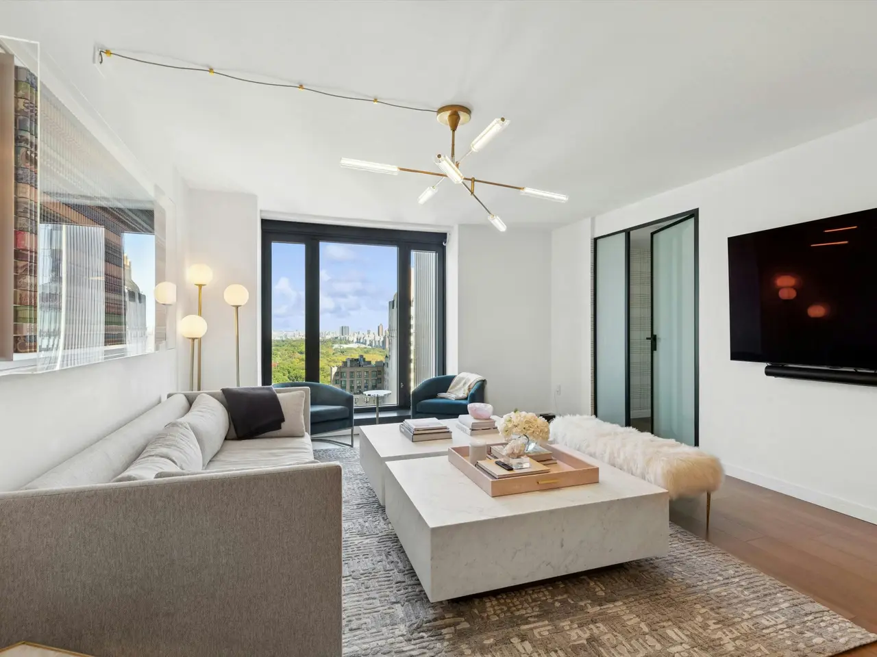 Discover this exquisite, fully furnished 1,181 square foot, two-bedroom, two-and-a-half-bath residence crafted by the acclaimed Thomas Juul-Hansen. This sophisticated home offers an open-concept design with floor-to-ceiling windows that frame iconic views of Central Park, epitomizing luxury in the heart of Manhattan. Upon entry through a custom-designed European oak door, you are greeted by a culinary masterpiece featuring super-white quartzite countertops and island, a bronze and tinted mirror glass backsplash, and custom white oak cabinetry with a matte lacquer finish and fluted mirror accents. The kitchen is equipped with a premier Miele appliance suite-including a refrigerator, freezer, induction cooktop with fully vented hood, wall and speed ovens, and a dishwasher-completing this space with understated elegance. A sleek wine refrigerator and an undermounted Kraus sink with a bespoke chrome faucet enhance functionality and style. Flowing seamlessly from the kitchen, the luminous living and dining areas are adorned with refined detailing by Juul-Hansen and finished with exquisite 7" European oak flooring, creating a warm yet sophisticated ambiance. The primary suite offers a generous walk-in closet and a spa-inspired bathroom featuring Bianco Dolomiti Greek stone vanity and backsplash, Turkish Fiore di Bosco stone walls and flooring, and polished nickel Waterworks fixtures-courtesy of pure luxury and thoughtful craftsmanship. The second bathroom showcases Turkish Cristalo Pearl walls, Giselle Gray Turkish stone vanity and flooring, and polished nickel fixtures. The powder room is a statement of opulence, highlighted by a Michelangelo marble sink with black and gold accents, complemented by stone surrounds, flooring, and polished nickel fixtures. Every residence is thoughtfully appointed with a Miele washer and ventless dryer, as well as a state-of-the-art 4-pipe fan coil HVAC system offering zoned climate control-ensuring comfort and convenience throughout the year. Located at ONE11 Residences within Thompson Central Park, this exceptional property embodies the quintessential Manhattan lifestyle-blending elegant design with vibrant city living. Nestled atop the prestigious Thompson Central Park hotel, the building comprises 99 exclusive one and two-bedroom residences and penthouses. Residents enjoy an array of premier amenities, including a 24-hour attended lobby with high-end dining options and a sophisticated full-service bar, private lounge, state-of-the-art fitness center, private storage, and privileged access to Thompson's world-renowned concierge and lifestyle services-an unparalleled sanctuary of luxury in the city's most coveted address.