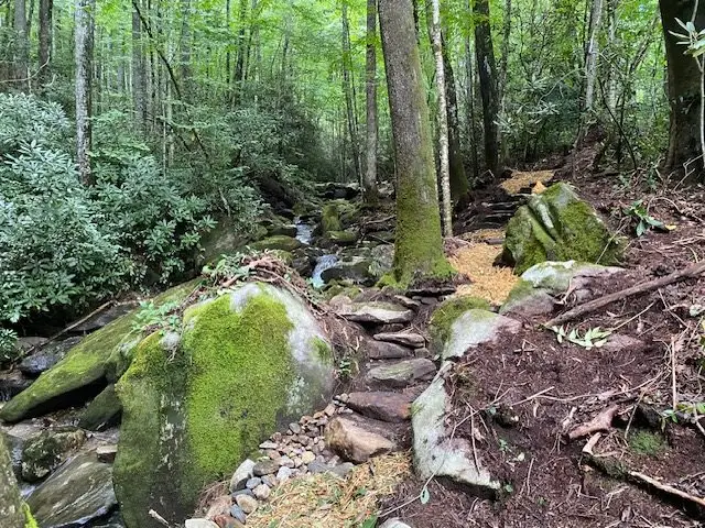 Nestled in the captivating valley between The Divide and The Crest, this unique 67.92 acre property offers a harmonious blend of serenity, adventure, and beauty. Less than half a mile from Panthertown Valley, hidden just off West Christy Trail in Sapphire Valley, this breathtaking estate extends a warm invitation to those seeking both peace and excitement. The heart of the property features a beautiful one-room furnished cabin, elegantly appointed and ready for immediate relaxation. Nearby, camping shelters with fire pits and manicured hiking trails provide ample opportunities for exploration and enjoyment of the outdoors. A defining feature of this estate is the 1700-foot bold cascading stream that runs the length of the property, surrounded by an enchanted forest adorned with a beautiful fern floor. Dramatic views of the rock face are visible from various vantage points, enhancing the already stunning natural surroundings. For the explorative soul, a Boulder Garden awaits your discovery, and a well-located picnic pavilion with a fire pit at the base of the stream trail serves as an ideal spot for gathering with family and friends. Nature enthusiasts will appreciate the property's commitment to conservation, as a portion of the land is protected by a conservation easement. This crucial element ensures the future of several endangered species of amphibians and plants, aligning perfectly with the area's abundant wildlife. Optional membership provides the ability to join Sapphire Valley amenities, enhancing the living experience with additional leisure options. Secluded, protected, and imbued with a peaceful ambiance, the moss-covered roads guide you through an environment that feels worlds away, yet is readily accessible. Whether envisioned as a perfect family estate or as a small six-home subdivision or company retreat, this property is ready to welcome its new steward. Embrace the possibility of living in harmony with nature.
