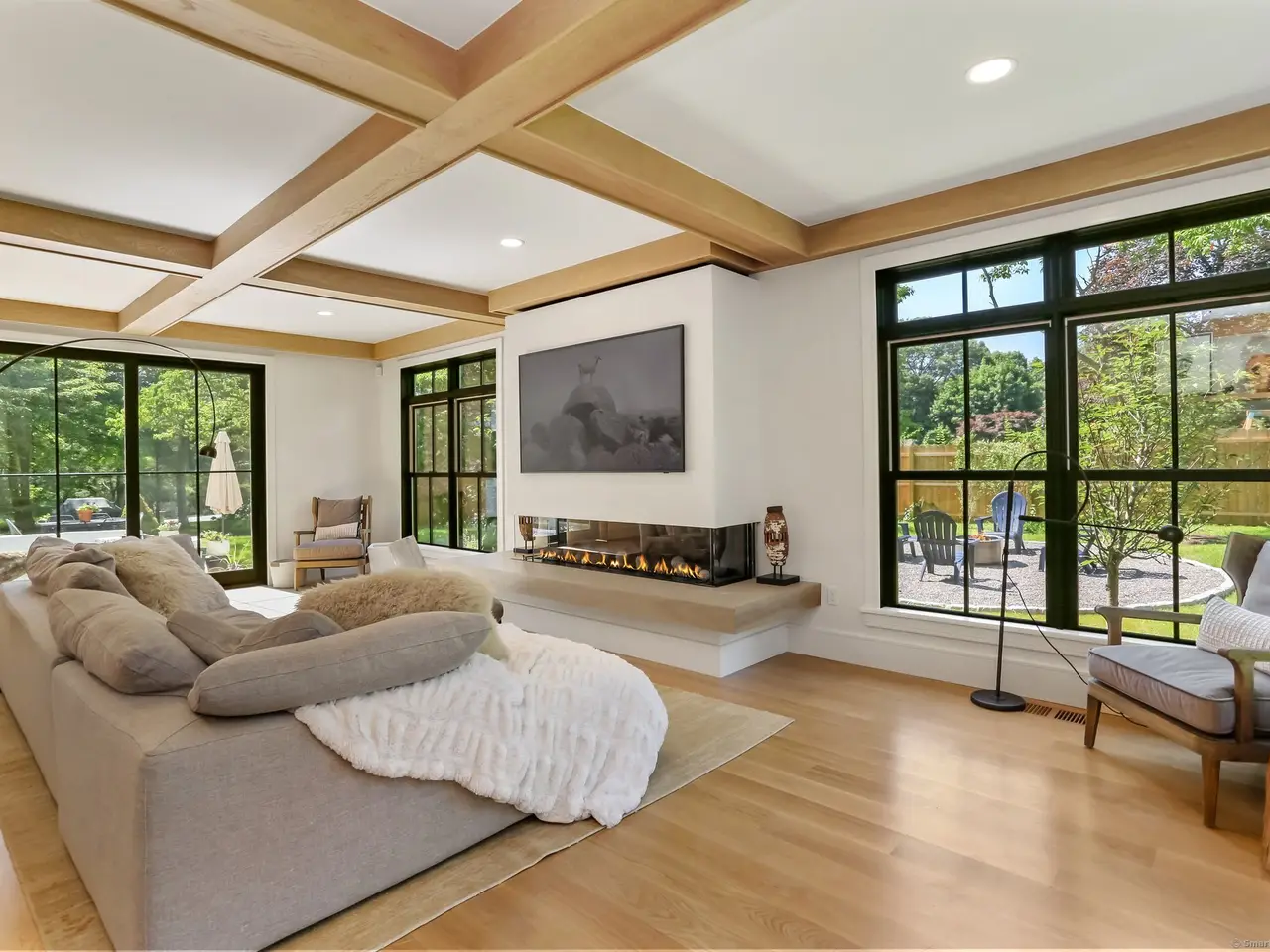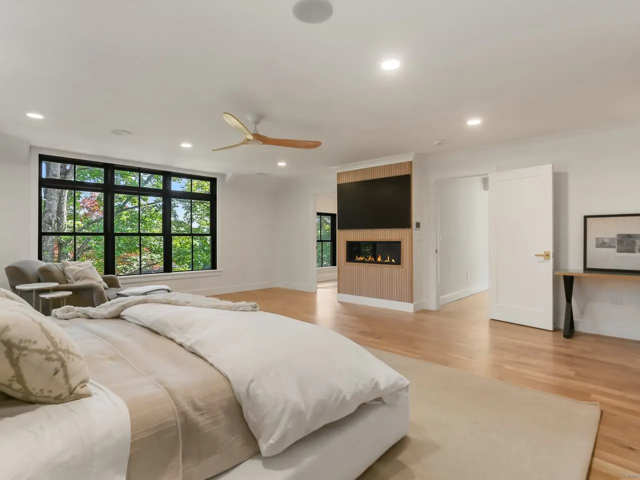Discover sophisticated modern luxury in the heart of New Canaan This stunning, newly constructed 6,500 square foot residence offers a unique blend of modern design, luxurious finishes, convenient location. Overlooking the iconic God's Acre church steeples, this exceptional home is the latest creation by a local designer renowned for crafting one meticulously curated project per year. Step inside and be captivated by dramatic, light-filled, open-concept living spaces, including a grand foyer featuring a 20-foot window entry and a striking iron staircase. Nine-foot ceilings, wide-plank white oak floors, special ceiling details, and expansive floor-to-ceiling Marvin windows amplify the sense of space and elegance. The show-stopping kitchen is a culinary masterpiece, boasting an oversized seating island, a built-in breakfast nook, and top-of-the-line stainless steel appliances. A convenient pantry and a spacious dining area provide the ideal setting for entertaining on a grand scale. The adjoining family room features a cozy fireplace and a custom wet bar with open shelving, creating a perfect space for relaxation or lively gatherings. French doors seamlessly connect to a large bluestone patio, extending the living space outdoors and offering a perfect setting for indoor-outdoor enjoyment. Exterior details-Manicured Grounds: The beautifully landscaped, level one-acre lot features manicured hedges and vibrant gardens. Outdoor Entertainment: Enjoy a large bluestone patio, a built-in fire pit lounge, and a identified future pool site. Expansive Lawn: A park-like lawn provides ample space for outdoor activities. Oversized Garage: The oversized three-car garage boasts high ceilings, perfect for car lifts and plentiful storage. Convenient Amenities: The property is connected to public water and sewer.Chef's Kitchen: The heart of the home boasts an oversized seating island, a built-in breakfast nook, top-of-the-line stainless steel appliances, a pantry, and a spacious dining area for grand entertaining. Cozy Family Room: Relax by the fireplace or entertain guests at the custom wet bar with open shelving. Flexible Living: A formal living room and a main-level office with a full bath offer the option for a convenient first-floor ensuite bedroom. Luxurious Owner's Suite: Escape to a private sanctuary featuring a fireplace, a dedicated office or sitting room, a spa-like marble bath with a soaking tub, and two generous fitted closets. Additional Bedrooms: The upper level includes five additional ensuite bedrooms and a spacious playroom or recreational area. Village Views: Enjoy the unique charm of seeing the village from your kitchen window. Close to Town: The location offers exceptional convenience to New Canaan's vibrant downtown, with its boutique shops, fine dining, and numerous parks and recreational opportunities. New Canaan is renowned for its top-rated schools and desirable community. This is not a typical spec house