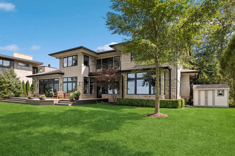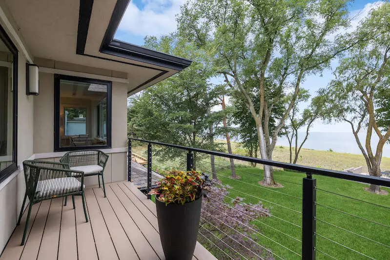 Perched along the shores of Lake Michigan within the exclusive Riviera Association, this 5-bed, 5.5 bath home epitomizes the elegance & timelessness of Lakefront contemporary architecture. Designed in 2013 by the renowned architects Perkins, Pryde & Kennedy & completed in 2015, this 5,000+ sq ft home masterfully represents a modified Prairie Style design full of modern luxury & stunning natural surroundings. Exquisite hardwood floors infuse warmth into every room. Expansive glass walls offer panoramic views of Lake Michigan, seamlessly connecting the indoor & outdoor spaces. The open and light-filled design allows residents to fully immerse themselves in the tranquil landscape. Featuring five spacious bedrooms and five and a half beautifully appointed baths. Each ensuite bedroom is thoughtfully designed to provide comfort & a sense of serenity. The living areas are characterized by their openness, flooded with natural light, and offering breathtaking vistas of the lake. Enjoy the all-level elevator for convenience; private lakefront office; lush green lawn with plenty of room for a pool; spacious decks; Elan Smart Home system; beach cabana for relaxing by the shore & easy access to the private association beach via a low bluff. For the discerning buyer who desires more than just a home, this work of art captures the essence of Lakefront Contemporary design while offering modern luxury.