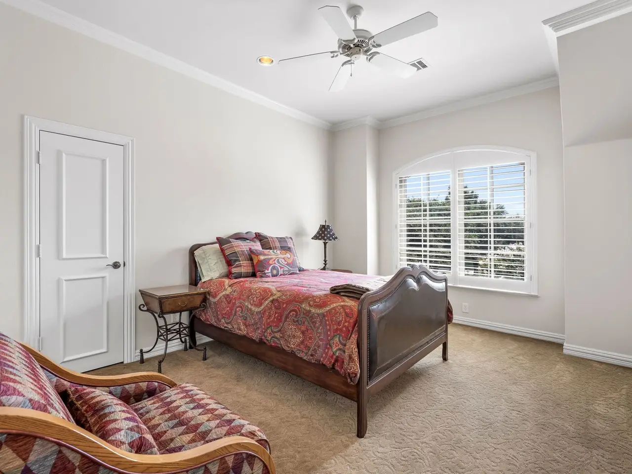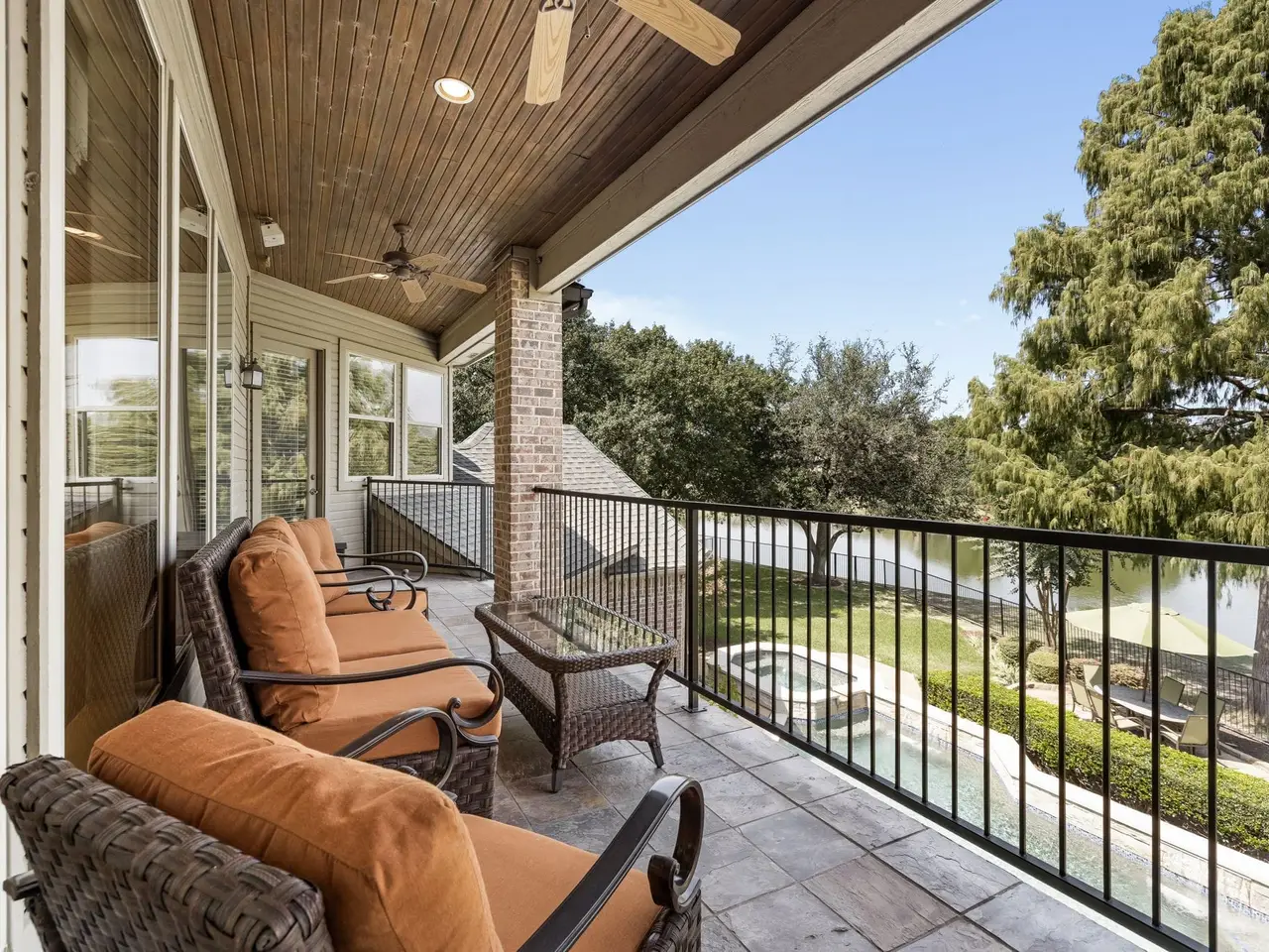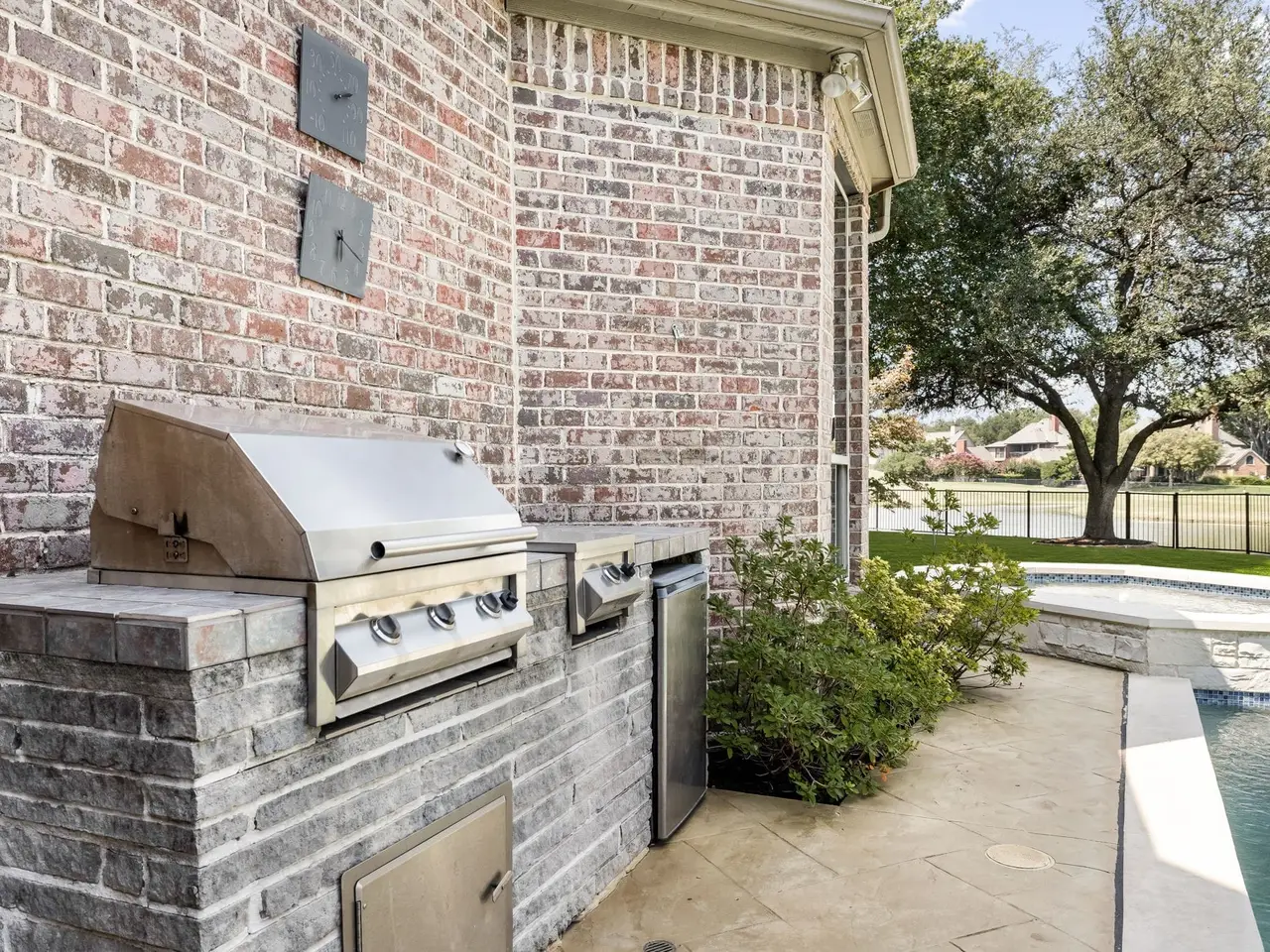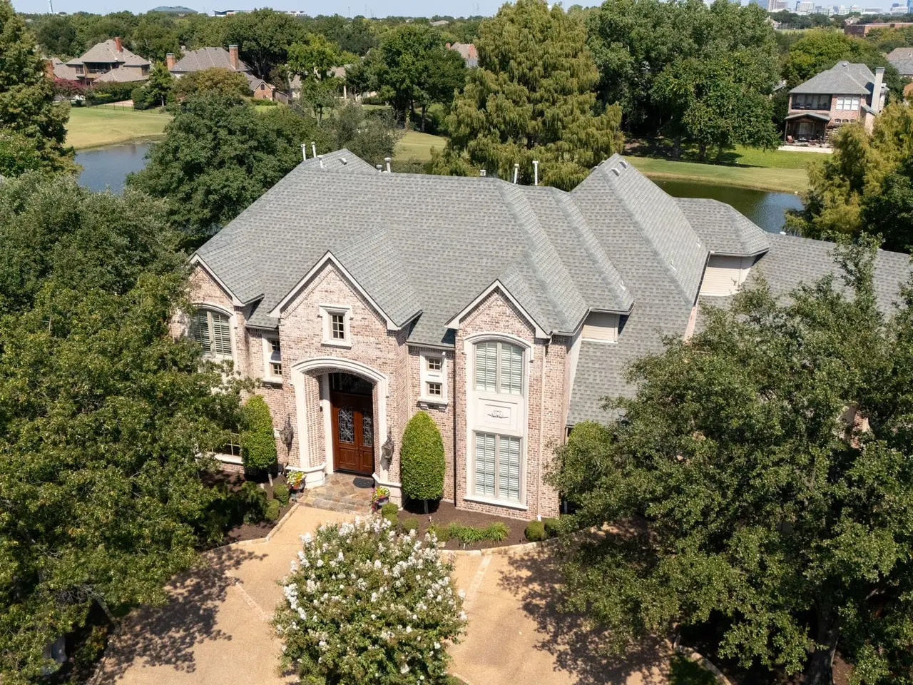 Nestled on a private cul-de-sac lot, this magnificent home offers a perfect balance of grand living and relaxed elegance, all set against the breathtaking backdrop of Gleneagles golf course and a tranquil lake. Your journey begins by stepping through custom leaded glass doors into a spectacular entry defined by a majestic double staircase and mosaic tile. Living room features a cathedral ceiling and stunning wall of windows that frame the golf course and sparkling pool. Its an ideal setting for both quiet evenings and grand celebrations. Automated Lutron shades and lighting throughout allow you to effortlessly set the perfect ambiance. Outside is your private outdoor oasis, where a sparkling pool and spa seem to merge with manicured greens. Built-in grill and refrigerator make al fresco dining a pleasure, while the expansive wrap-around lake view adds serenity. Gourmet kitchen is a chef's dream, featuring a large island, Sub-Zero refrigerator, Wolf commercial gas range, and dual convection ovens. Enjoy casual meals in the breakfast nook with a charming built-in banquette. Den provides a cozy retreat with its golf course views, while the elegant dining room, with its butler's pantry and chandelier, is ready for formal gatherings. Primary suite is a peaceful escape with a sitting area that overlooks the golf course. Spa-like primary bath elevates relaxation to an art form, featuring a spacious walk-in shower, a hydro-tub, and a see-through electric fireplace that connects to the bedroom. The custom closet is a room in itself, with a center island and built-in dressers topped with granite. Game and media room is the ultimate destination for fun, with bar, refrigerator, and attached arcade room. Study provides a perfect space for focus, complete with a wet bar and a wall of built-ins. Practicality is not forgotten, with a walk-in attic, large storage closet, front & back staircases, and safe room for peace of mind. Every detail of this home is designed to enrich your lifestyle.