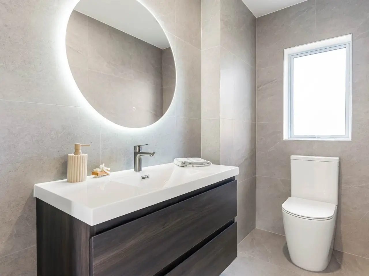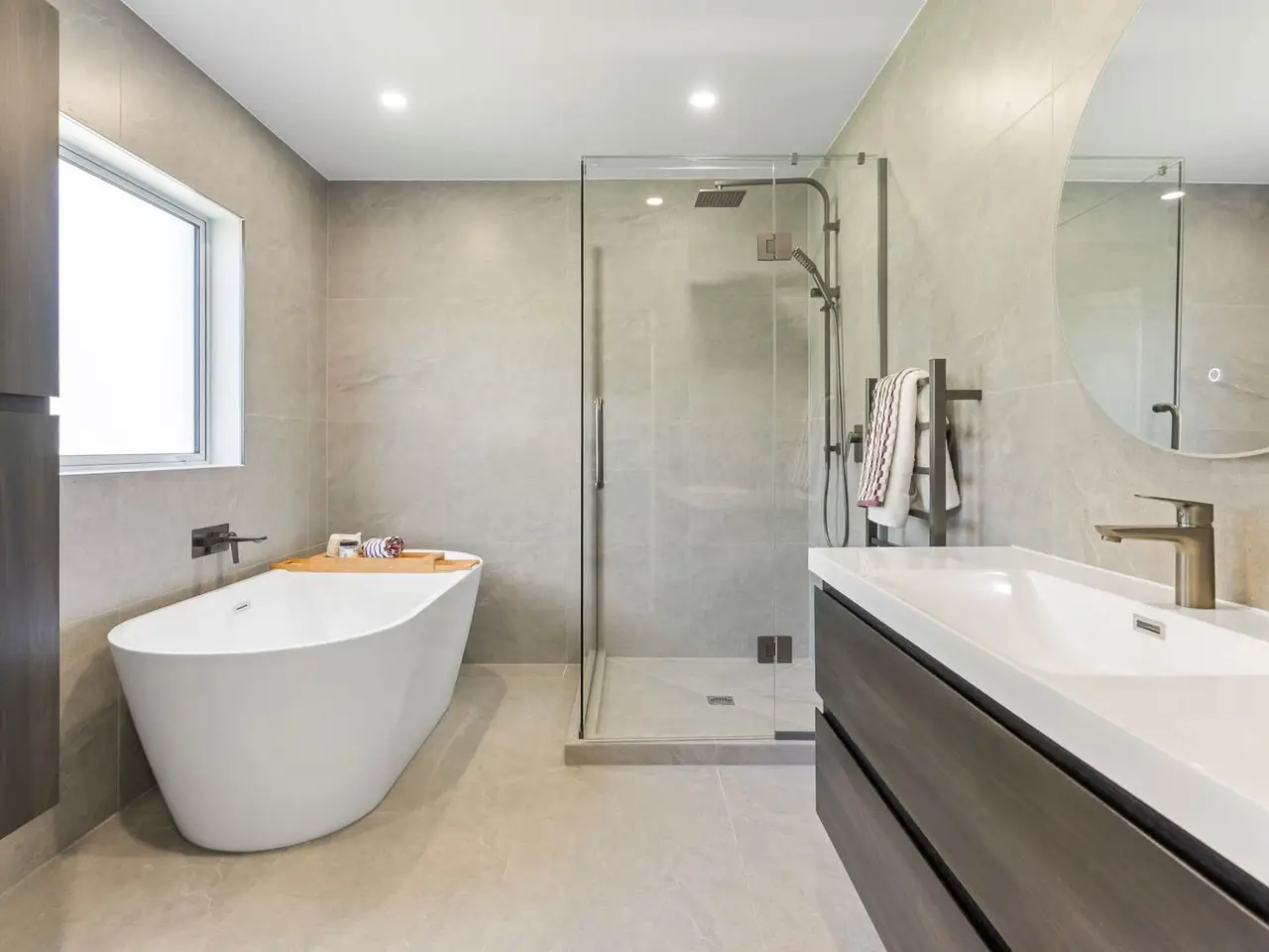 • Freestanding bath in generous bathroom