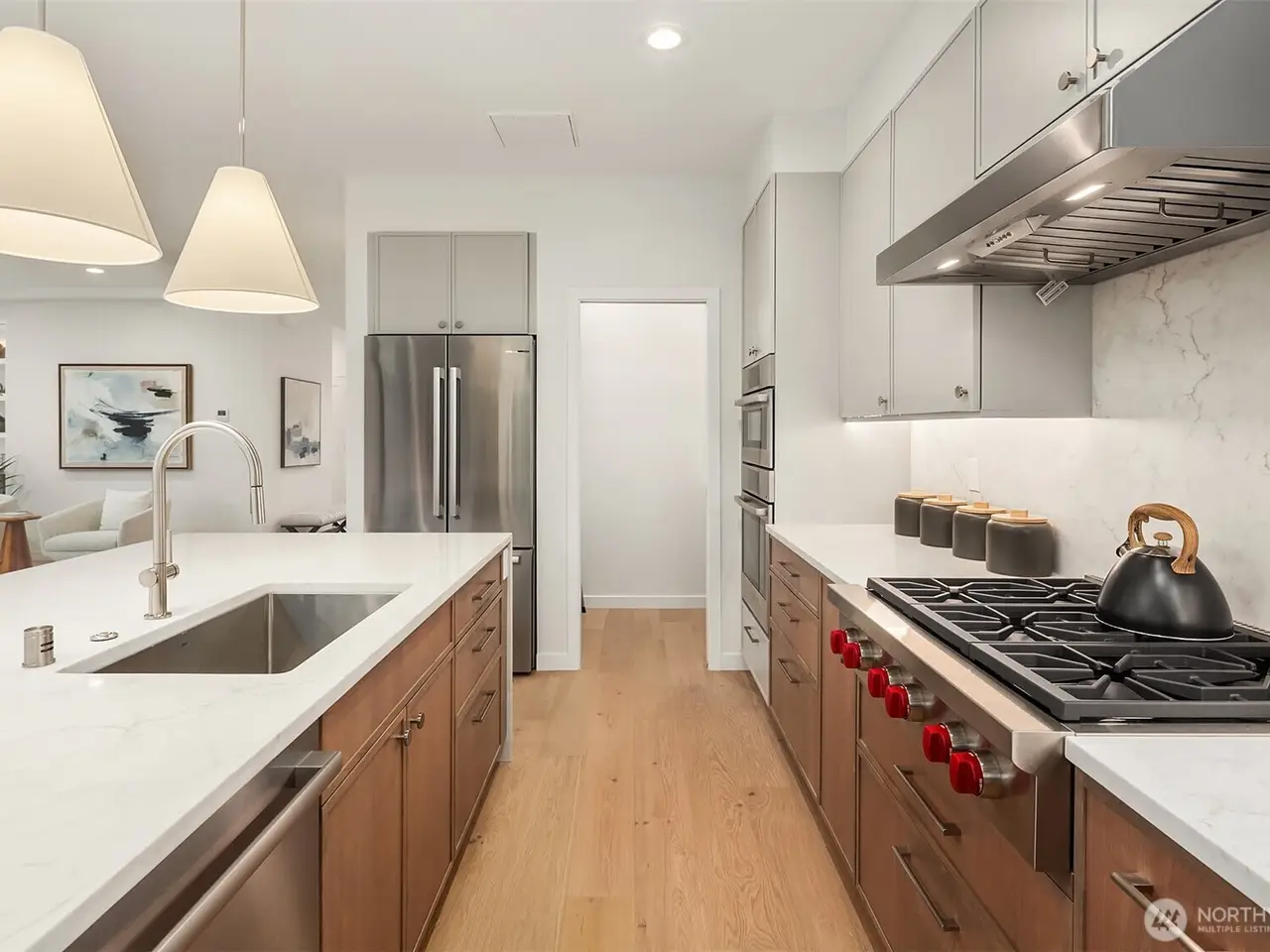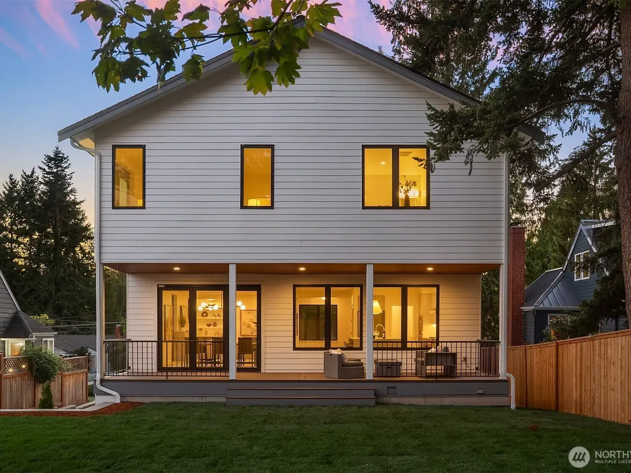 This gorgeous new NW Contemporary home has it all! Enjoy the gourmet kitchen with oversized quartz waterfall island, Bosch/Wolf appliances, and walk-in pantry. Find your focus in its sunlit office and relax in the large living room with fireplace, built-ins, and wide-plank hardwood floors. Entertain in the dining room with panoramic views and nano doors for seamless indoor/outdoor living onto the covered deck and huge backyard. Upstairs has 4 light-filled bedrooms including a primary suite with a five-piece heated-floor bath. The lower level contains a 1 bed/1 bath suite, 2nd full kitchen, living room, and separate entry, plus a rec room, 2-car garage, and mudroom. Perfectly located near Bryant Park, PCC, Seattle Children's, and U-Village.