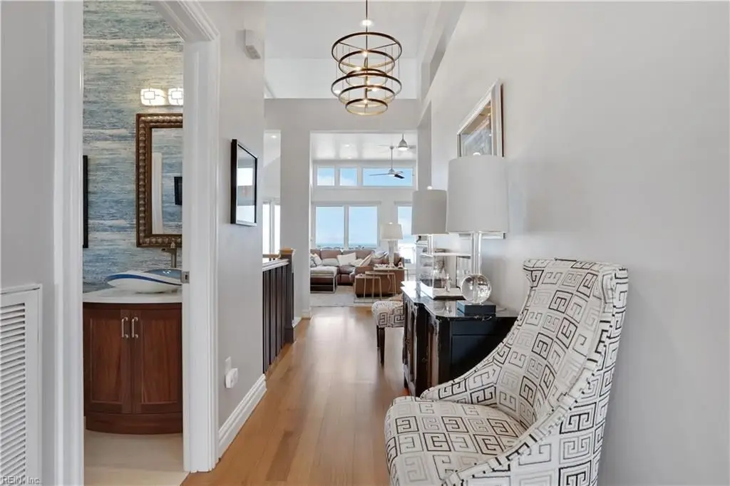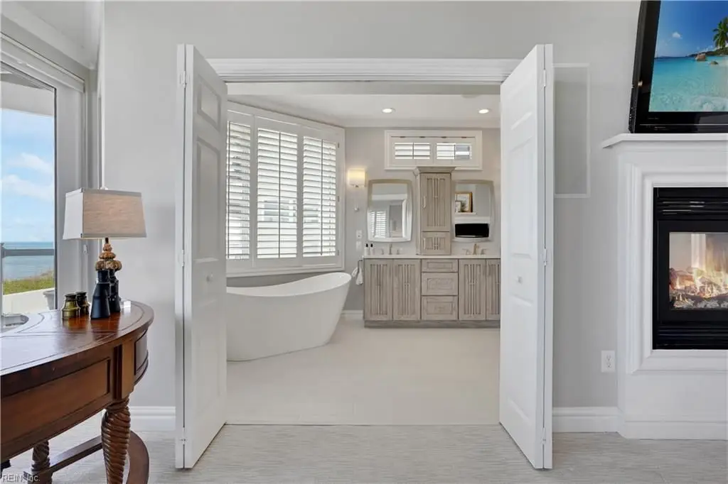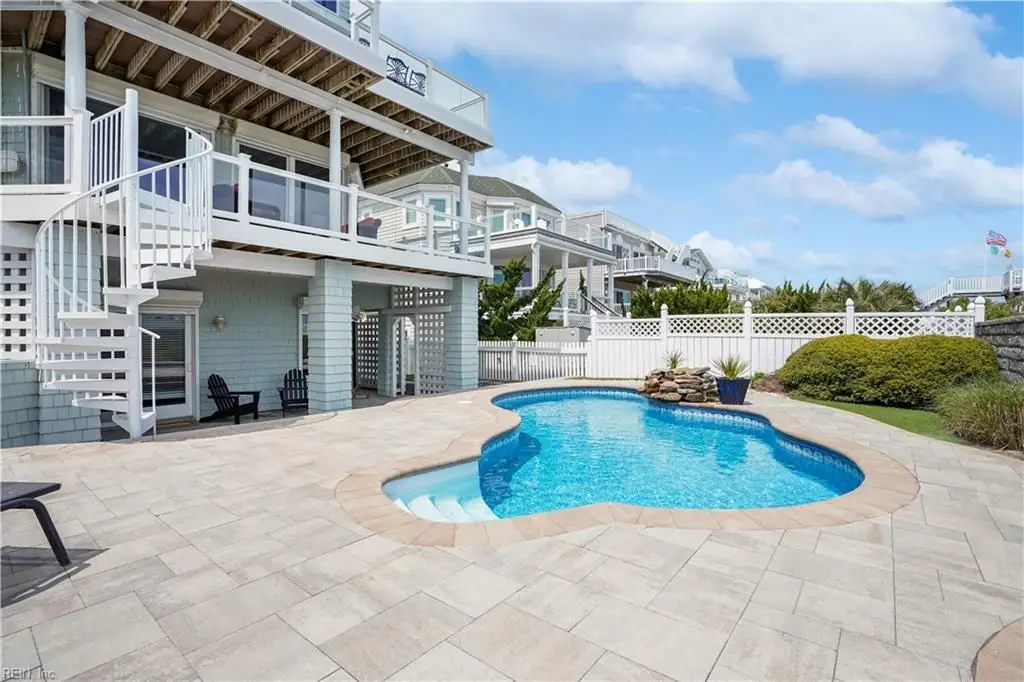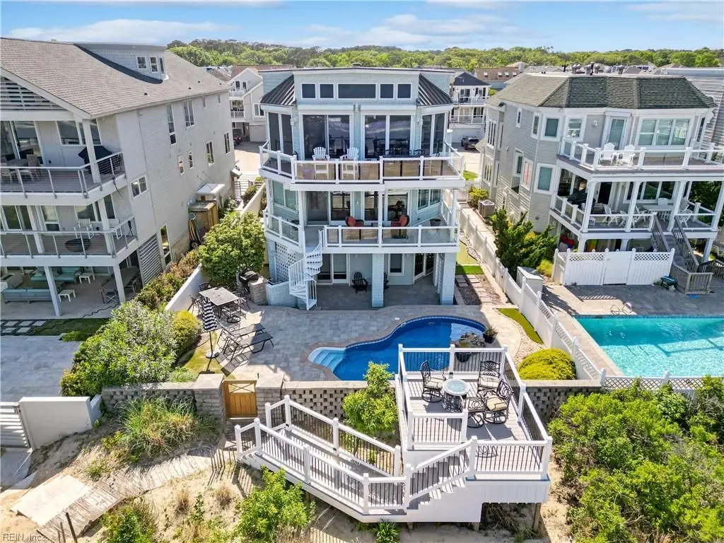 Oceanfront luxury living in Croatan! Experience the breathtaking views of the Atlantic Ocean in this tastefully renovated 5 bedroom, 4.5 bath property. With 5000 sf of thoughtfully designed space that perfectly incorporates the expansive views of the coastline, this spacious and airy home is both relaxing and chic. Open concept w/ family rm, dining rm, breakfast nook and kitchen on 3rd floor and oversized primary suite on 2nd floor, 2 large balconies overlooking the ocean and an elevator. Recent luxury updates include: new kitchen w/ exotic quartz countertops (’23), Viking appliances, 2 Miele dishwashers, 3 renovated bathrooms (’24), refinished stairs and wood floors (’24), all interior and exterior paint, new roof and Copper roof accents (’22), new pool liner and paver surround (’24), new generator (’22), all new Trex decking, deck glass railings and spiral staircase (’22), 2 new HVAC (’23 & ’24), 3 new garage doors (’23), new putting green and new professional landscape.
