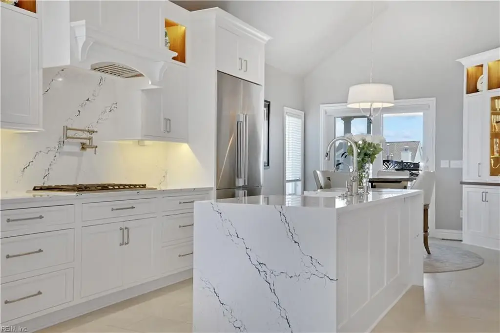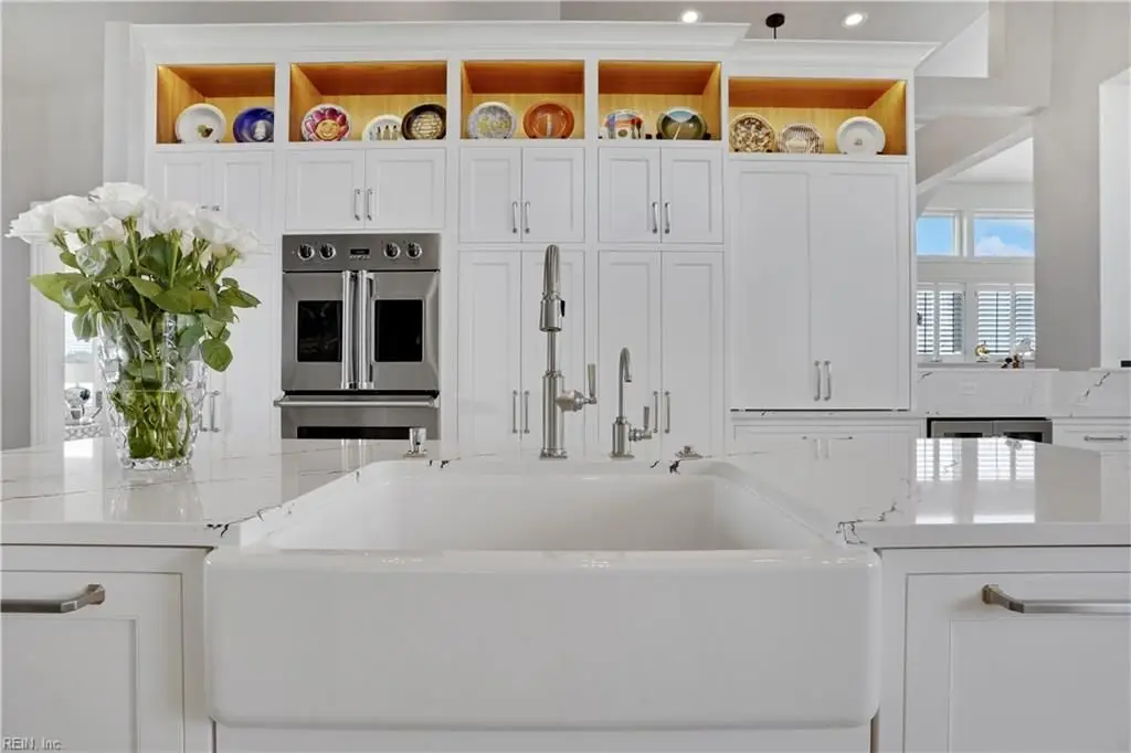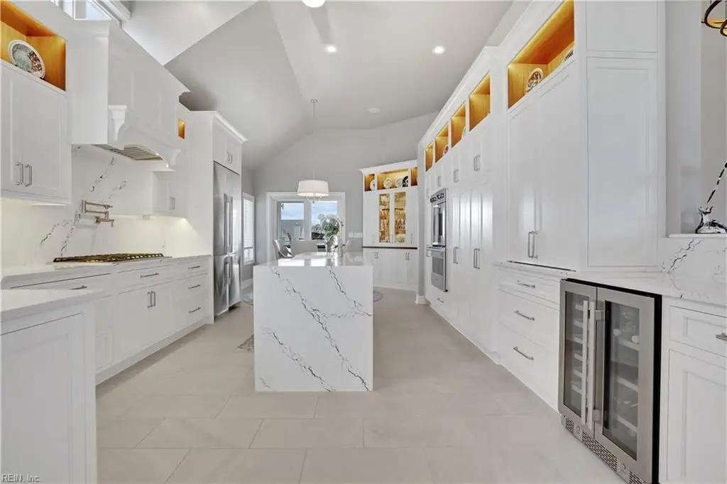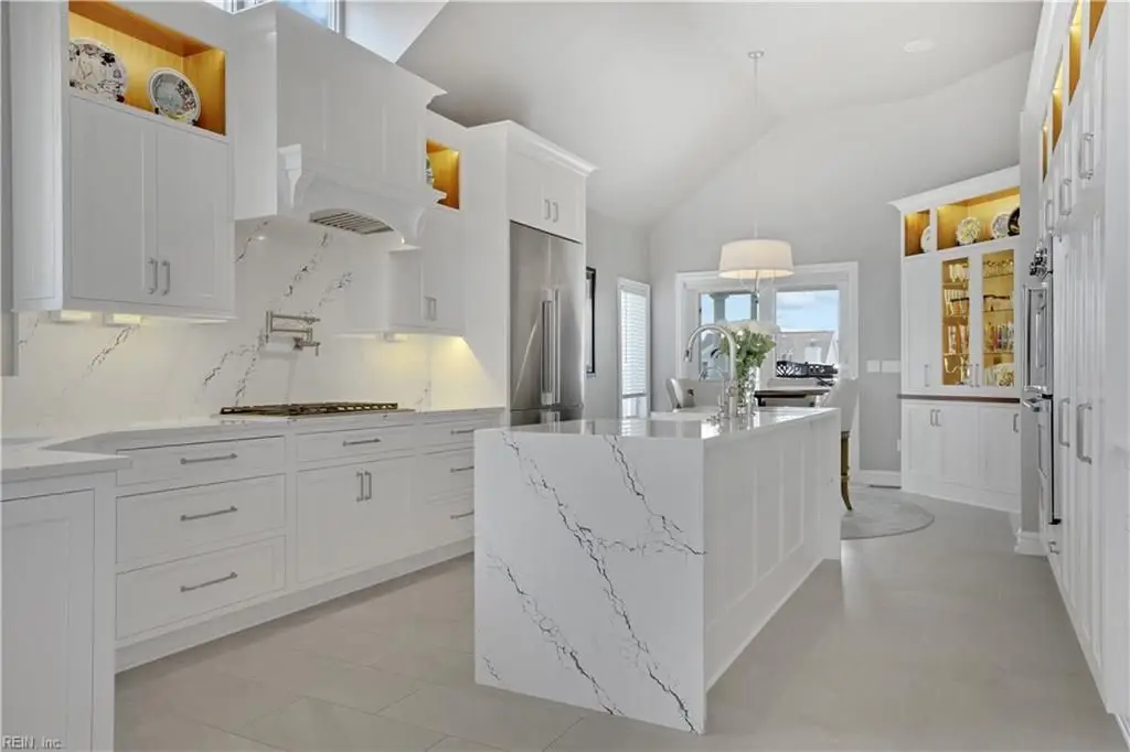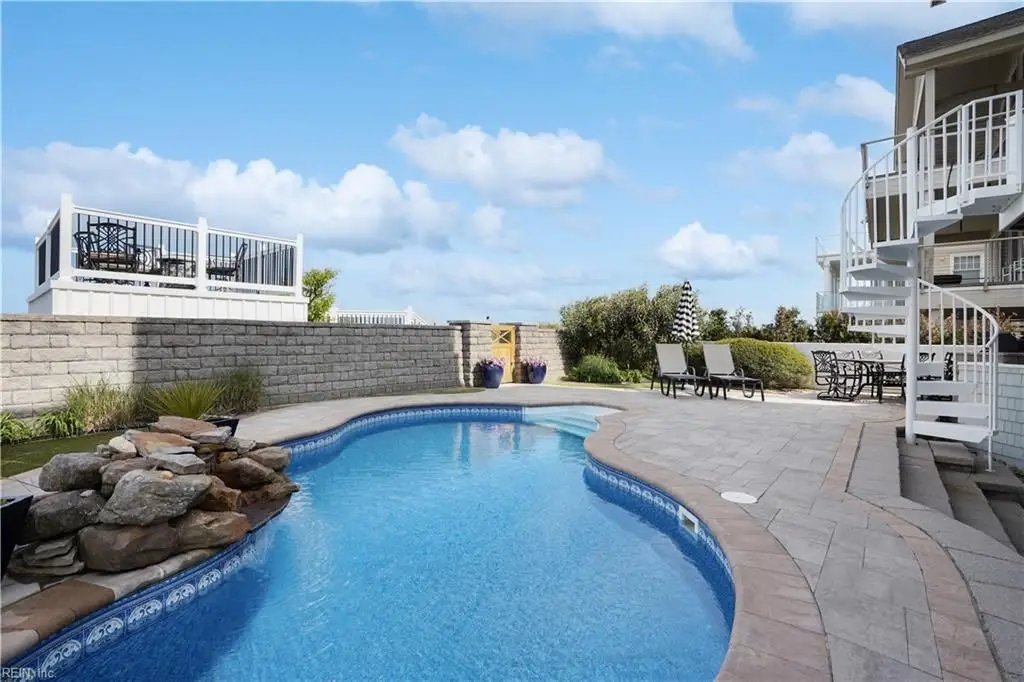 Oceanfront luxury living in Croatan! Experience the breathtaking views of the Atlantic Ocean in this tastefully renovated 5 bedroom, 4.5 bath property. With 5000 sf of thoughtfully designed space that perfectly incorporates the expansive views of the coastline, this spacious and airy home is both relaxing and chic. Open concept w/ family rm, dining rm, breakfast nook and kitchen on 3rd floor and oversized primary suite on 2nd floor, 2 large balconies overlooking the ocean and an elevator. Recent luxury updates include: new kitchen w/ exotic quartz countertops (’23), Viking appliances, 2 Miele dishwashers, 3 renovated bathrooms (’24), refinished stairs and wood floors (’24), all interior and exterior paint, new roof and Copper roof accents (’22), new pool liner and paver surround (’24), new generator (’22), all new Trex decking, deck glass railings and spiral staircase (’22), 2 new HVAC (’23 & ’24), 3 new garage doors (’23), new putting green and new professional landscape.