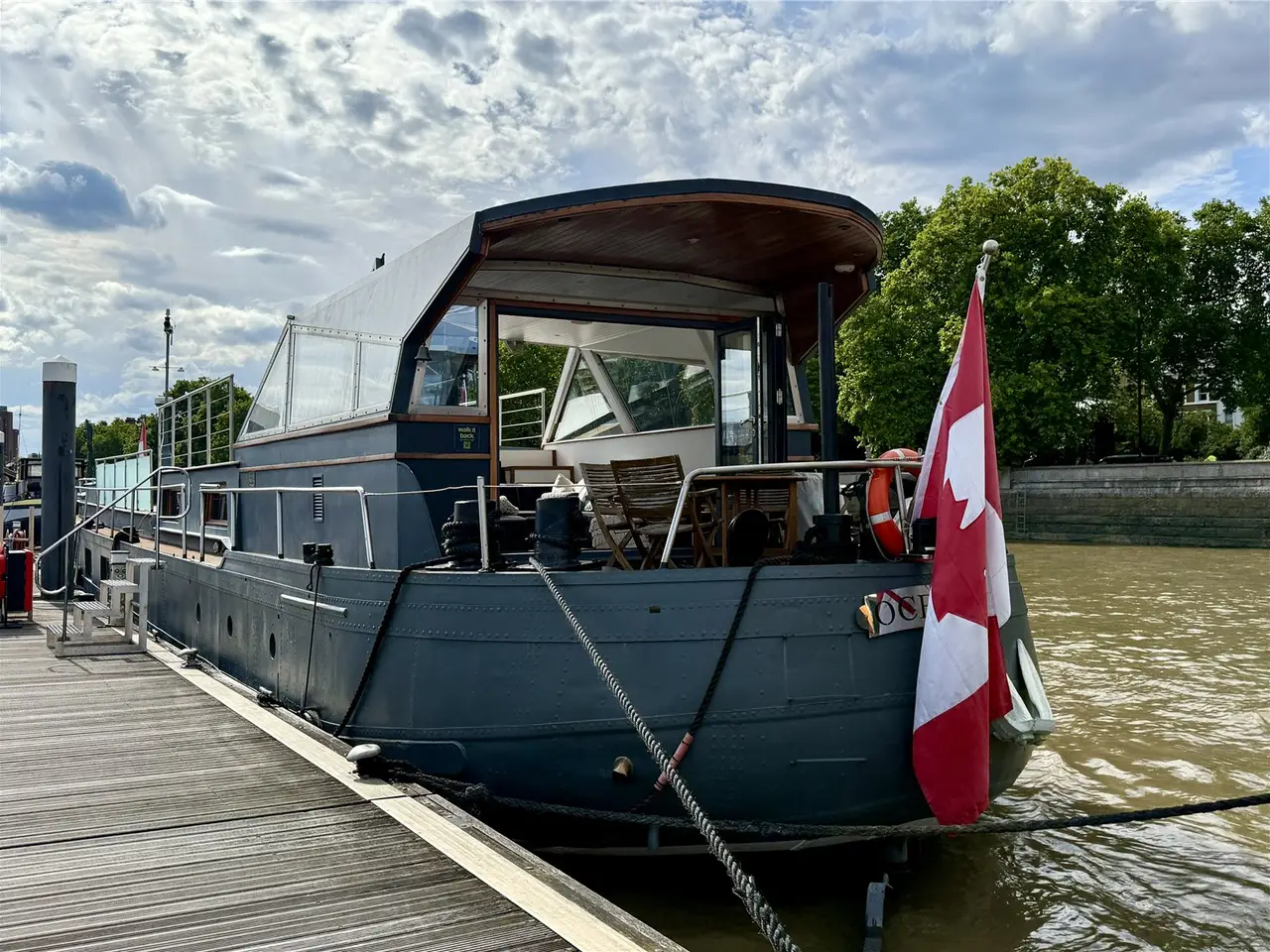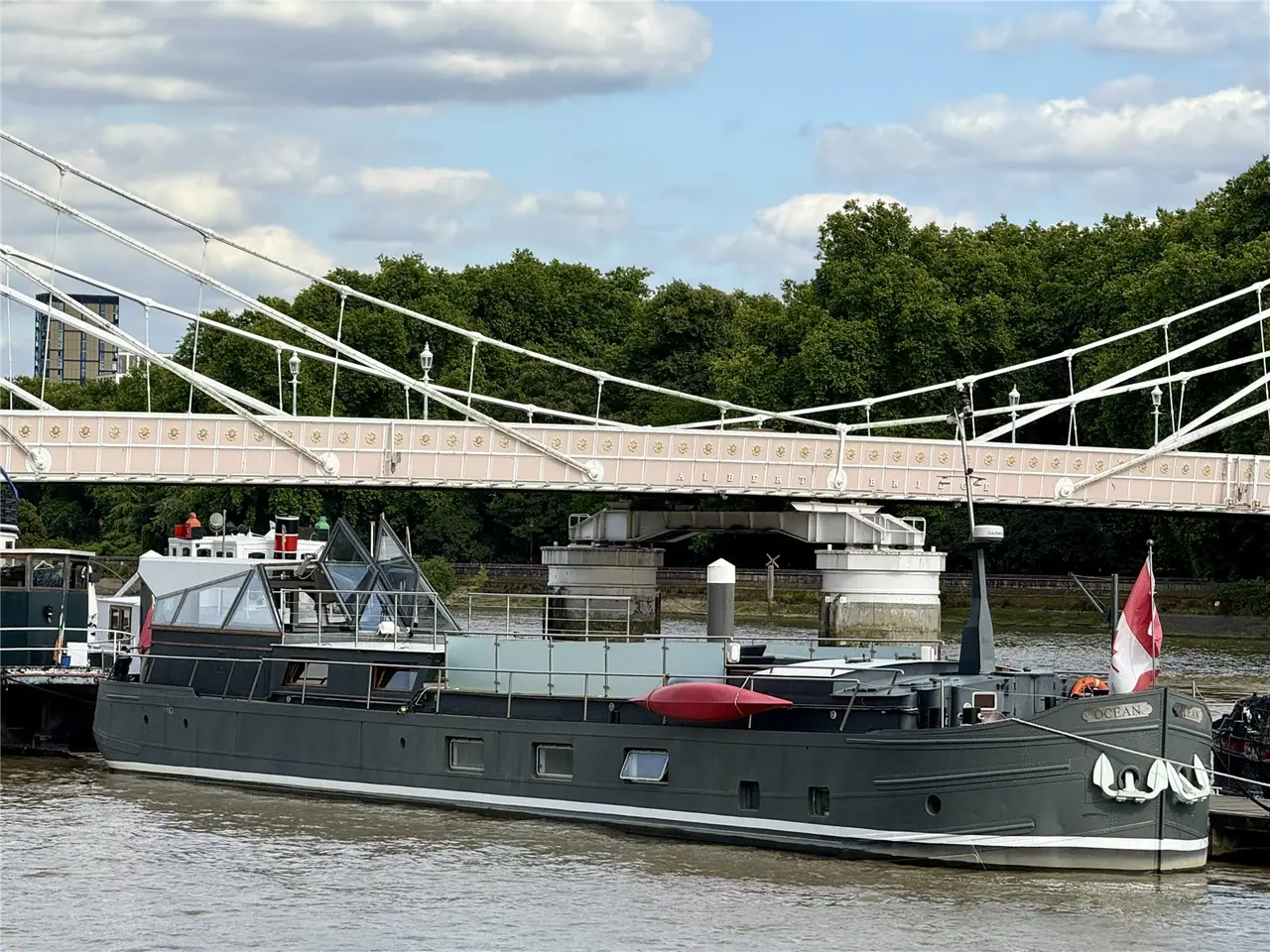 Live the dream on this incredible riverboat moored at the famous Cadogan Pier on the Chelsea Embankment by the stunning Albert Bridge.