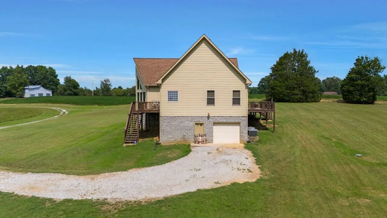 Private setting on 8.33 acres with a ranch/ a frame home, bring horses, cows, chickens. Enjoy the peace and comfort while watching all the wildlife. Great for shooting plus a creek at the end of the property with trees. Home has a little over 3600 sq ft. 2 kitchens 4 bedrooms and 4 baths. Great room and the downstairs bonus room/ bedroom have a fireplace with gas logs. Basement is finished can have separate living quarters. Floors are laminate, tile, carpet, lots of cabinets, open, split bedrooms. Garage in the basement. Large deck Tranquil setting