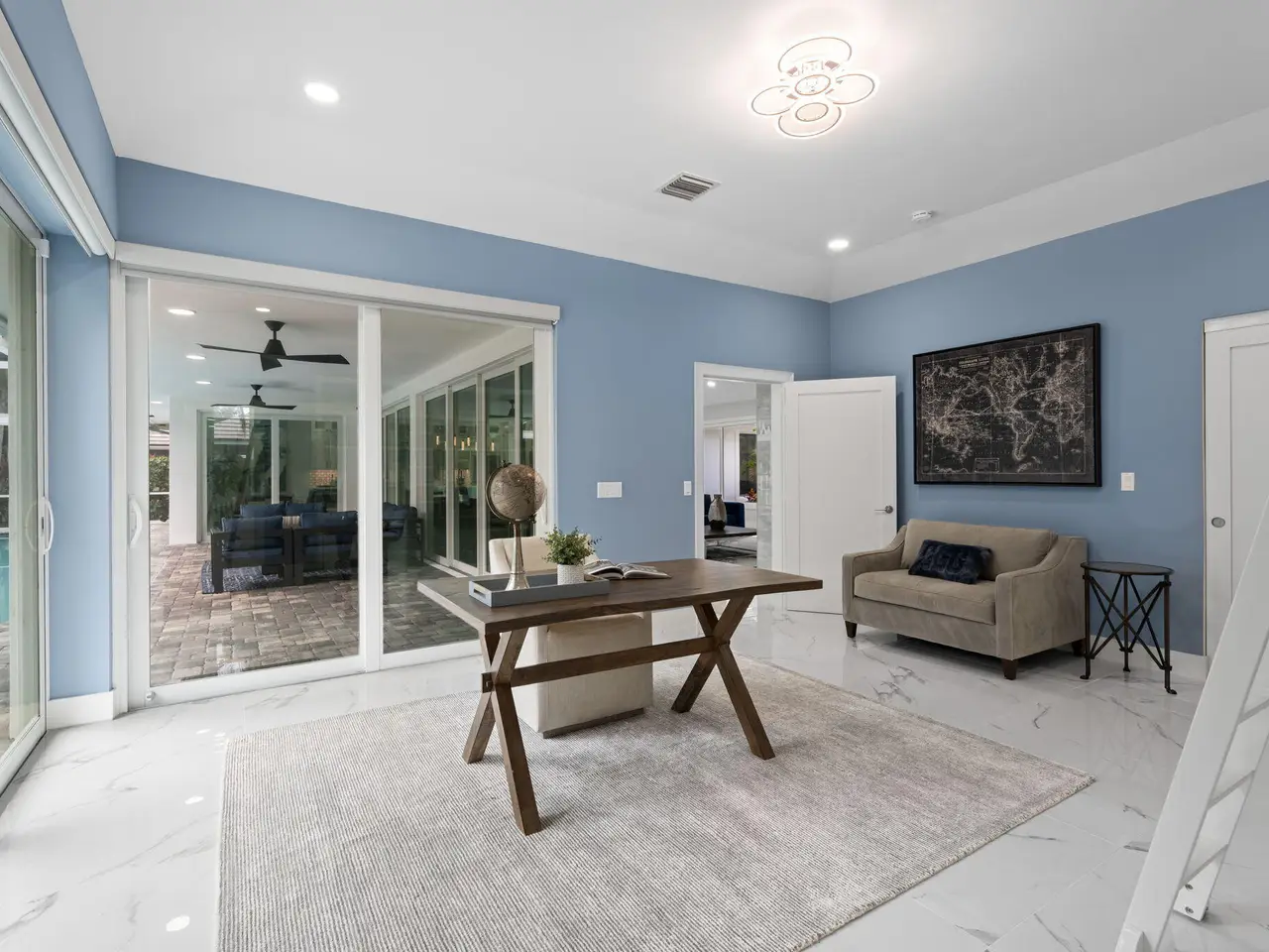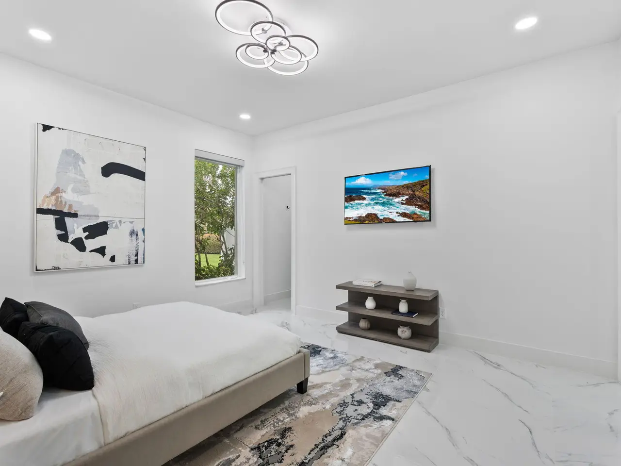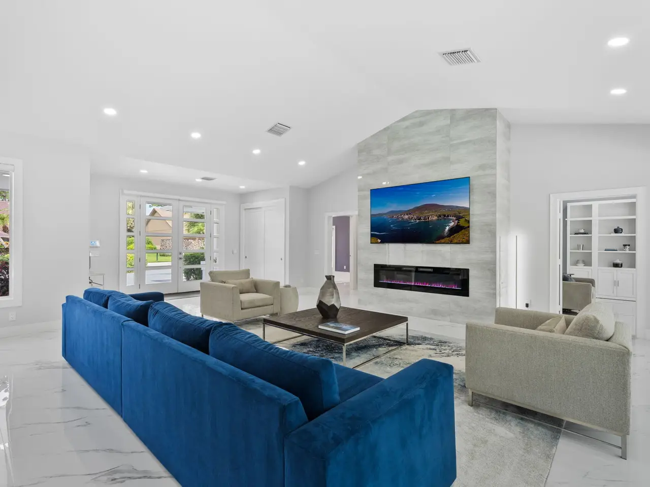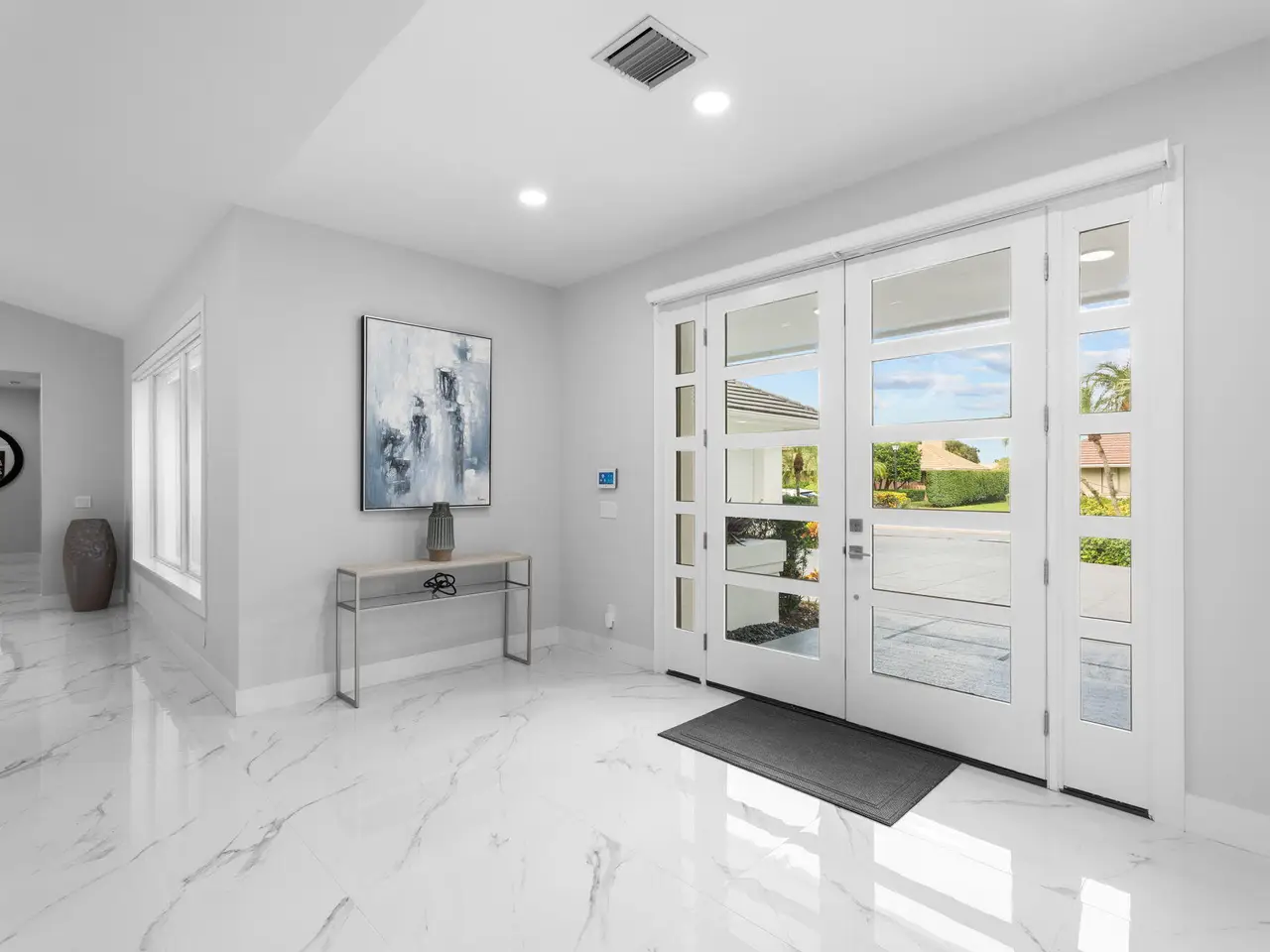 Masterfully modernized estate home in world-renowned PGA National. This stunning one-story CBS home spans over 3,800 sq. ft. of living space with 4 bedrooms & 4.5 baths. This residence features 2 large primary suites and a very private guest suite with its own entry & dry bar--perfect for in-laws or extended stays. Every detail has been upgraded: new roof, impact windows & doors, Lutron smart system, & imported porcelain floors from Spain throughout. The chef's kitchen includes double ovens, vented hood, standalone ice maker, & filtered water tap. All baths are newly redesigned with elegant finishes. Outside, enjoy a resurfaced pool, new heater, screen enclosure, & paver patio ideal for entertaining. This is your opportunity to live steps away from an internationally acclaimed golf resort.